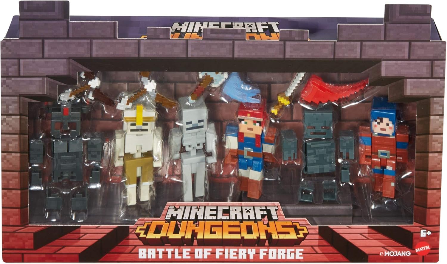 Minecraft Dungeons - Cofanetto Battaglia della Forge in Fuoco, 4 statuette articolate, giocattolo d'azione e avventura per bambini, ispirato al videogioco, GWC03 Ora puoi esplorare il mondo di Minecraft come mai prima d"ora. Le storie immaginate con le figurine preferite dei bambini consentono di instillare in loro valori positivi e lezioni di vita necessarie per il loro sviluppo. Le statuette consentono ai bambini di immaginare storie incredibili, far lavorare la loro immaginazione e sviluppare la loro fiducia in se stessi e indipendenza. Da 6 anni