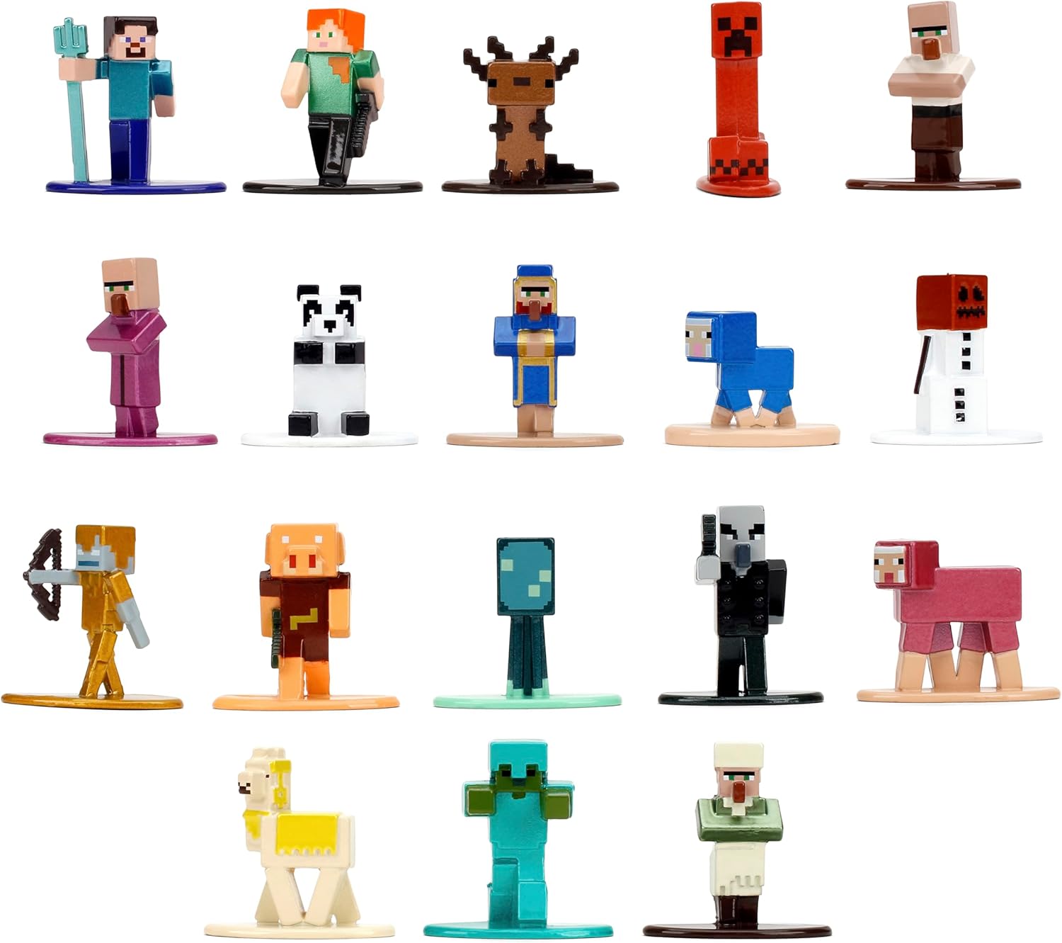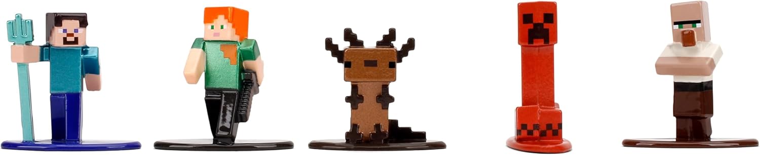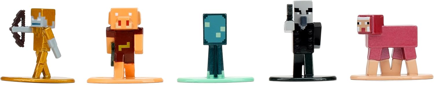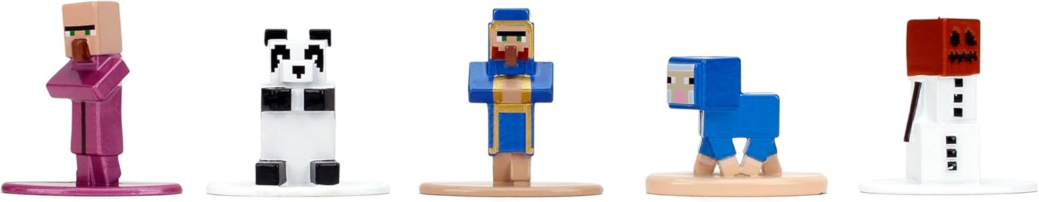 18 personaggi iconici di Minecraft, confezionati per giocare e visualizzare; include Steve, Alex, Piglin, Creeper, Snow Golem, Glow Squid Autentiche sculture ispirate al gioco: dettagli perfetti per i pixel; colleziona Alex, Wild Axolotl, lama gialla e altro ancora Realizzato in resistente metallo pressofuso – costruito per durare; costruzione di alta qualità per gioco attivo e fascino scaffale Emozionante mix di mob e avventurieri - dai panda agli zombi; ottimo per narrazione o per creare battaglie diorama Jada Giocattoli - Licenza ufficiale Minecraft oggetti da collezione; fidati da collezionisti e giocatori di tutte le età