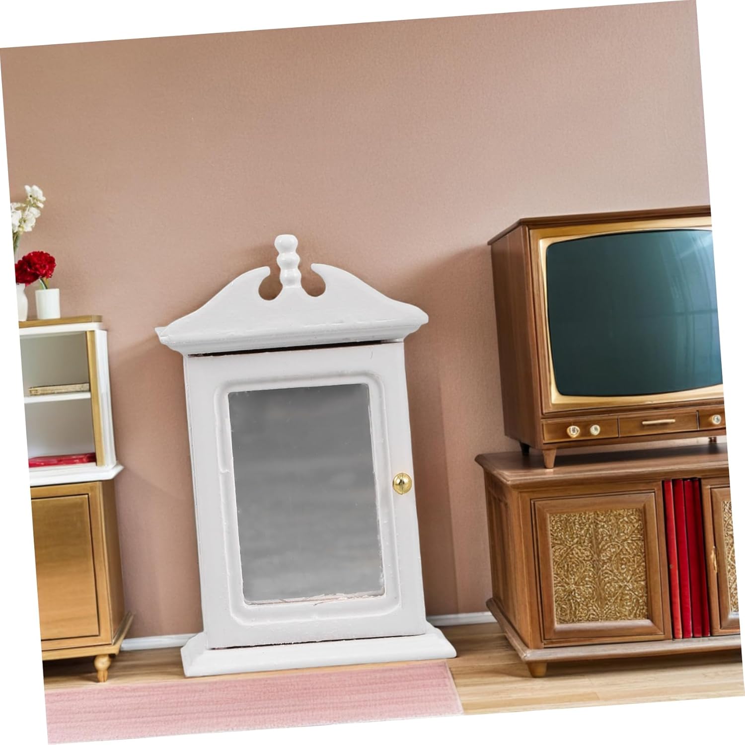Specchio incorporato: consente ai personaggi della casa delle bambole di vestirsi e riordinare, incoraggiando i a sviluppare abitudini, tavolino laterale della casa delle bambole, mini mobiletto decorativo Ideale per varie scene: per diverse ambientazioni della casa delle bambole come camere da letto, soggiorni e cucine, aumentando il fascino della casa delle bambole, mini mobili, specchio della casa delle bambole Squisito in miniatura: riproduce scene di mobili , rendendo la tua casa delle bambole più realistica e coinvolgente, accessori per case in miniatura, vetrina per case delle bambole Design in miniatura dettagliato: cattura l'essenza dei mobili , migliorando il realismo della tua casa delle bambole, mensola espositiva decorativa per mini case delle bambole, mensola espositiva in miniatura Applicazione versatile: adatta a varie scene di case delle bambole come camere da letto, soggiorni e cucine, migliorando il divertimento e la giocabilità della casa delle bambole, vetrina in miniatura, mini mobili per casa delle bambole
