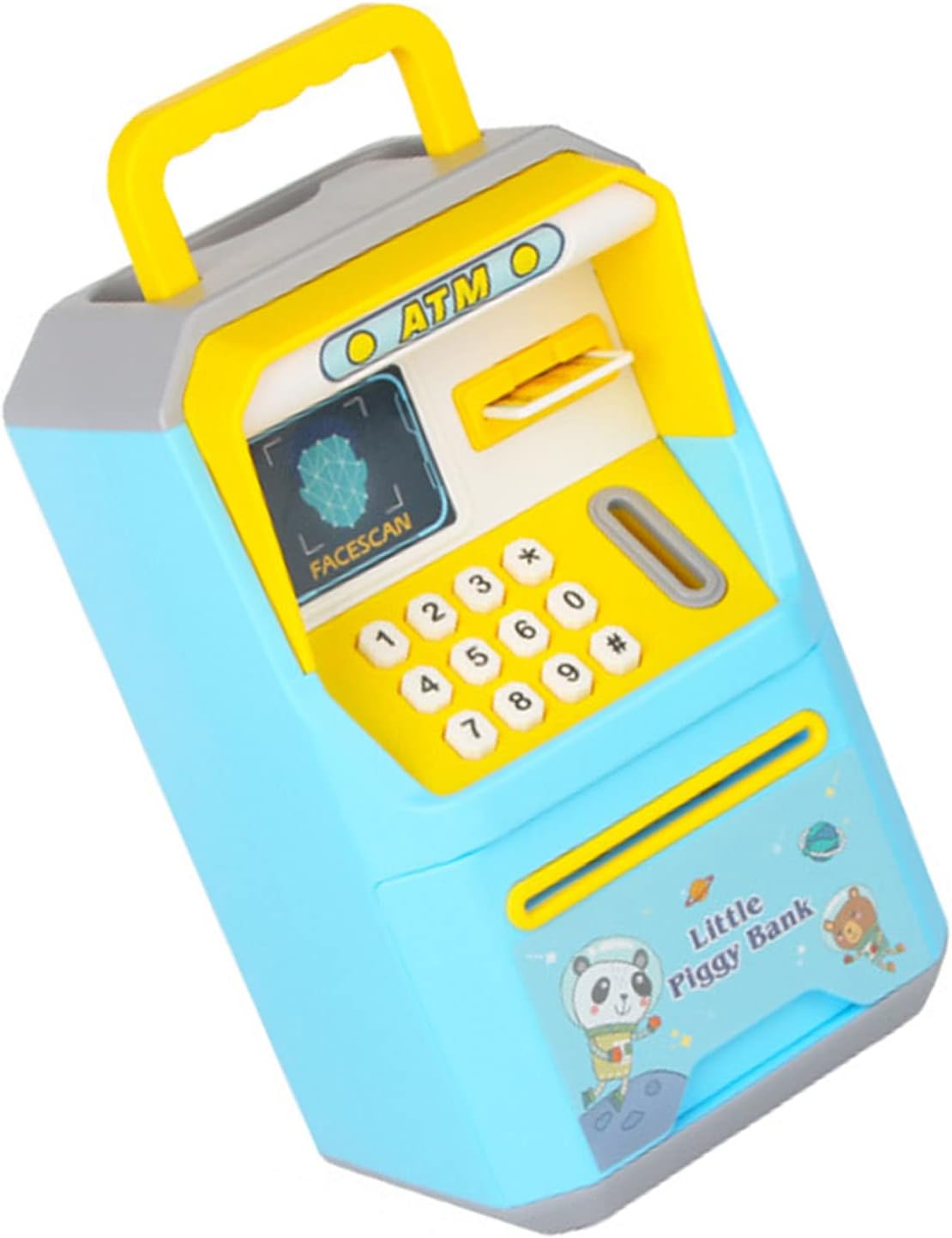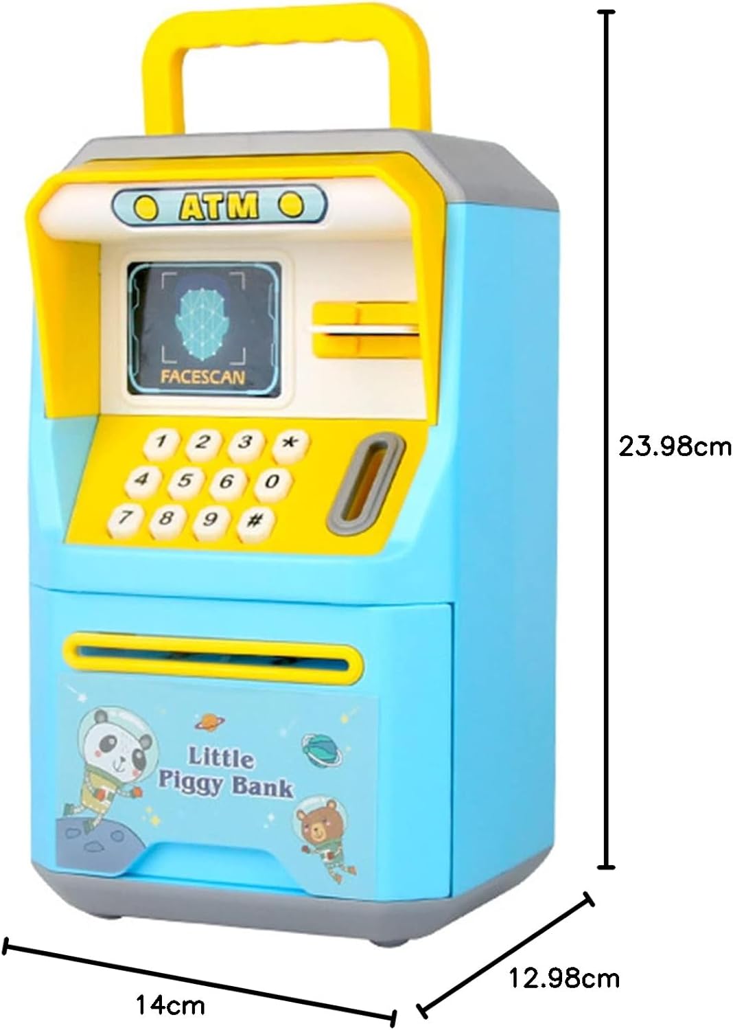 Password sostituibile: la password predefinita 0000, il follow-up può essere sostituito da , fin dall'infanzia per coltivare la consapevolezza della sicurezza dei bambini. Rullo automatico delle monete: quando le banconote vengono inserite nel deposito, verranno automaticamente inserite nel deposito, accompagnate dai corrispondenti effetti sonori. Voce intelligente: apertura completamente automatica della porta, memorizzazione rapida ogni passaggio ha interazioni vocali, più facile da usare, aumenta l'interesse dei bambini. Simulazione Riconoscimento facciale: simula l'impostazione del viso, veloce e interessante, mentre coltivi la consapevolezza della sicurezza dei bambini. Modalità cinese commutabile Modalità inglese. Spazio extra: due opzioni per conservare monete e banconote, ampio spazio all'interno dello spazio, possono contenere centinaia di banconote o centinaia di monete.