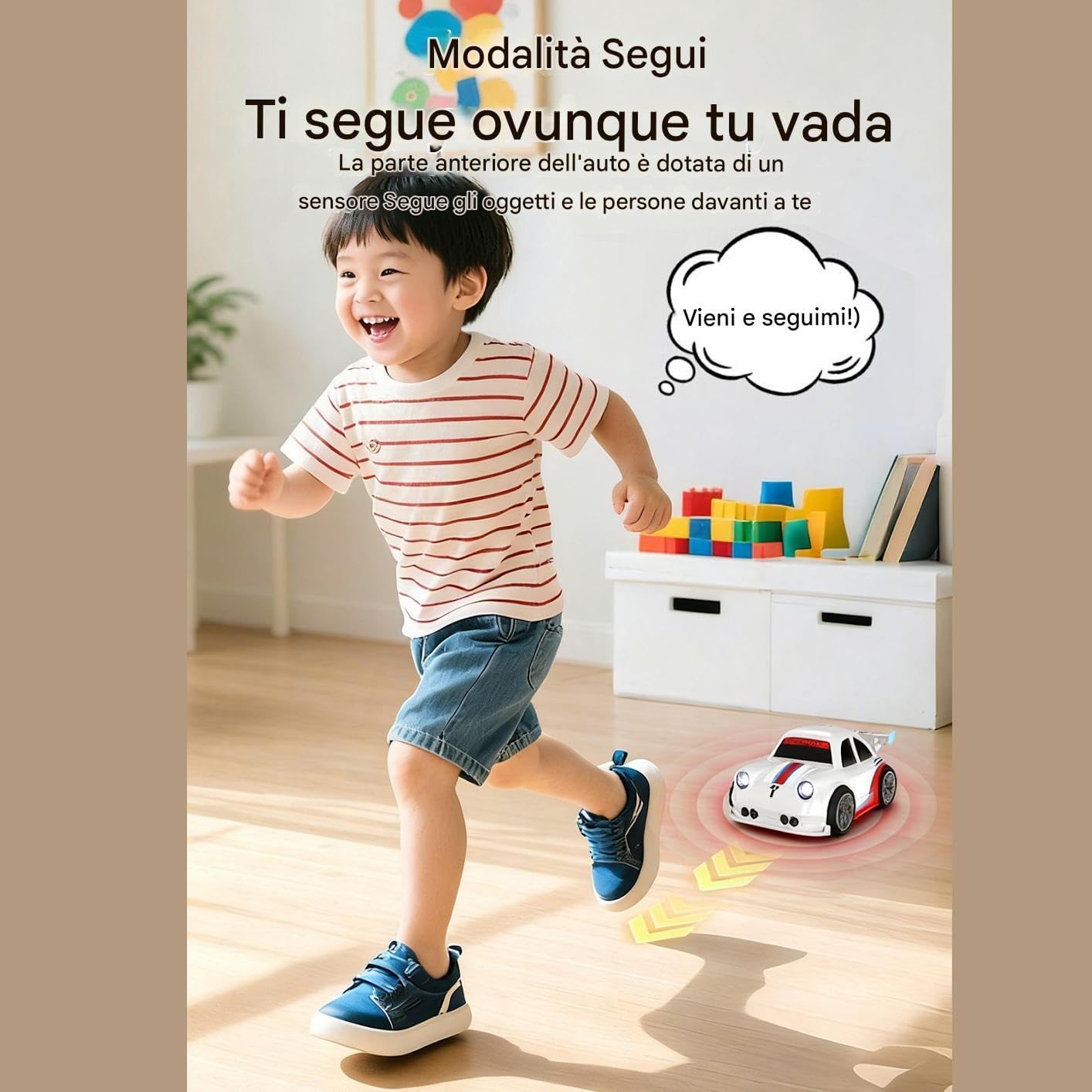 Azioni di drifting dinamico: Realizza drift e rotazioni a 360 con manovre entusiasmanti che aumentano l'aspetto visivo del gioco, perfetta per gare competitive o divertimento casuale in raduni familiari, cortili e sfide tra amici, garantendo emozioni intense durante ogni utilizzo Funzionalità Remota Affidabile: Progettato per la precisione, il telecomando 'auto drift offre stabilità del segnale affidabile e robusta resistenza alle interferenze, dando la libertà di esplorare tecniche di drift creative in diversi ambienti senza interruzioni o distrazioni Regalo Eccellente: La mini auto radiocomandata è una scelta eccellente per bambini e ragazzi, favorisce legami tra amici durante le festività con scenari di gioco vivaci che stimolano immaginazione e cooperazione, aggiungendo gioia a riunioni e occasioni speciali con divertimento condiviso Risposta Dinamica agli Ostacoli: Queste auto RC utilizzano la Modalità Intelligente per percepire oggetti o persone anteriori e reagire evitandoli prontamente, offrendo prestazioni affidabili su diverse superfici come vialetti o salotti e massimizzando divertimento e facilità d'uso Audio Motore Realistico: Dotata di effetti sonori dinamici e illuminazione LED istantanea, l'auto RC Drift emette suoni vividi del motore, creando un'esperienza coinvolgente per avventure all'aperto e intrattenimento indoor con effetti accattivanti