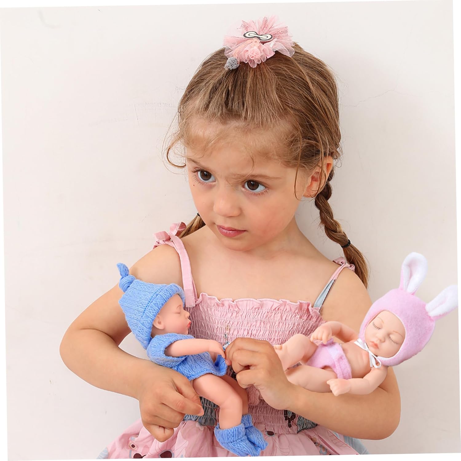 : Questa bambola è perfetta per ogni bambino che ama i bambini piccoli..Diventerà un ricordo prezioso per loro per tutta la vita..Prendendosi cura della mini bambola, potranno provare calore e gioia, facendoli sentire davvero felici! Caratteristiche adorabili: questa mini bambola è perfetta per mostrare l'adorabile fascino delle ragazze!.Viene vestito con bellissimi abiti, quindi non devi preoccuparti di modellarlo da solo..Portalo a casa e sia la bambola che i suoi vestiti ti adoreranno! Dimensioni compatte: con una misura di soli 7 pollici dalla testa ai piedi, questa mini bambola è progettata per essere compatta e portatile..La sua piccola statura permette ai bambini di portarlo facilmente in, facilitando ore di gioco fantasioso ovunque vadano. Morbida e confortevole: realizzata con materiali siliconici di qualità, questa mini bambola dà priorità alla sicurezza e al comfort..Non è tossico e garantisce tranquillità a genitori e operatori sanitari..Inoltre, la superficie della bambola è incredibilmente morbida al tatto, imitando la pelle delicata di un vero bambino. Affascinante design per dormire: questa deliziosa mini bambola presenta un accattivante design per dormire che catturerà sicuramente i cuori e porterà sorrisi sui volti..Assomiglia a un vero bambino sdraiato pacificamente, il che aumenta il suo fascino irresistibilmente adorabile.