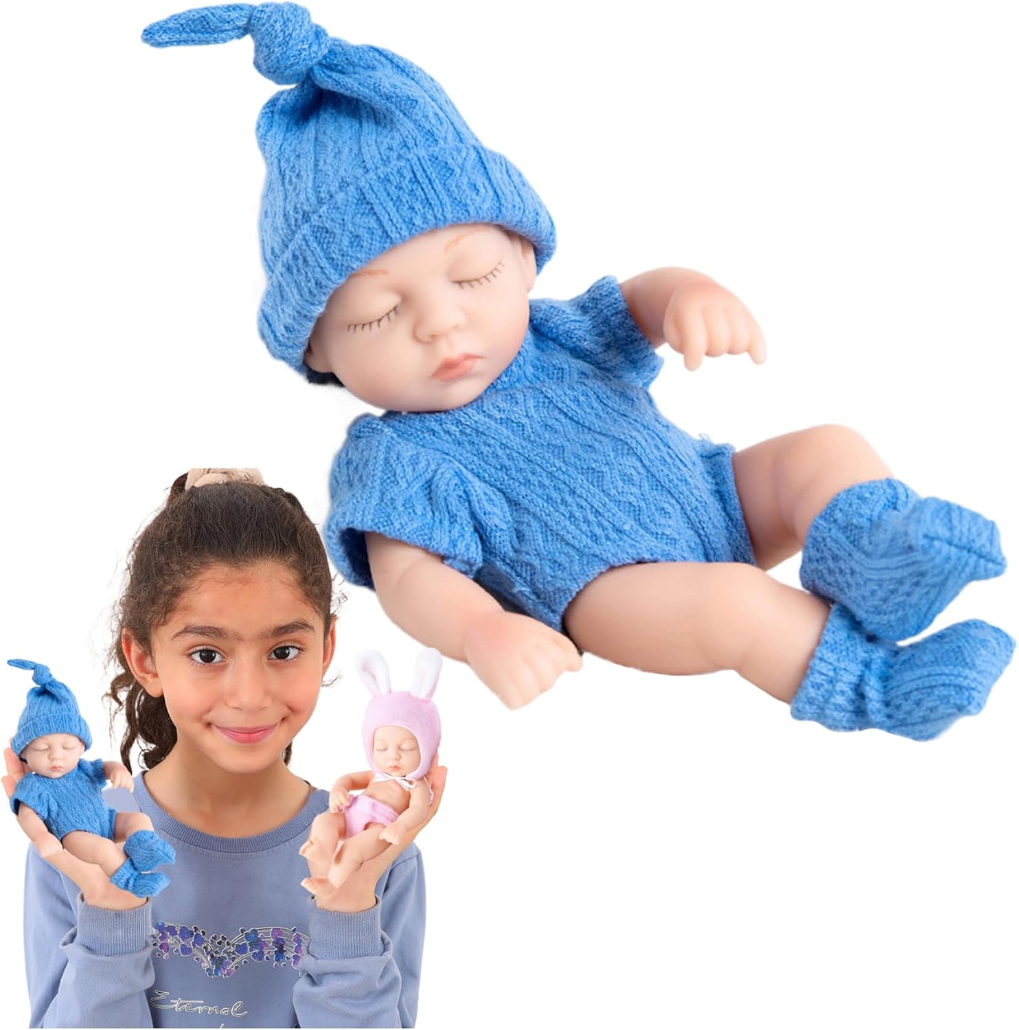 Affascinante design per dormire: questa deliziosa mini bambola presenta un accattivante design per dormire che catturerà sicuramente i cuori e porterà sorrisi sui volti..Assomiglia a un vero bambino sdraiato pacificamente, il che aumenta il suo fascino irresistibilmente adorabile. Morbida e confortevole: realizzata con materiali siliconici di qualità, questa mini bambola dà priorità alla sicurezza e al comfort..Non è tossico e garantisce tranquillità a genitori e operatori sanitari..Inoltre, la superficie della bambola è incredibilmente morbida al tatto, imitando la pelle delicata di un vero bambino. Dimensioni compatte: con una misura di soli 7 pollici dalla testa ai piedi, questa mini bambola è progettata per essere compatta e portatile..La sua piccola statura permette ai bambini di portarlo facilmente in, facilitando ore di gioco fantasioso ovunque vadano. : Questa bambola è perfetta per ogni bambino che ama i bambini piccoli..Diventerà un ricordo prezioso per loro per tutta la vita..Prendendosi cura della mini bambola, potranno provare calore e gioia, facendoli sentire davvero felici! Caratteristiche adorabili: questa mini bambola è perfetta per mostrare l'adorabile fascino delle ragazze!.Viene vestito con bellissimi abiti, quindi non devi preoccuparti di modellarlo da solo..Portalo a casa e sia la bambola che i suoi vestiti ti adoreranno!
