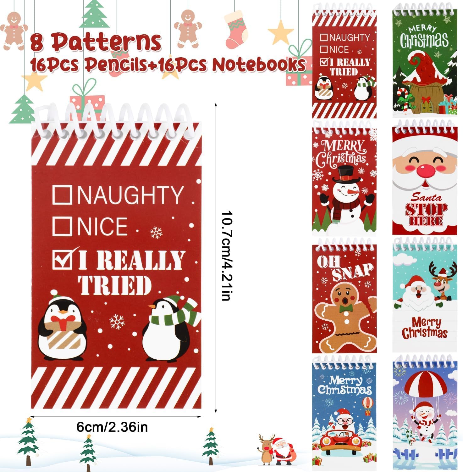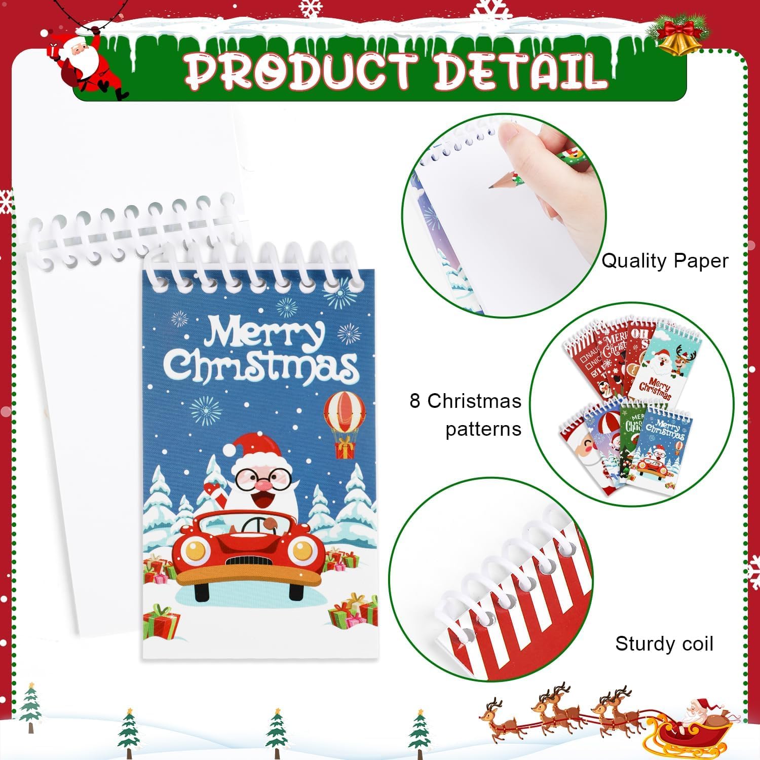 Confezione completa: set di 32 mini quaderni a spirale natalizi, perfetti come regali per le feste e come riempitivi per sacchetti regalo