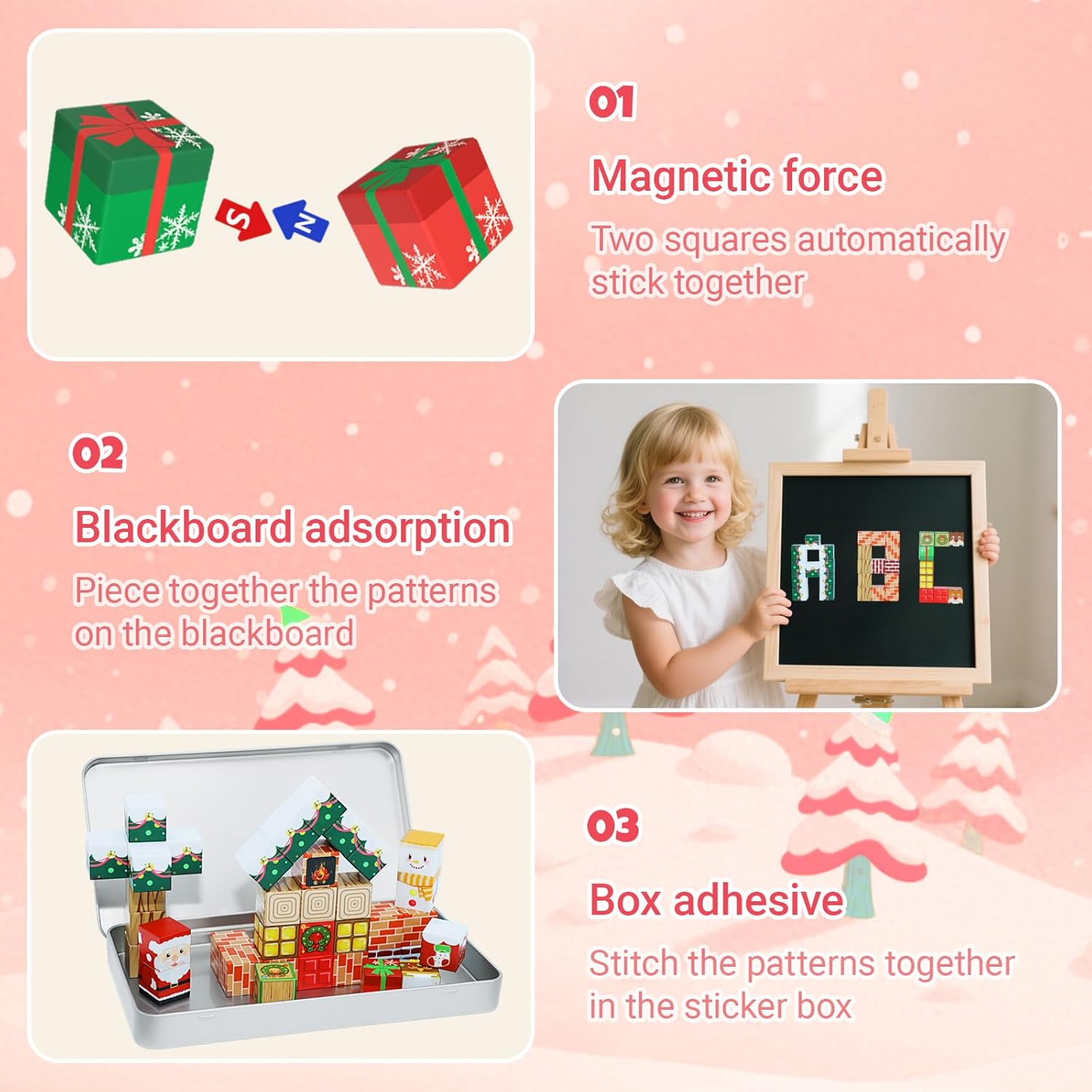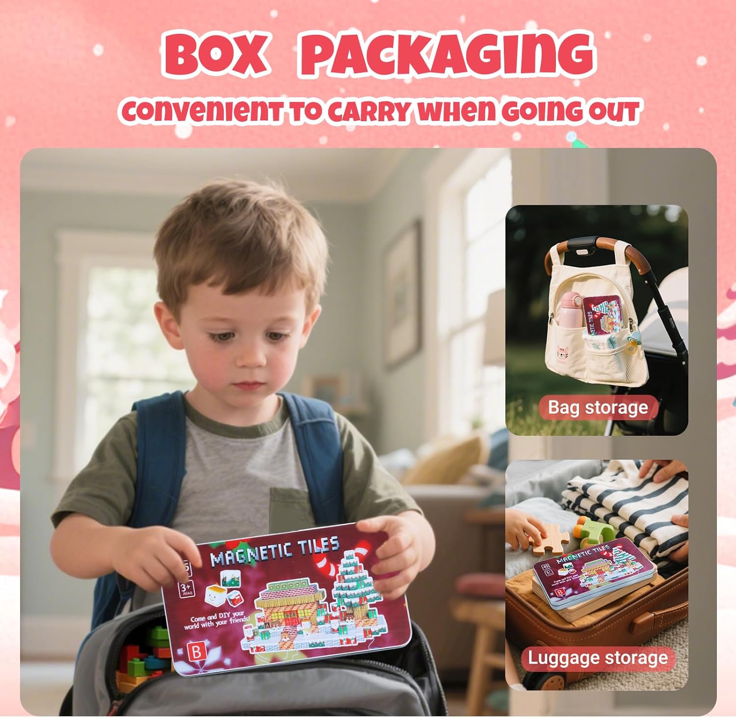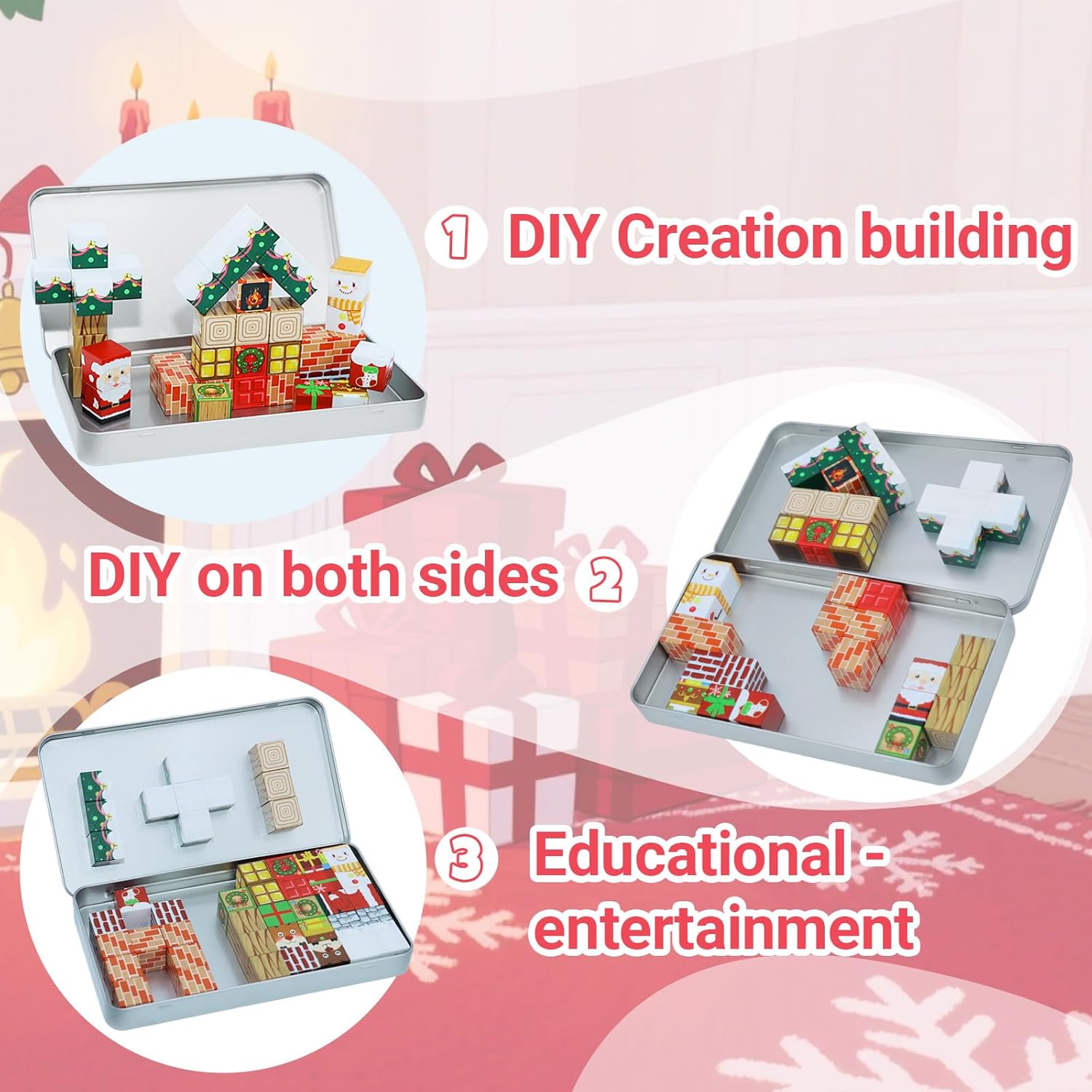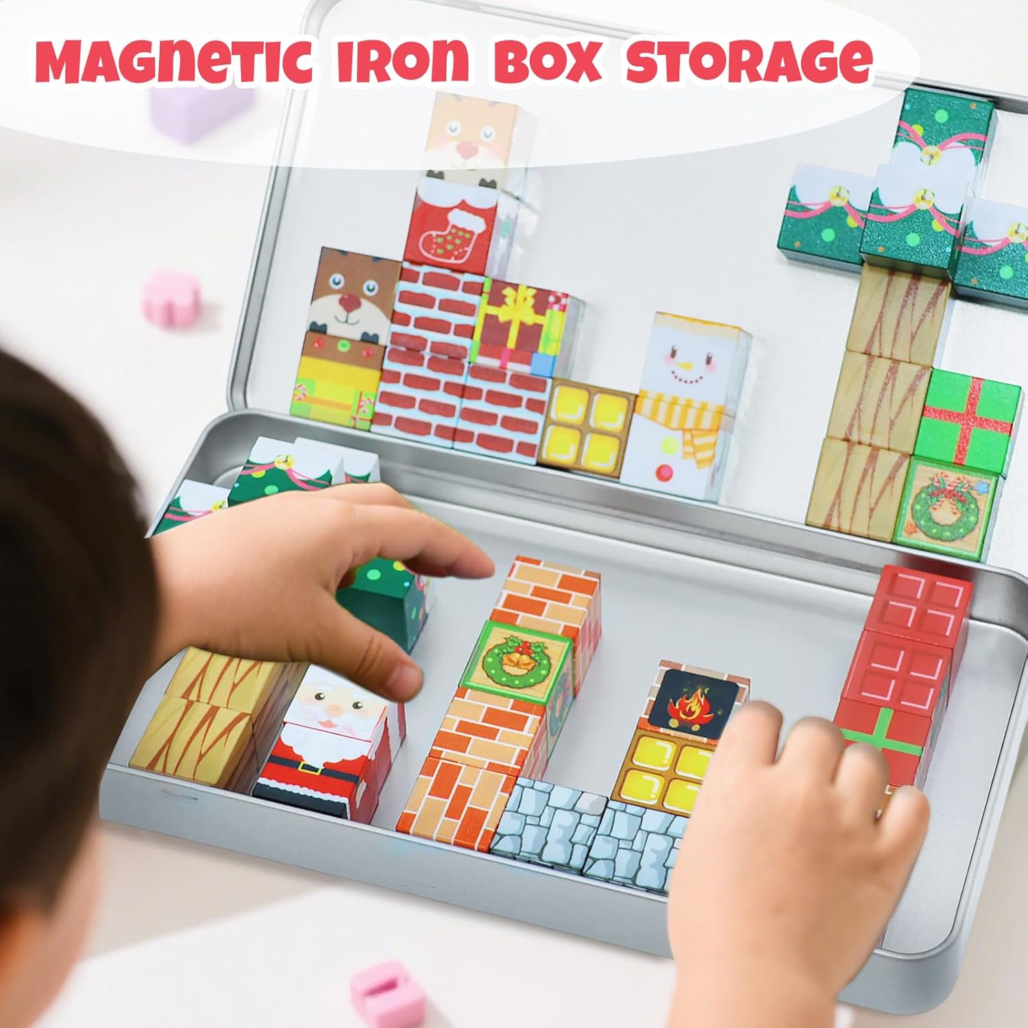 Compagno di gioco in viaggio: questo mini set di cubi magnetici è un ottimo compagno di viaggio per gite in famiglia, sia in volo, in auto o per cenare fuori. La custodia in latta funge sia da comoda soluzione di archiviazione che da base portatile, rendendo facile per i bambini costruire in movimento. 【Costruisci ovunque con la flessibilità magnetica】Questi blocchi magnetici consentono ai bambini di trasformare le superfici in ferro in aree di gioco: attaccarli a frigoriferi, desktop o porte del garage per un divertimento creativo impilabile. È un modo divertente per tenere i bambini impegnati durante le attese, senza bisogno di schermi o giocattoli extra. Imparazione STEM per piccoli costruttori: progettati come giocattoli STEM in età prescolare, questi cubi aiutano i bambini a esplorare la costruzione attraverso il gioco. Il delicato suono frusciante cattura la loro attenzione, rendendo il gioco senza schermo più attraente introducendo abilità spaziali e riconoscimento del colore. Sicurezza e durata in mente: ci concentriamo sulla sicurezza con ogni cubo, realizzato con materiali robusti che resistono al gioco regolare. Questi pezzi magnetici sono progettati per un uso duraturo, dando ai genitori tranquillità durante il gioco. Idea regalo per bambini dai 3 anni in su: questo set magnetico è un regalo premuroso per compleanni, vacanze o attività scolastiche. Il suo design portatile e il suo valore educativo lo rendono una scelta popolare per i bambini che amano costruire ed esplorare in ambienti diversi.