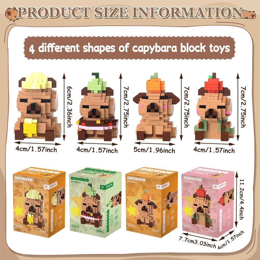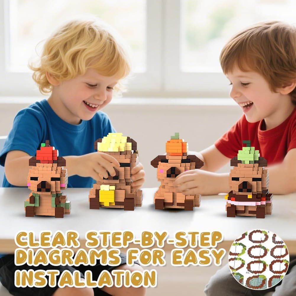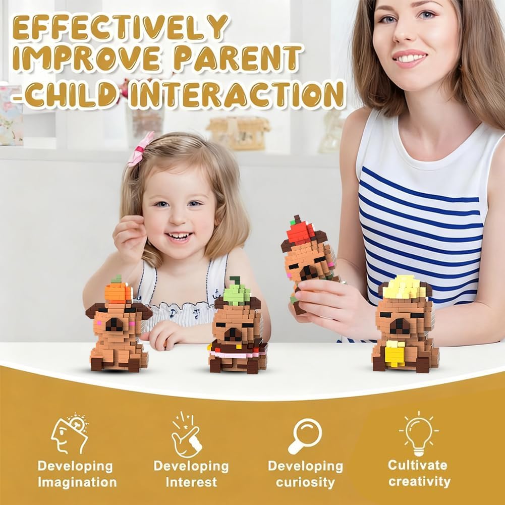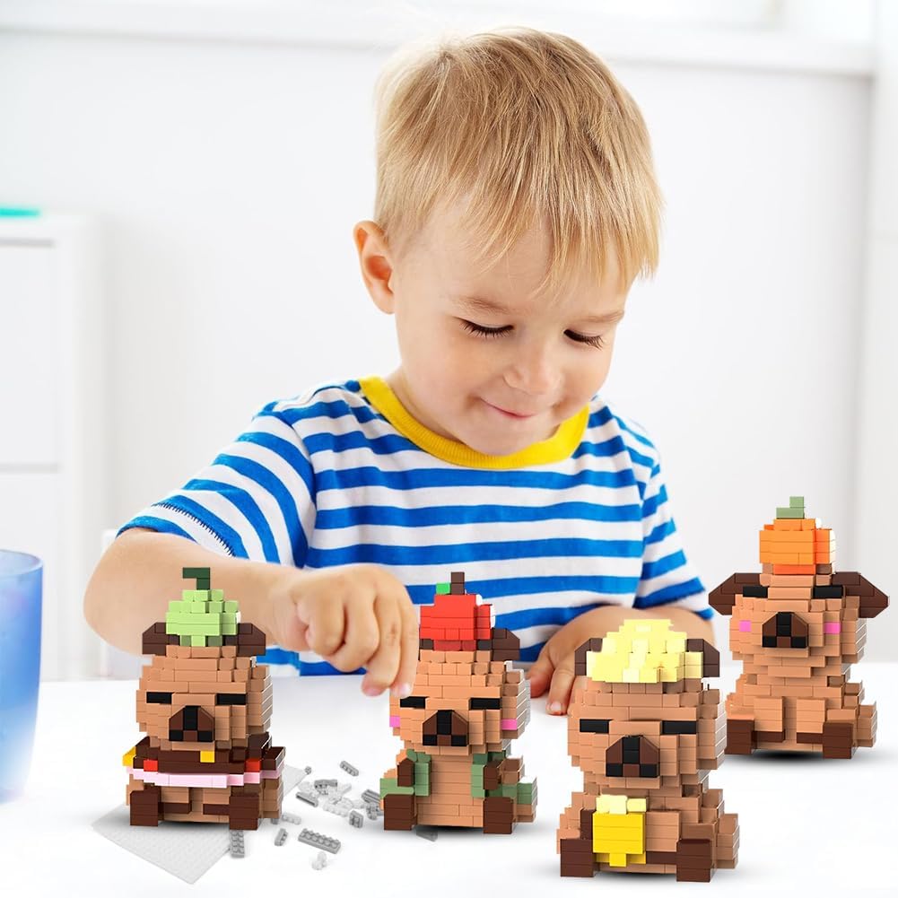 【Contenuto del set】questo set di giocattoli da costruzione Capybara contiene quattro personaggi unici, istruzioni dettagliate e pezzi di ricambio. È adatto per la costruzione congiunta per individui o famiglie e offre ai bambini dai 14 anni di età e agli adulti un sacco di divertimento durante il montaggio. È ideale per promuovere la capacità di concentrazione. 【Materiali di alta qualità】i giocattoli da costruzione Capybara hanno una superficie liscia senza sbavature, si incastrano facilmente, hanno colori brillanti e durevoli ed è stabile, quindi non si sfalda anche dopo lunghi periodi di costruzione. 【Facile da montare】il set di mini mattoncini da costruzione unisce facilità d'uso e divertimento durante l'assemblaggio. Il kit Capybara contiene istruzioni illustrate. Il montaggio allena la coordinazione occhio-mano e l'immaginazione spaziale. I bambini possono assemblare autonomamente le forme di base. 【Forme carine】il set di quattro mini mattoncini Capybara ha le proprie caratteristiche distintive e riproducono le simpatiche espressioni facciali e le caratteristiche. Dopo il montaggio, possono essere utilizzati come decorazione da tavolo. Le forme uniche hanno valore da collezione e valore espositivo e sono un must per i fan di Capybara. 【Regalo a sorpresa】il set di mini mattoncini da costruzione è una grande sorpresa sia come regalo di compleanno per bambini che come pezzo da collezione per gli amanti dei mattoncini da costruzione. Questo set di mattoncini non è solo un giocattolo, ma anche un regalo creativo che dà un senso di realizzazione.