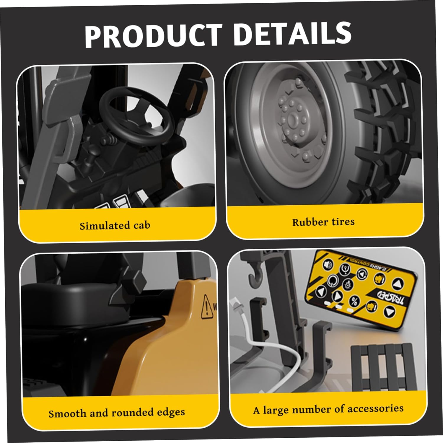 Costruzione in lega per la sicurezza: i componenti chiave sono caratterizzati da robusti materiali in lega, che garantiscono resistenza agli urti e durata..Sicuro per far giocare i bambini, resiste a urti e urti garantendo al tempo stesso un divertimento duraturo. Effetti sonori emozionanti: i suoni di avvio realistici e un fragoroso migliorano l'esperienza coinvolgente, rendendo il tempo di gioco più emozionante..Questi effetti audio conferiscono al carrello elevatore un aspetto realistico, aggiungendo divertimento. Precisione del telecomando: dotato di un telecomando reattivo, questo carrello elevatore garantisce un funzionamento regolare con ritardo zero..Gli utenti possono regolare l'altezza, spostarsi, indietro e manovrare gli oggetti senza soluzione di continuità per un gioco interattivo coinvolgente. Simulazione realistica di sollevamento: questo mini carrello elevatore telecomandato in scala 1/64 è progettato per replicare le operazioni di magazzino reali, consentendo ai bambini e ai collezionisti di godersi con facilità il sollevamento, l'impiccagione e il trasporto realistico di piccoli oggetti. Ricaricabile e portatile: con una batteria ricaricabile (NON INCLUSA), questo carrello elevatore garantisce un gioco continuo senza sostituzioni frequenti..Le sue dimensioni compatte e le staffe multi-montaggio rimovibili consentono una facile conservazione, personalizzazione e portabilità ovunque.