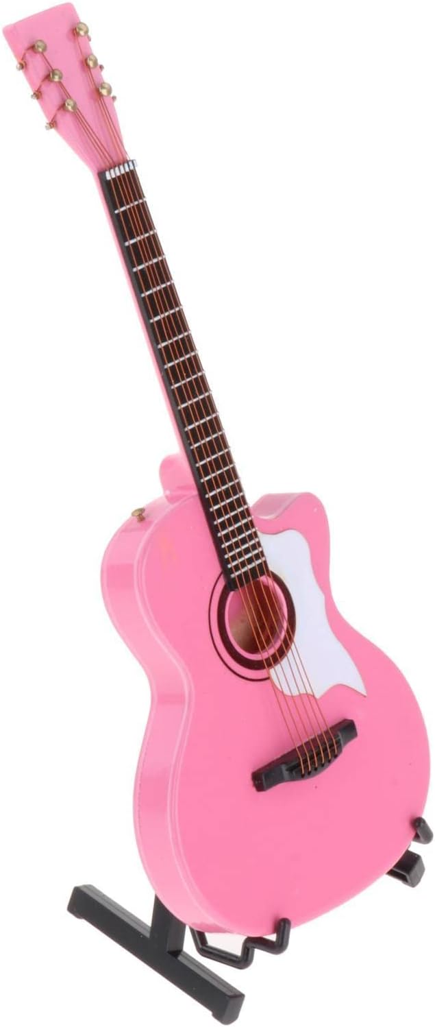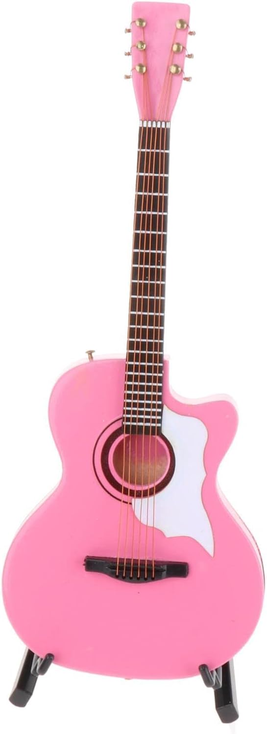 Collezioni squisite: ben progettate e realizzate per i tuoi bambini che hanno un compagno di casa lungo giocando Scala 1/6: modello di chitarra in legno artigianale con espositore Lunghezza: 17 cm, colore: rosa, Adatto per: casa delle bambole in miniatura 1:6; creazione di scene di vita; casa delle bambole, modello di casa Materiale: legno, ecologico e durevole.
