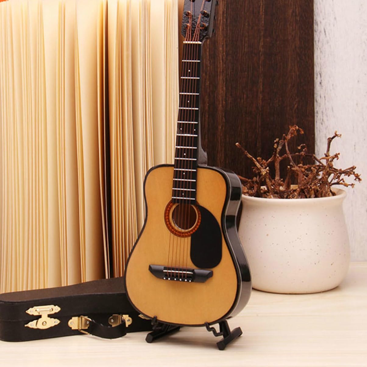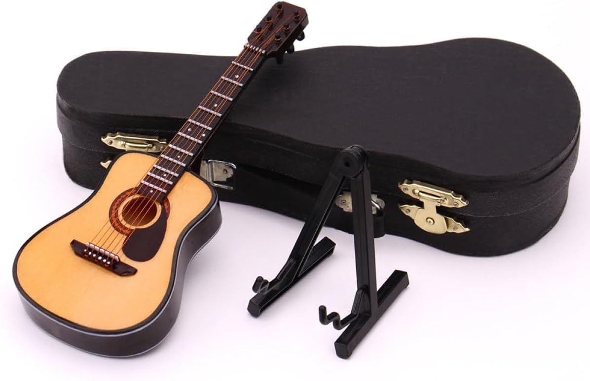 Decorazione per piccole chitarre: realizzata in materiale resistente per un a lungo termine e non facile da deformare, mini di chitarra creativa Decorazione per chitarra da tavolo: la pregevole fattura la rende resistente sbiadimento, di chitarra acustica Strumento musicale da esposizione: può anche essere utilizzato come oggetto di per foto con delicato di chitarra, mini di chitarra, ornamenti Modelli di strumenti in miniatura: regali ideali per la , i tuoi tuoi colleghi, decorazioni in miniatura Modelli di strumenti musicali: adorabili, li rendono più attraenti e aggiungeranno un'atmosfera alla casa, strumento in miniatura