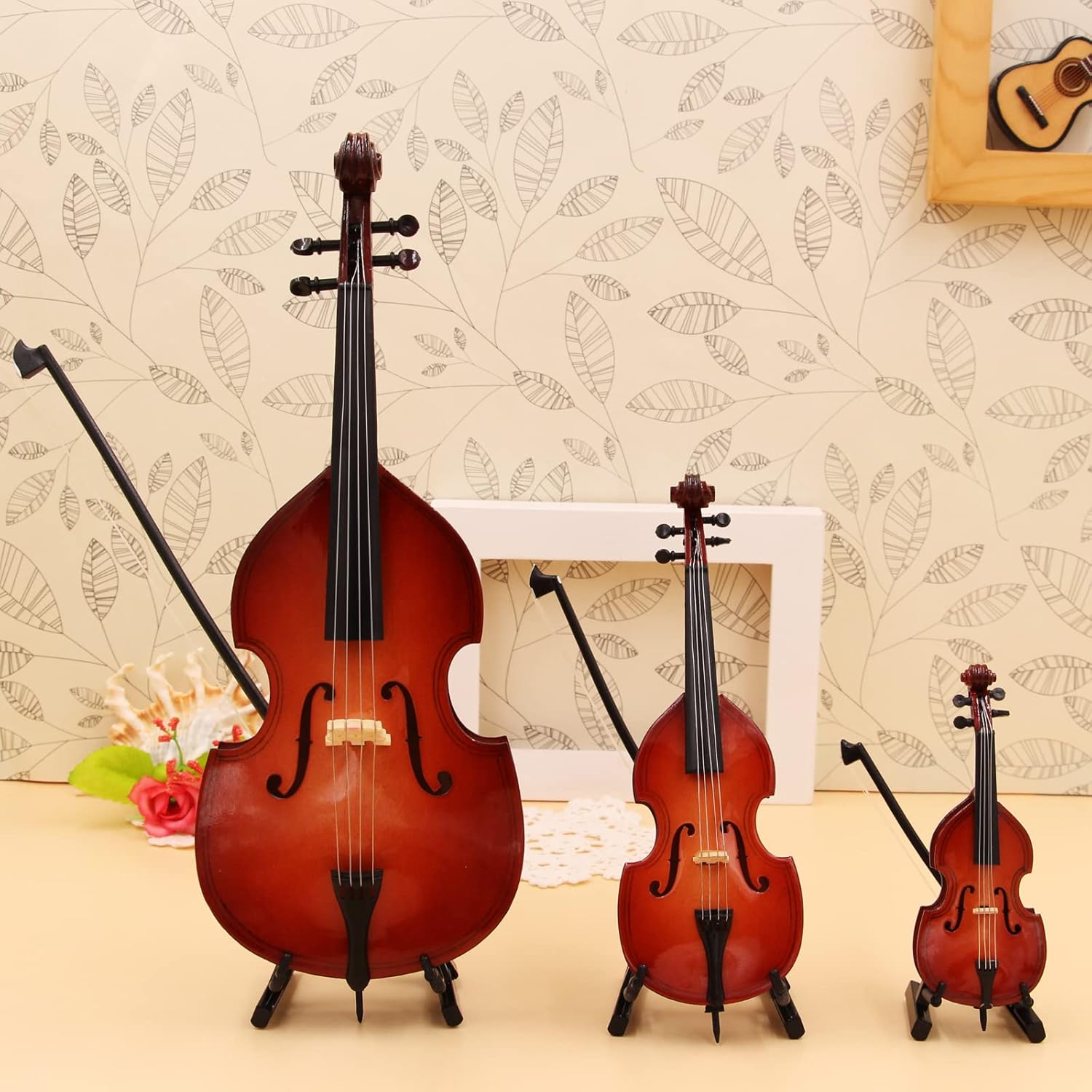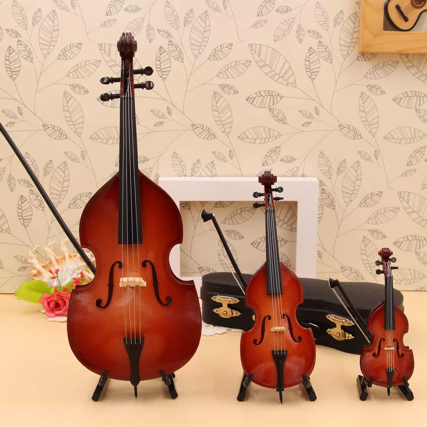 Realizzato in legno con verniciatura superficiale, questo ornamento per strumenti in miniatura è un artigianato di alta qualità. Viene fornito con un supporto, questo modello può essere posizionato sulla libreria, sulla scrivania, accanto al tavolo e nella stanza della musica come decorazione. Questo ornamento in miniatura ha un'incredibile attenzione ai dettagli dalle corde alla testa per la sua squisita fattura e il design innovativo. Viene fornito con una bellissima custodia regalo in legno e una base per conservare ed esporre la miniatura. Un regalo di Natale e di compleanno perfetto per i tuoi bambini, amanti o i tuoi amici musicisti.