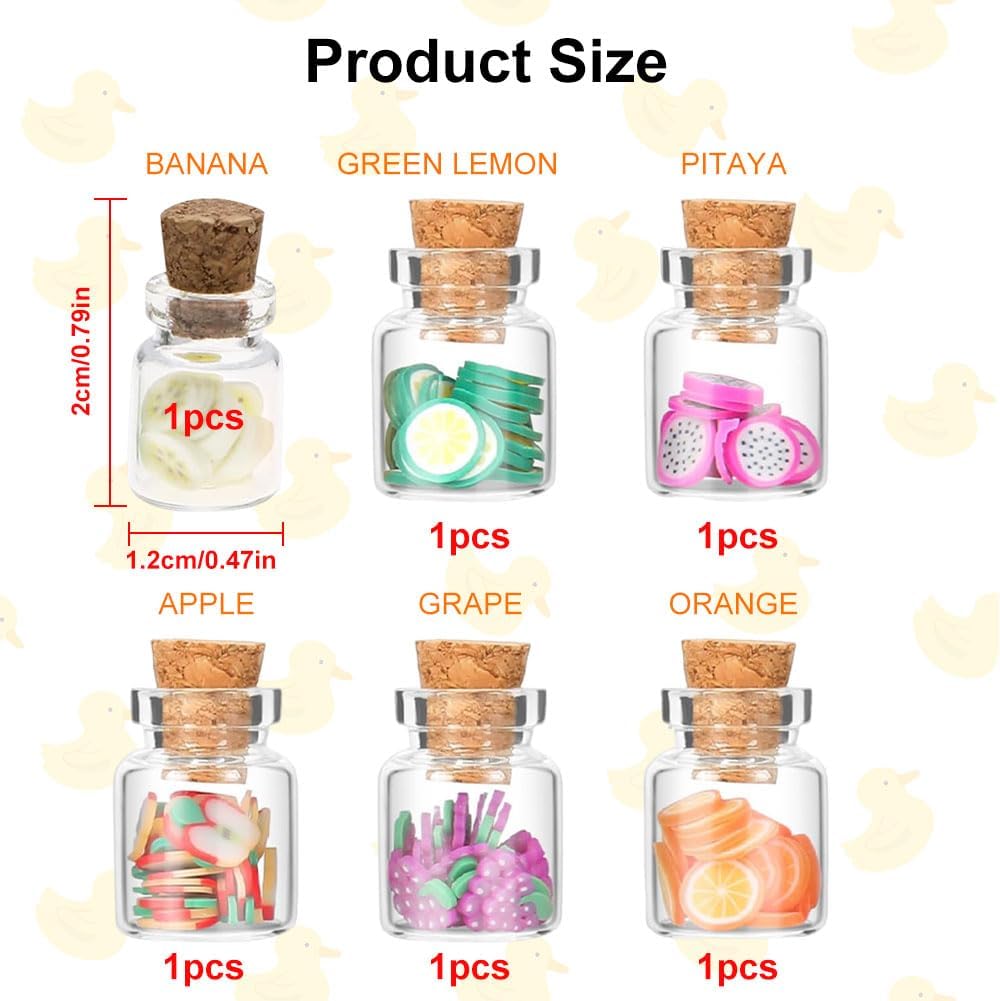Dollhouse Mini Wishing Bottle: il set contiene 6 pezzi di barattolo di fette di frutta in vetro. Alto 25 mm, ci sono banane, limoni verdi, frutti del drago, arance, mele, uva, 6 bottiglie diverse. Mini fette di frutta in bottiglia di vetro: ognuna viene fornita con un tappo di sughero, riempita con una varietà di spezie e una varietà di frutta secca, perfetta per la tua casa delle bambole. Nota: giocattoli non per bambini, prestare attenzione per evitare l'ingestione accidentale o lesioni accidentali ai bambini piccoli; Questo prodotto è solo un modello giocattolo e non è destinato all'uso da parte di una persona reale. Squisita fattura: la lavorazione è molto buona, la superficie è liscia e non farà male alle mani. Splendidamente progettato e ben fatto, è un'ottima decorazione per la tua casa delle bambole. Decorazione della casa delle bambole: le nostre decorazioni per la casa delle bambole sono disponibili in diversi stili e sono perfette per Natale, compleanni e festa dei bambini come regali per i bambini. Ampiamente usato: 1/6 1/12 scale casa delle bambole e decorazioni per torte per bambole, scuola materna fatta a mano, micro paesaggio di muschio, paesaggio carnoso, accessori per la casa delle bambole, bottiglia dell'oceano, bottiglia del cielo stellato, materiali fai-da-te, accessori fai-da-te per telefoni cellulari, decorazioni per scene, mini ornamenti da tavolo, ecc.