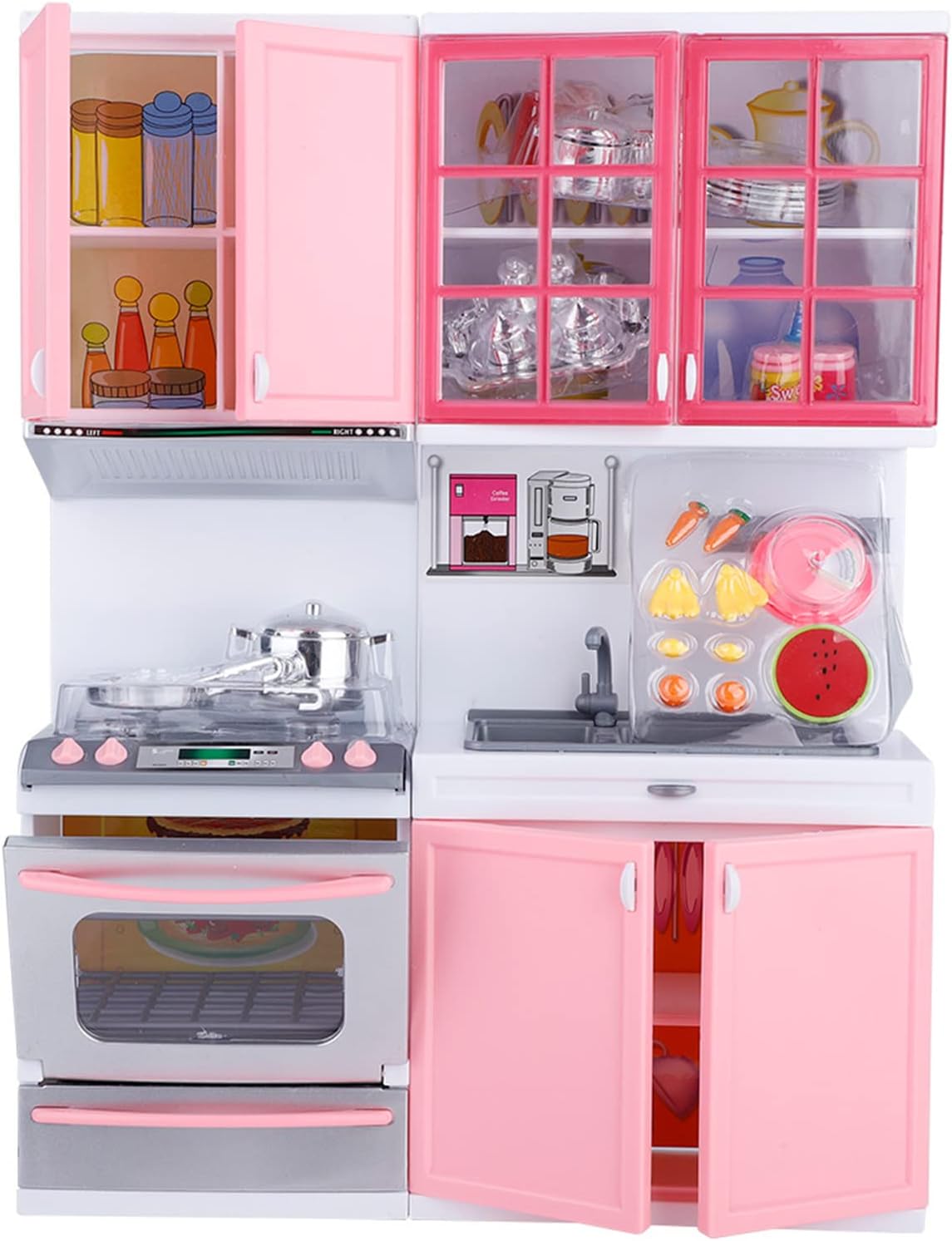 [Materiale di qualità premium] realizzato in plastica resistente e non tossica che è per i bambini con cui giocare [Set da cucina completamente attrezzato] comprende un forno a gas, un forno a microonde, una lavatrice per piatti, un lavandino, armadi e vari utensili da cucina per un'esperienza di gioco realistica [Giocattolo educativo] aiuta i bambini a conoscere diversi utensili da cucina divertendosi durante il gioco [Interazione sociale] incoraggia i bambini a giocare con famiglie o amici, migliorando le loro capacità di comunicazione e interazione [Design divertente e coinvolgente] presenta effetti di suono e luce che aggiungono eccitazione, rendendolo un per i bambini