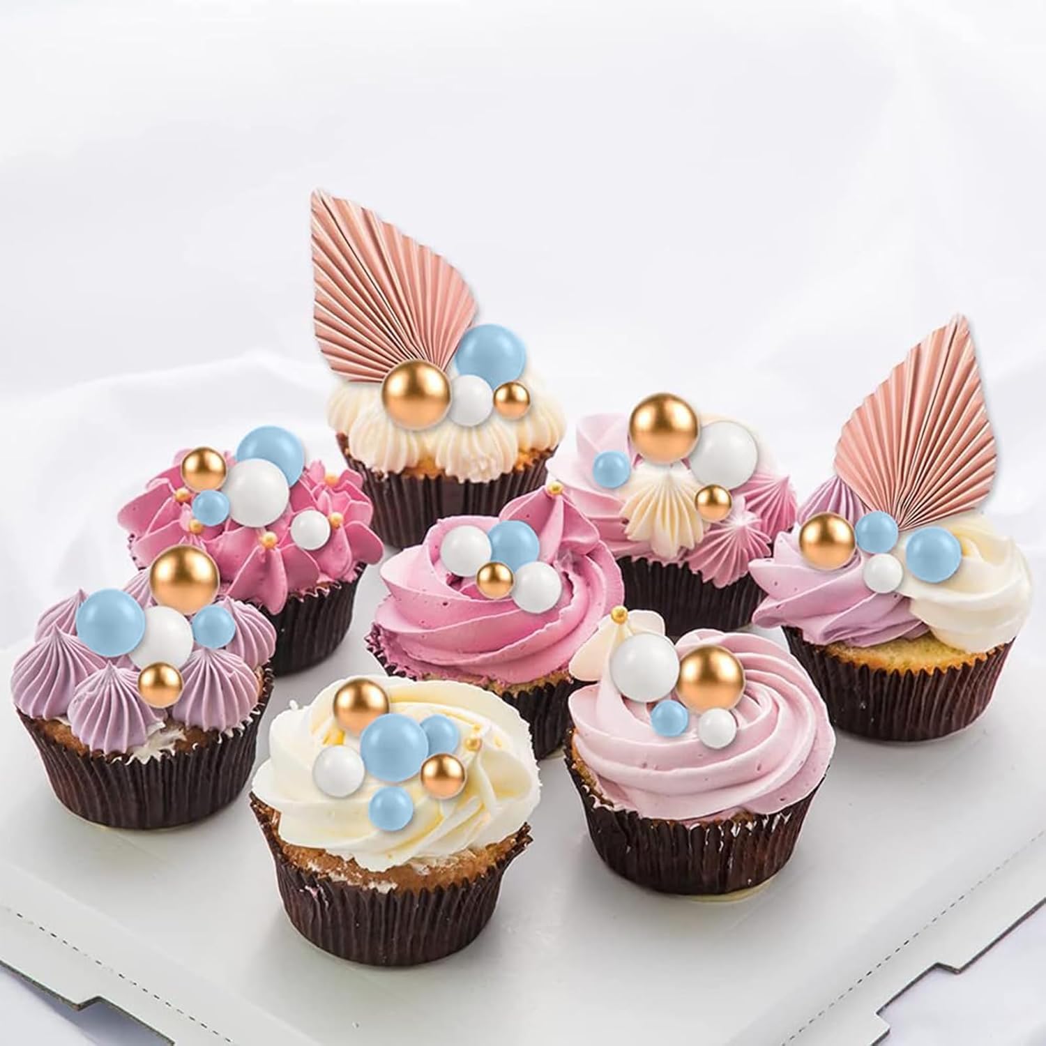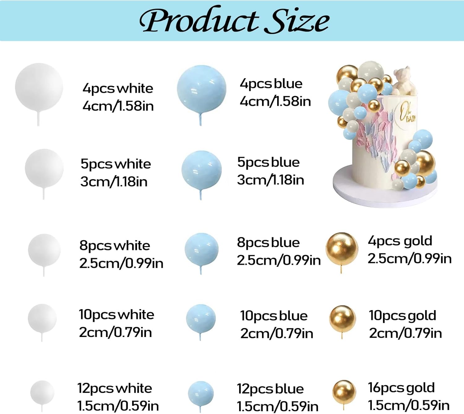 🎂【Varie dimensioni】: questi toppers per torta sono disponibili in 5 diverse dimensioni, tra cui 4 cm/1,57 pollici, 3 cm/1,18 pollici, 2,5 cm/0,98 pollici, 2 cm/0,79 pollici, 1,5 cm/0,59 pollici. La combinazione di dimensioni e colore rende la tua torta decorata più a strati e delicata. 🍰【Varie combinazioni】: Riceverai 108 palline per decorazione torta, colori oro, bianco, blu, sono molto luminose e possono essere utilizzate con altre decorazioni per rendere la tua torta più bella; Non solo soddisfa le tue esigenze, ma anche regalalo. 🎂【Materiale Premium】: questi toppers per cupcake a sfera sono realizzati in schiuma e filo. Sicuro per decorare cibi a temperatura ambiente, decorare torte o dessert o cupcakes, frutta, formaggi e qualsiasi piatto e antipasto che desideri decorare. 🍰【Facile da usare】: queste palline per decorare torte sono molto facili da usare e non richiedono strumenti aggiuntivi. Ogni pallina di mousse può essere inserita direttamente nella torta. Dopo l'uso, puoi semplicemente pulire il bastoncino e riutilizzarlo. 🎂【Decorazioni per torte per feste】: queste palline decorative per torte sono molto carine, molto adatte per la decorazione di torte in varie feste, come feste di compleanno, baby shower, feste in giardino, feste in casa, San Valentino, matrimoni, decorazioni per cupcake per feste di compleanno. Puoi usarli anche per gelati, frutta, biscotti e altri dolci.