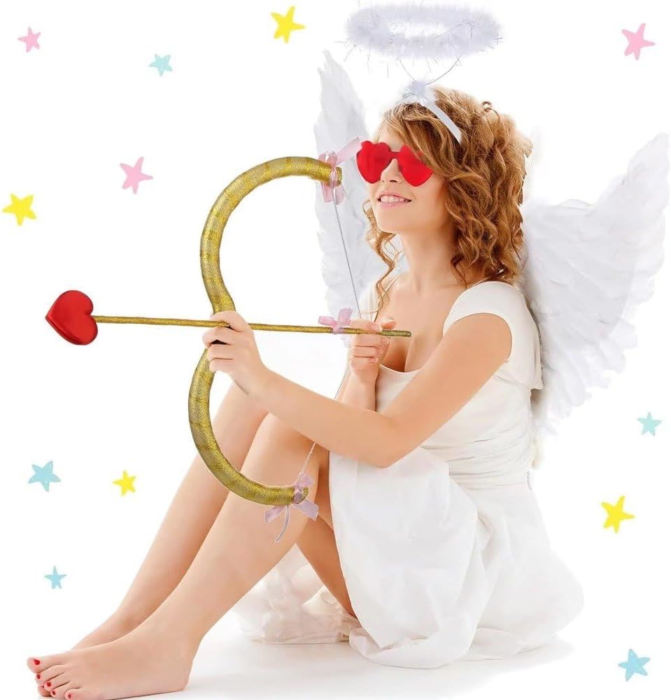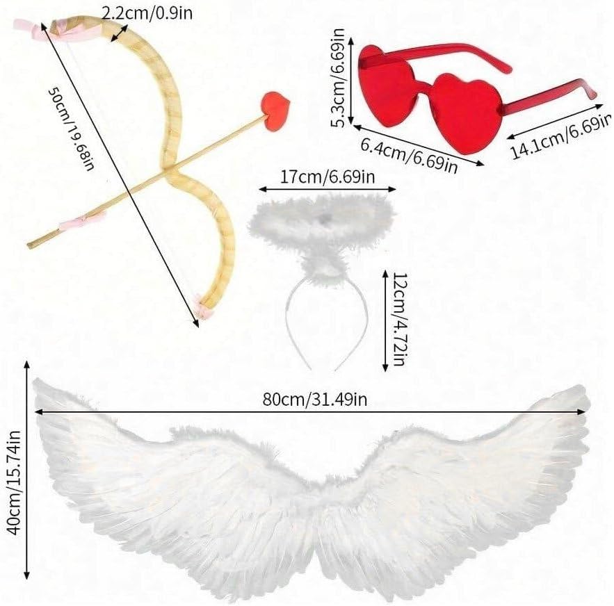 Sembra naturale e delicato, facile catturare l'attenzione degli altri. Gli occhiali sole si combinano con elementi a forma di cuore, con un tocco di rosso, abbastanza affascinante. Basta indossare questi accessori insieme e diventerai un'adorabile fata. Il set Cupido è un accessorio unico per famiglia e gli amanti del cosplay. Questo set è perfetto per decorare costumi per anniversari, fidanzamenti, matrimoni e fai te. Il kit di accessori per il costume di Cupido è adatto per feste, travestimenti, costumi di , costumi di Halloween, eventi, festival, concerti, feste di compleanno, giochi di ruolo, costumi principessa e molto altro. Unici e squisiti, dalla struttura semplice, leggeri, facili trasportare e usare, gli elementi a tema Cupido rendono gli oggetti di scena dei costumi molto carini e delicati. Design interessante e romantico, puoi scegliere di indossarlo in base alle tue preferenze e necessità.