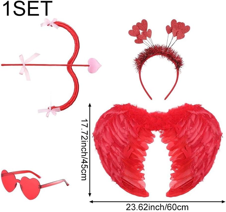 Il kit di accessori per il costume di Cupido è adatto per feste, travestimenti, costumi di , costumi di Halloween, eventi, festival, concerti, feste di compleanno, giochi di ruolo, costumi principessa e molto altro. Sembra naturale e delicato, facile catturare l'attenzione degli altri. Gli occhiali sole si combinano con elementi a forma di cuore, con un tocco di rosso, abbastanza affascinante. Basta indossare questi accessori insieme e diventerai un'adorabile fata. Design interessante e romantico, puoi scegliere di indossarlo in base alle tue preferenze e necessità. Unici e squisiti, dalla struttura semplice, leggeri, facili trasportare e usare, gli elementi a tema Cupido rendono gli oggetti di scena dei costumi molto carini e delicati. Il set Cupido è un accessorio unico per famiglia e gli amanti del cosplay. Questo set è perfetto per decorare costumi per anniversari, fidanzamenti, matrimoni e fai te.