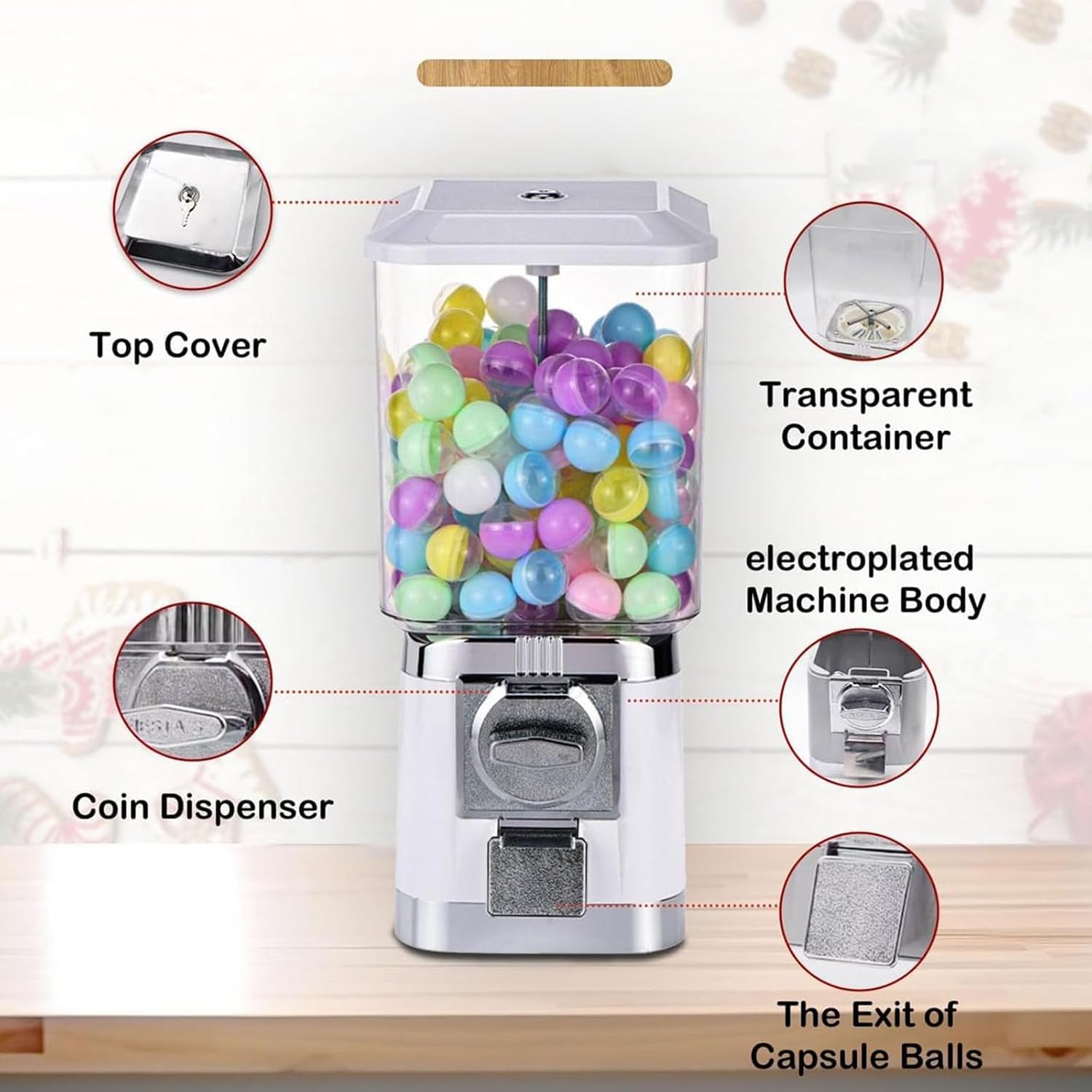 【Design vintage】 Incontra la durata industriale realizzata in lega di zinco completa con interni addominali rinforzati. Include 100 capsule vuote e 30 token in acciaio inossidabile, raddoppiando l'offerta standard. 【Ad alta capacità e risparmio di manodopera】 detiene fino a 200 sfere o caramelle da 1,25 "standard del settore. 【Autentica moneta meccanica】 Funzionamento Inserisci token, ruota la leva a 360 ° e dispensa all'istante, nessuna elettricità necessaria. Goditi l'interazione classica eliminando i costi della batteria. 【Moneta in acciaio inossidabile】 canali di moneta in acciaio inossidabile di qualità, cupola per PC resistenti a frantumi e ABS. Preserva la freschezza e resiste a oltre 50.000 cicli in uso ad alto traffico. 【Conveniente e divertente】 Lockbox frontale con chiave dedicata consente un recupero di moneta rapido e privo di strumenti. Struttura la raccolta delle entrate per operatori e personale.