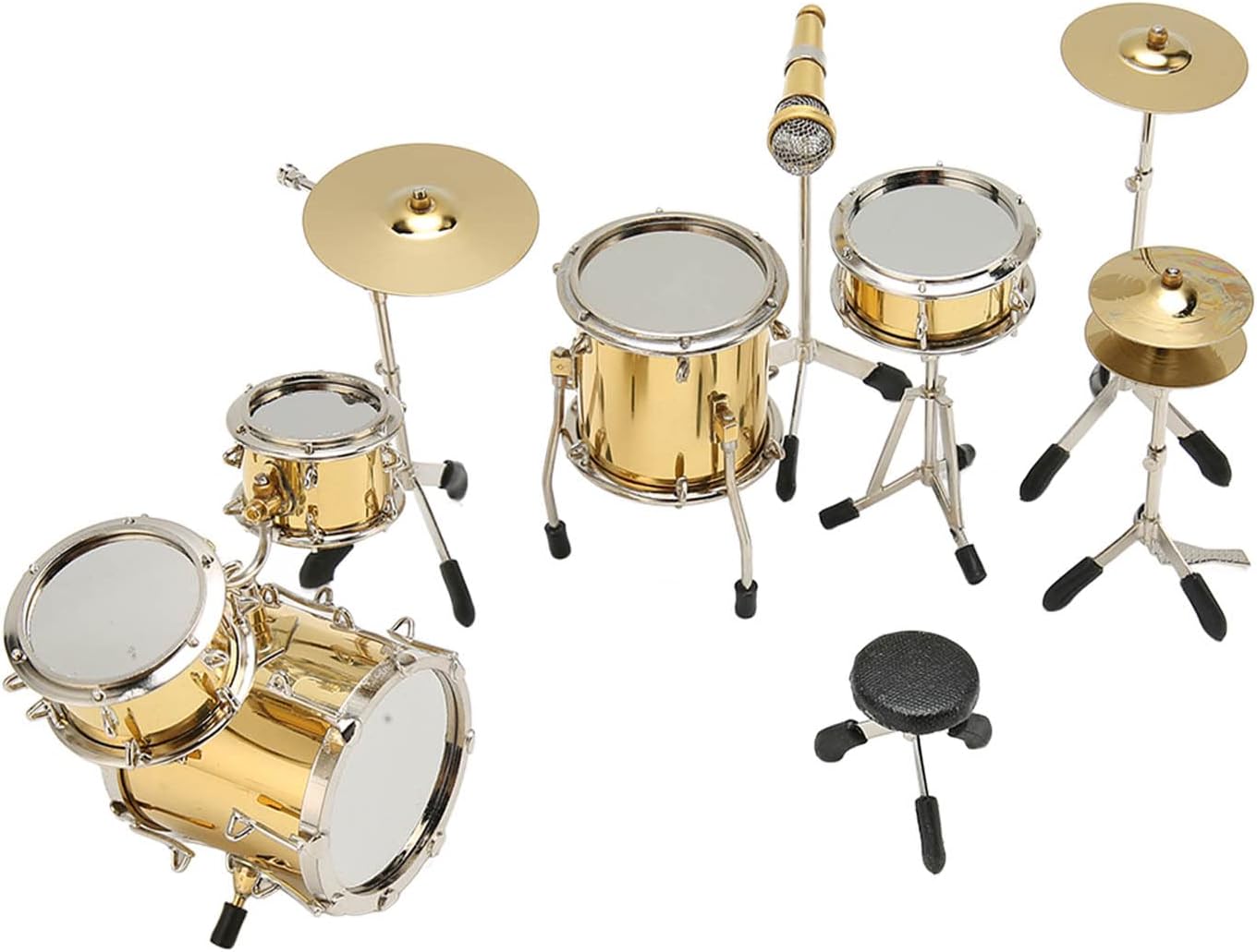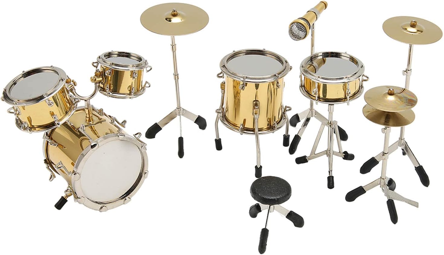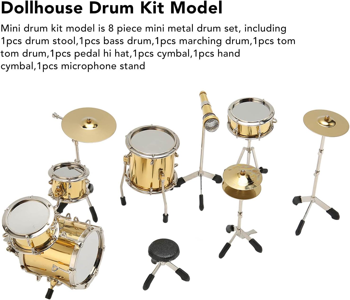 [Replica in miniatura dettagliata] Il modello di drum kit in miniatura è una replica altamente dettagliata di un kit di batteria, per la visualizzazione come strumento analogico non giocabile. [Set di tamburi da otto pezzi] Questo mini modello di batteria comprende 8 pezzi: sgabelli, bassi, tamburo in marcia, tamburo Tom Tom, pedale hit, piatti, piatti a mano e microfono per un set completo. [Decorazione squisita] Il drum kit in miniatura aggiunge un tocco di bellezza alla tua casa o alla tua scrivania, fornendo una decorazione unica e accattivante. [Scelta ideale] Questo modello di strumenti per le bambole è un per familiari, amici e appassionati di musica, ideale per compleanni e vacanze. [Materiale metallico durevole] realizzato in materiale in metallo di alta qualità, questo mini modello di drum kit è un bellissimo e resistente pezzo di artigianato che resisterà alla prova del tempo.