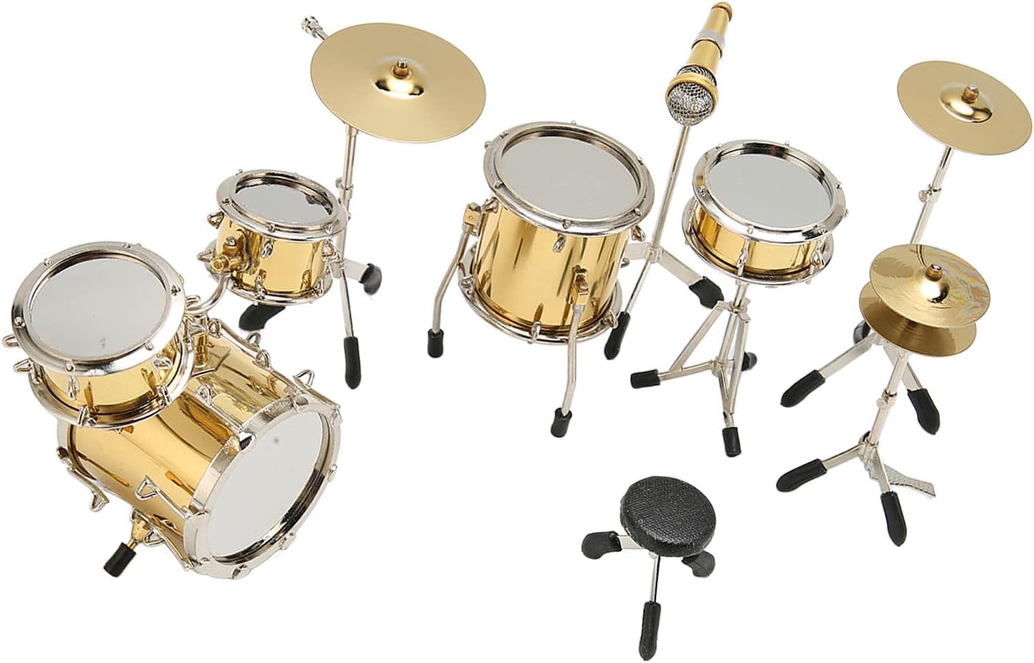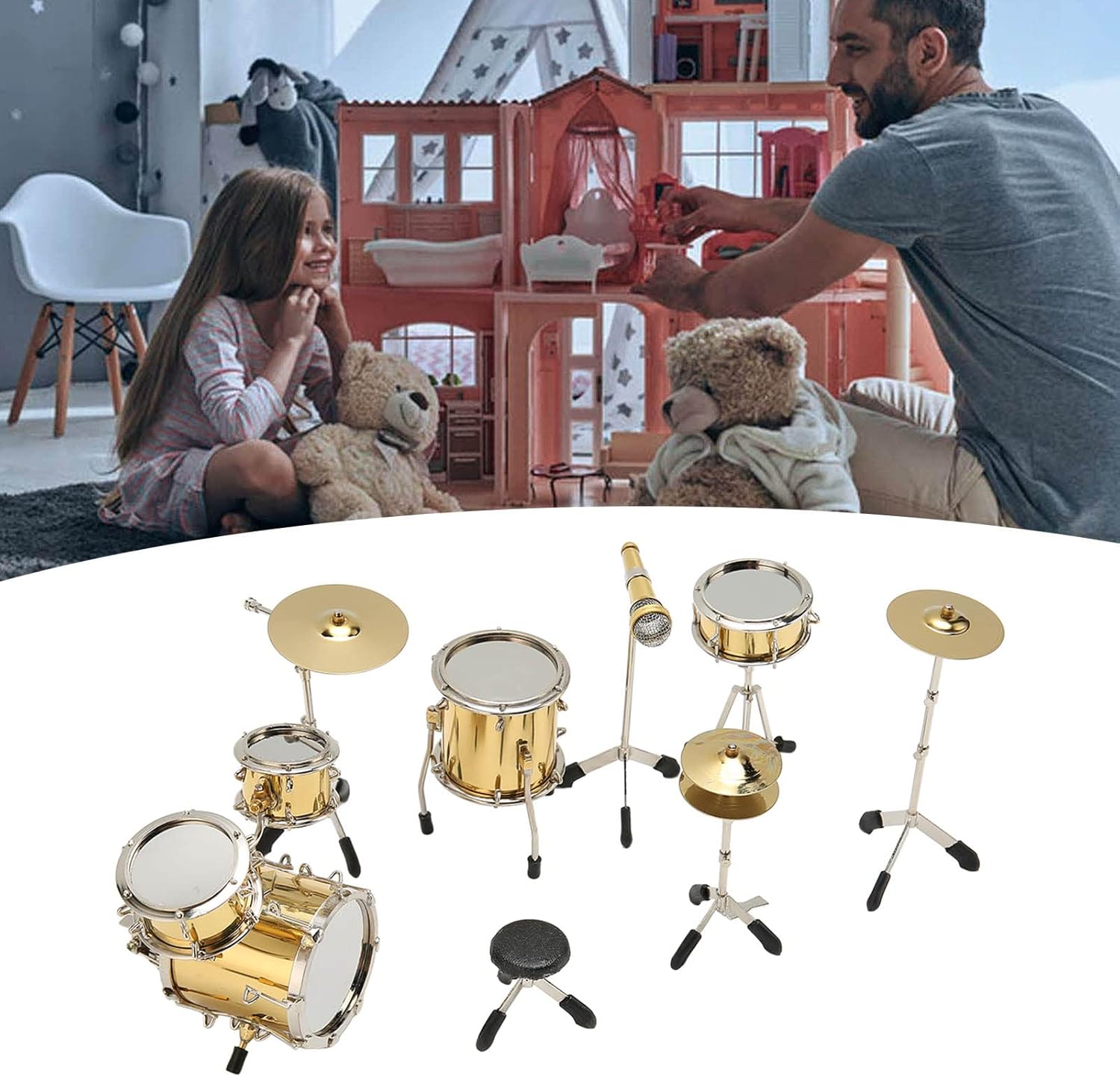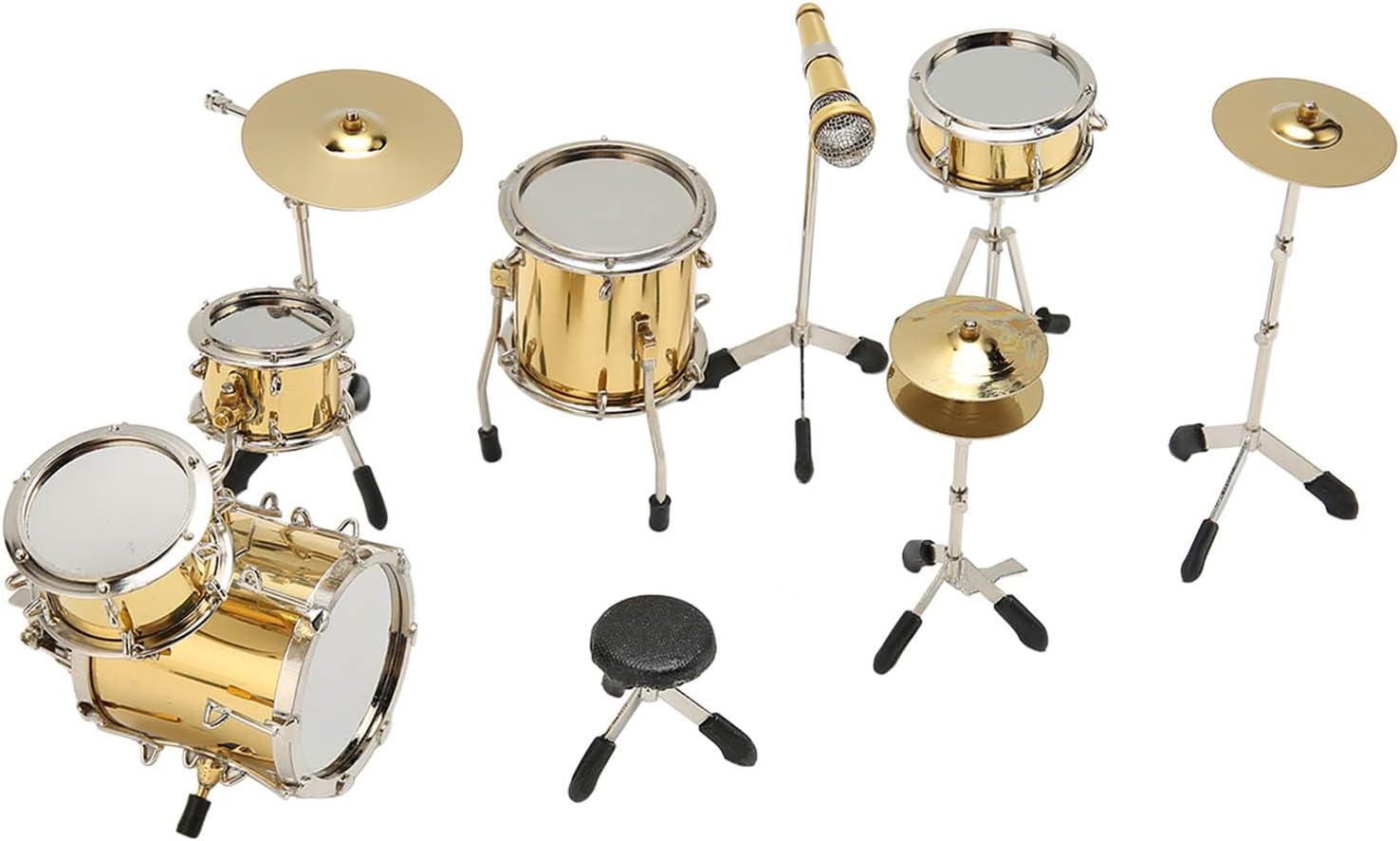 [Replica in miniatura dettagliata] Il modello di drum kit in miniatura è una replica altamente dettagliata di un kit di batteria, per la visualizzazione come strumento analogico non giocabile. [Set di tamburi da otto pezzi] Questo mini modello di batteria comprende 8 pezzi: sgabelli, bassi, tamburo in marcia, tamburo Tom Tom, pedale hit, piatti, piatti a mano e microfono per un set completo. [Decorazione squisita] Il drum kit in miniatura aggiunge un tocco di bellezza alla tua casa o alla tua scrivania, fornendo una decorazione unica e accattivante. [Scelta ideale] Questo modello di strumenti per le bambole è un per familiari, amici e appassionati di musica, ideale per compleanni e vacanze. [Materiale metallico durevole] realizzato in materiale in metallo di alta qualità, questo mini modello di drum kit è un bellissimo e resistente pezzo di artigianato che resisterà alla prova del tempo.
