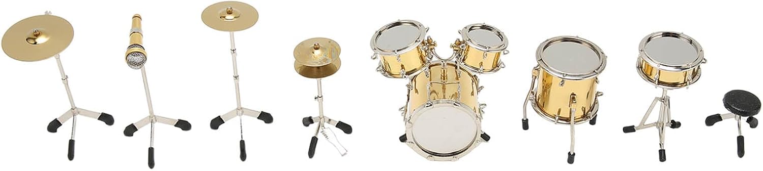 [Modello in miniatura] Replica in miniatura dettagliata del drum kit, strumento analogico non giocabile [8 pezzi set di tamburi] include feci di batteria, tamburo di bassi, tamburo in marcia, tamburo Tom Tom, pedale hi -cappello, piattano, piattano di piatti a mano, microfono [Decorazione squisita] per il display di casa e da ufficio [ ideale] Adatto a familiari, amici e amanti della musica per compleanni e vacanze [Materiale metallico] Craftsmanship bello e resistente realizzato in metallo