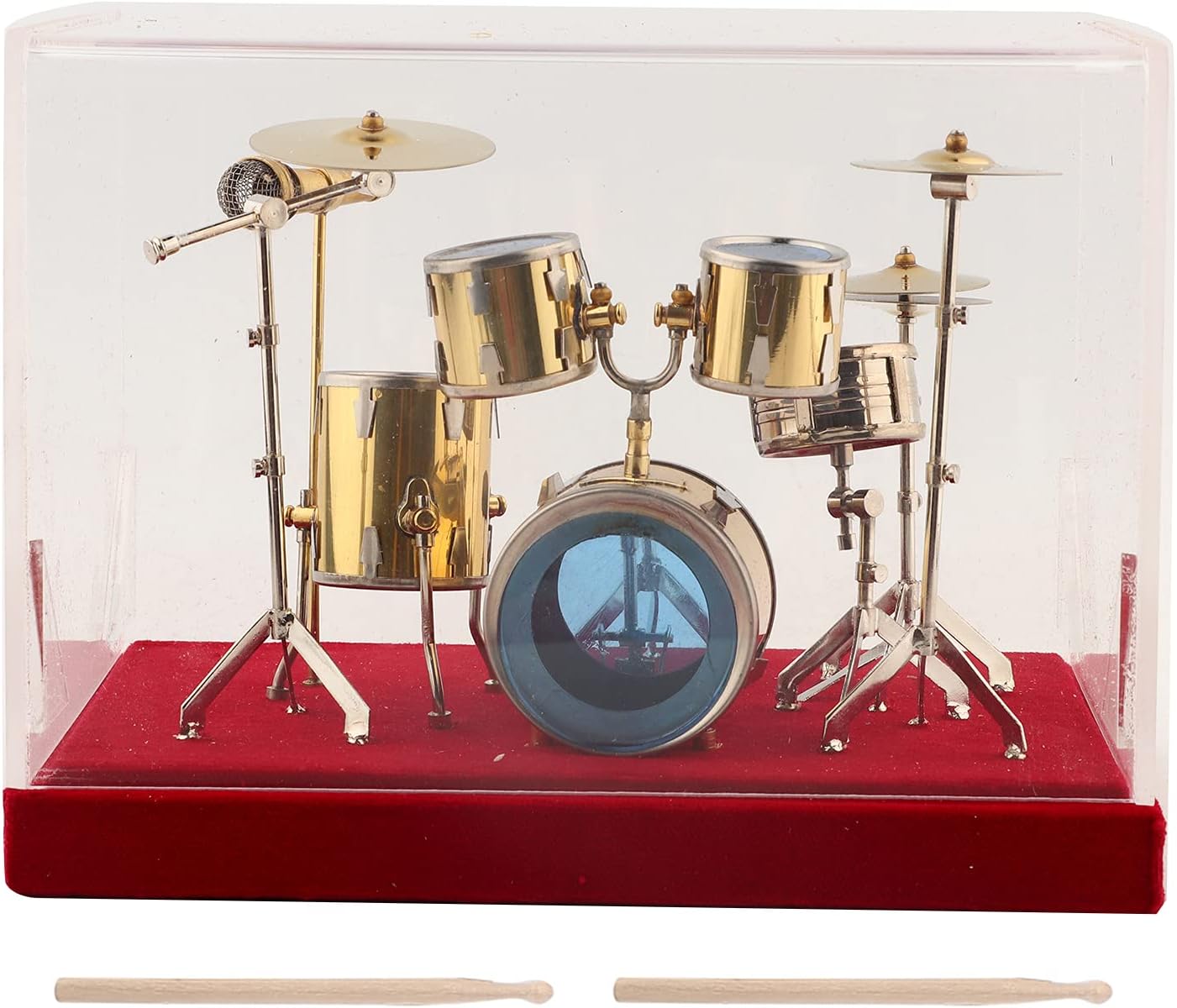 Materiale: mini strumenti musicali realizzati in materiale in rame, bellissimi. Ornamenti del tamburo Ornamenti compatti. Bello e generoso Squisita lavorazione: Mini Musical Strument Model è una squisita fattura fatta a mano e un look realistico. Compresi tamburi di bassi, fusti di cerniera, tamburi, piatti di piatti e micryfono, ecc. Set di tamburi mini: mini set di tamburi per scrivania con superficie di placcatura dorata che toccano liscio e lucido. Tamburo in miniatura molto adatto per il posizionamento su una scrivania o su una libreria Facile da archiviare: Mini Drum Model dotato di una delicata scatola di archiviazione, facile da archiviare. Facile da visualizzare su un tavolo o ovunque in casa Decorazione: il set di tamburi per strumenti musicali in miniatura è una decorazione per la scrivania e il tavolo da ufficio, un grande ornamento per i tuoi amici o familiari