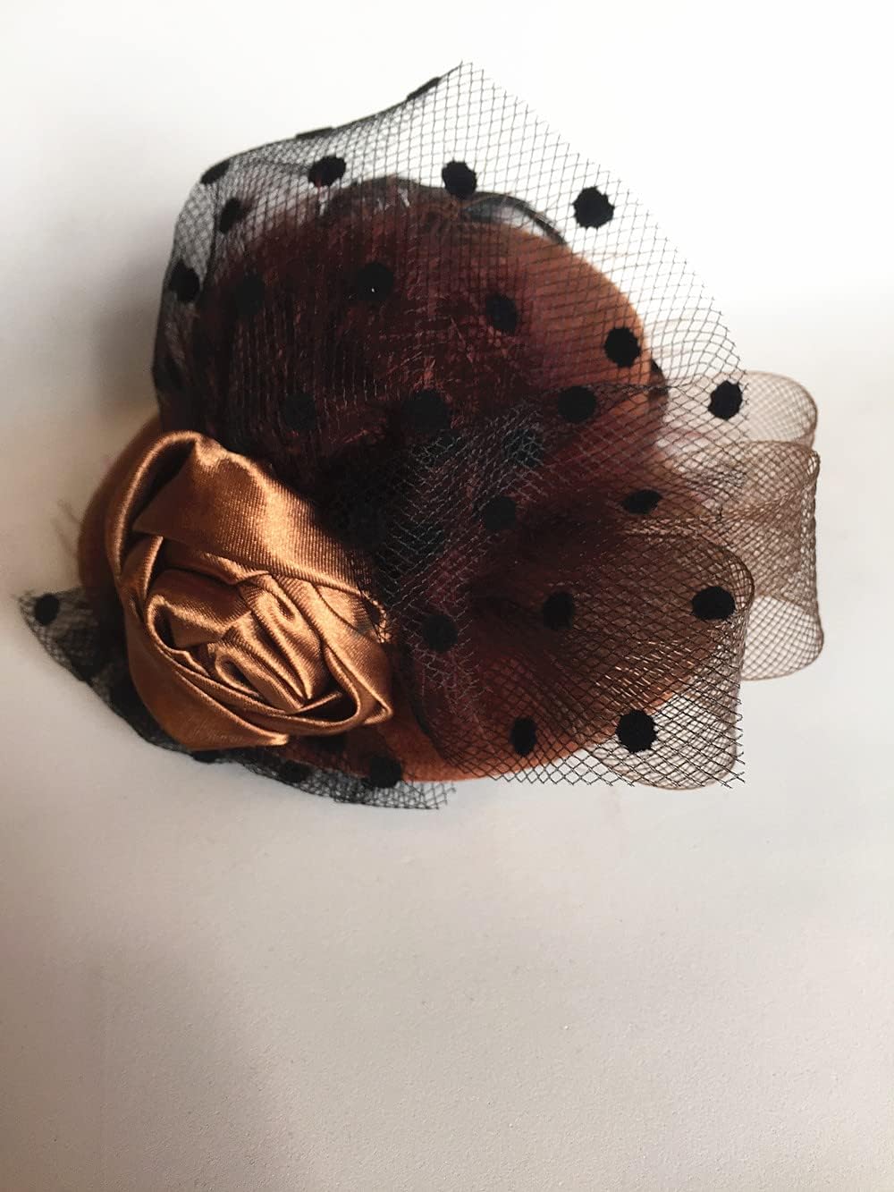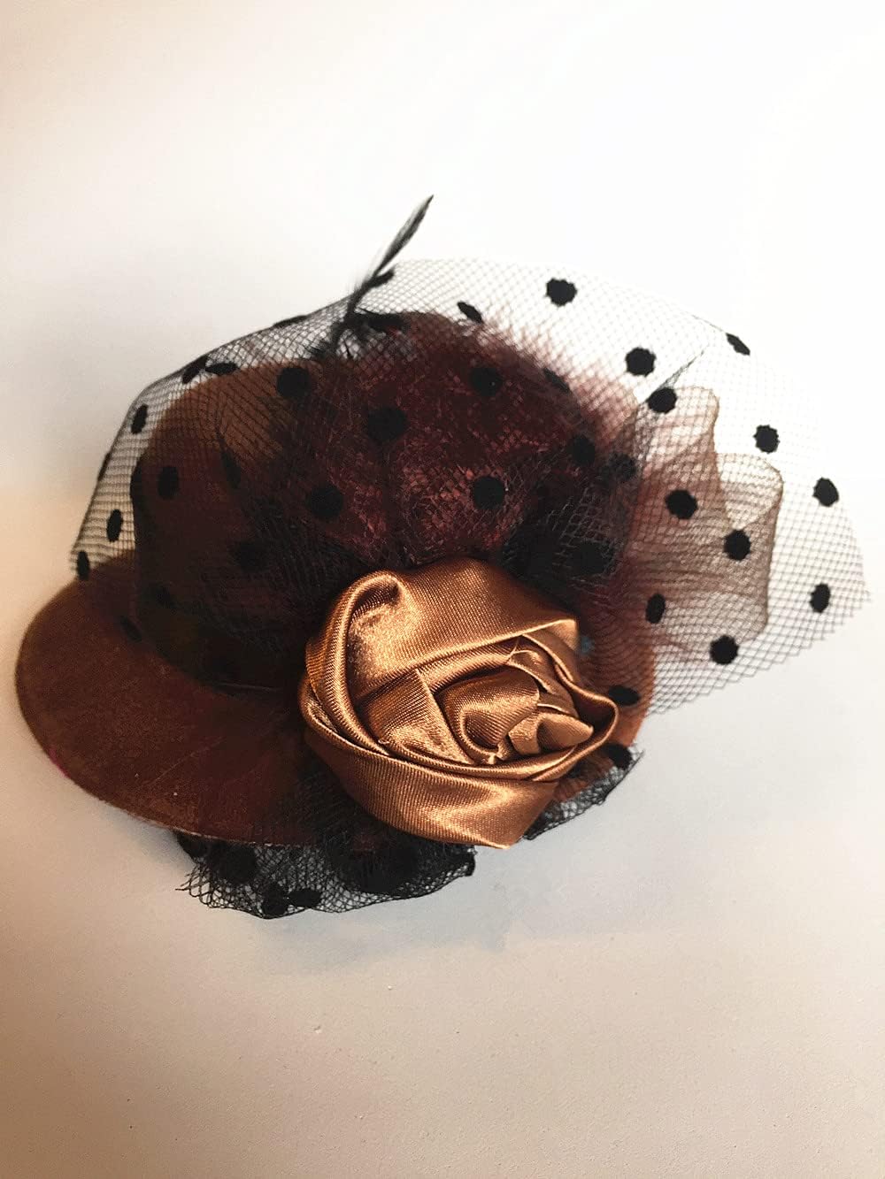 Cappello fascinator, decorato da un papillon in tulle con fiore in tessuto colorato e piume. Si fissa con due clip metalliche e tiene molto bene. Un cappello molto carino da indossare sopra la tua acconciatura o la tua parrucca, per personalizzare il tuo completo! Diametro circa 14 cm, altezza 5 cm, si fissa saldamente con 2 morsetti. Un accessorio molto carino da appendere alla tua acconciatura o alla tua parrucca, per completare un outfit da dolce lolita o qualsiasi altro outfit.