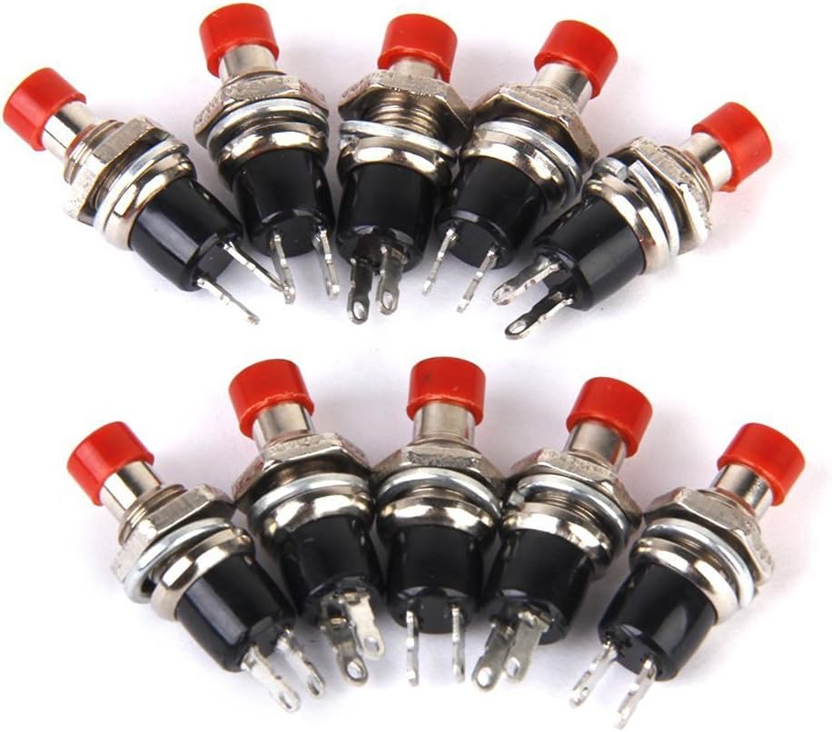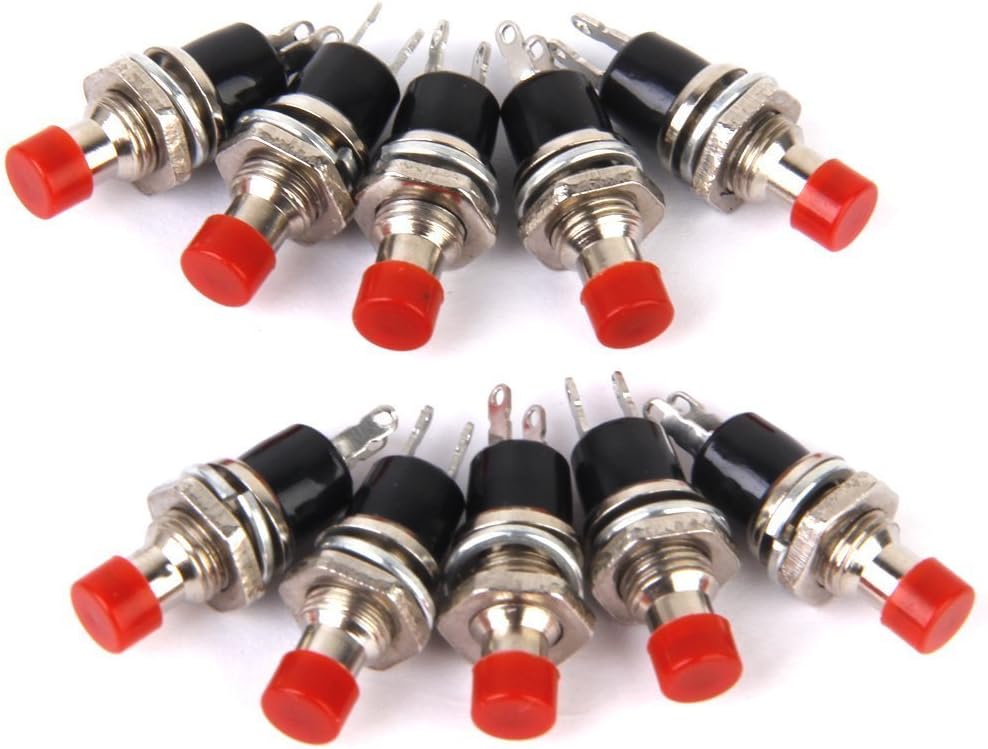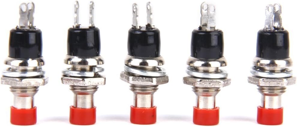 Lunghezza totale: ca. 25 mm / 1 pollice I pulsanti sono ideali per il montaggio su telaio e sono forniti con un dado di fissaggio e una rondella Interruttore momentaneo (acceso) (l'interruttore si attiva solo il pulsante viene tenuto premuto) Diametro della filettatura: ca. 7 mm / 0,27 pollici Materiale: plastica + metallo