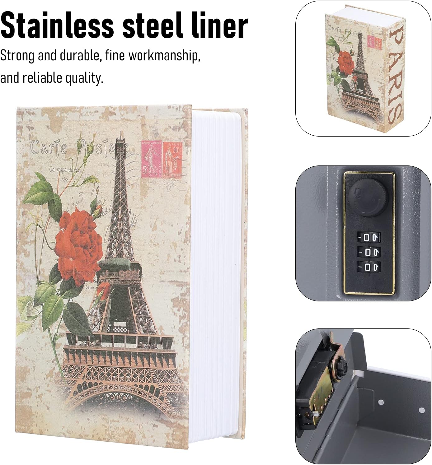 [Bella carta testurizzata] La carta testurizzata a touch morbida offre un'esperienza visiva e tattile unica, migliorando il fascino generale del mini libro sicuro. [Rivestimento durevole in acciaio inossidabile] La fodera in acciaio inossidabile forte e affidabile è per la salvaguardia di articoli importanti come e le carte bancarie, rendendolo ideale per i bambini come scatola per risparmiare denaro. [Design umanizzato] Con un lato che imita il design di un libro, questa cassaforte consente di archiviare e asciugamani di carta discreti senza bisogno di sbloccarlo. [Buona occultamento] La Mini Book Safe offre un eccellente spazio di archiviazione nascosto per mantenere i tuoi oggetti di valore sicuri e fuori dalla vista. [Utilizzo multiuso] Con un design ragionevole, questa cassaforte è adatta per la salvaguardia di vari articoli tra cui, carte bancarie, carte d'identità, documenti e gioielli.
