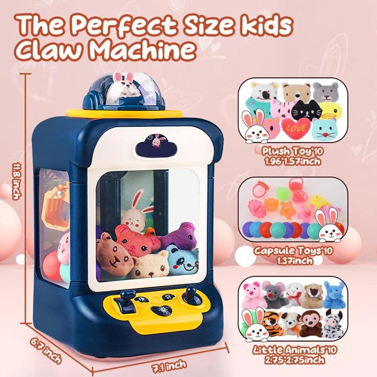 【Fun Mini Arcade Claw Machine】 Divertiti A Guardare I Bambini Riunirsi Attorno A Questa Divertente Macchina Da Premi E Strillare Di Gioia Mentre Cercano Di Afferrare I Premi. Sono Ore Di Divertimento Per Bambini E Adulti E Perfette Per Le Feste. Puoi Tenere Il Premio O Rimetterlo Nella Macchina Per Un Divertimento Illimitato. 【Facile Da Usare E Volume Regolabile】 Con Controlli Facili Da Usare, Puoi Spostare L'Artiglio A Sinistra, A Destra, Su E Giù Per Raccogliere Facilmente Giocattoli E Sorprese. La Macchina Per Artigli Include Anche Un Pulsante Per Regolare Il Volume, Facilitando La Disattivazione Dell'Audio E Mantenendo L'Attenzione Sulla Competizione Di Gioco Con Il Mini Distributore Automatico. 【Espansione Dei Nuovi Premi Di Gioco】 La Macchina Arcade Claw Viene Fornita Con 20 Mini Peluche Casuali E 10 Giocattoli Gashapons. Puoi Anche Riempire Quello Che Vuoi. Come Caramelle/Gomme/Gomme/Snack/Mini Uova Di Pasqua. Questa Mini Macchina Arcade Presenta Luci, Suoni E Musica, Crea Una Vera Atmosfera Di Gioco. Cosa C'è Di Più: Il Volume Può Essere Regolato O Disattivato. 【Modalità Doppia Alimentazione】 La Nostra Macchina Gumball Per Bambini Ha Due Modalità Di Alimentazione, Non Solo Può Utilizzare L'Alimentazione A Batteria (Batterie Non Incluse), Ma è Anche Possibile Utilizzare Questo Mini Giocattolo Arcade Tramite Cavo Usb (Incluso). Due Opzioni Per Rendere Il Gioco Più Conveniente. 【Regalo Perfetto Per Feste Per Bambini】 Divertimento, Azione, Luci, Musica, è Proprio Come Una Classica Macchina Per Artigli Di Caramelle In Sala Giochi. Con Luci A Led Lampeggianti E Musica Autentica In Stile Arcade Machine. Un Regalo Ideale Per Bambini E Nipoti Per Il Loro Compleanno O Insegnanti Da Riempire Con Premi In Classe.