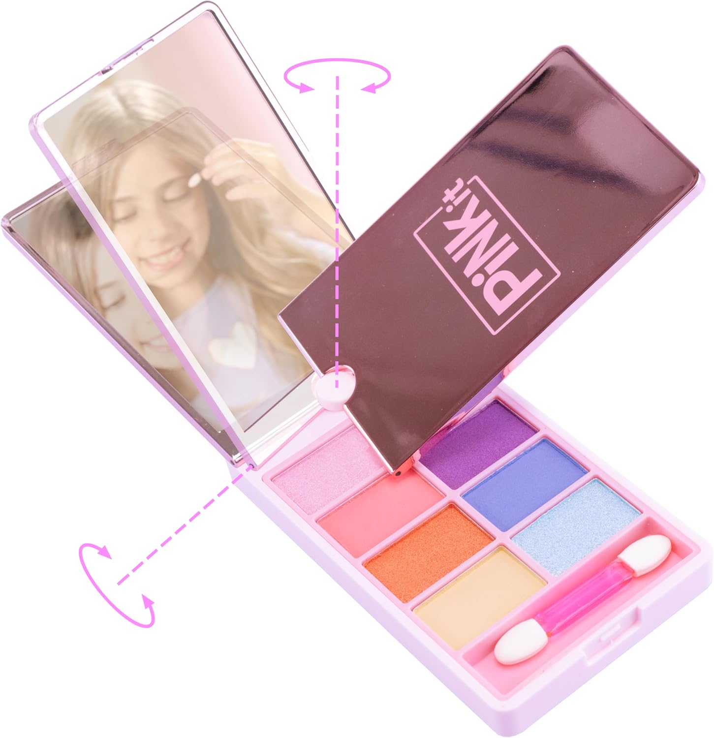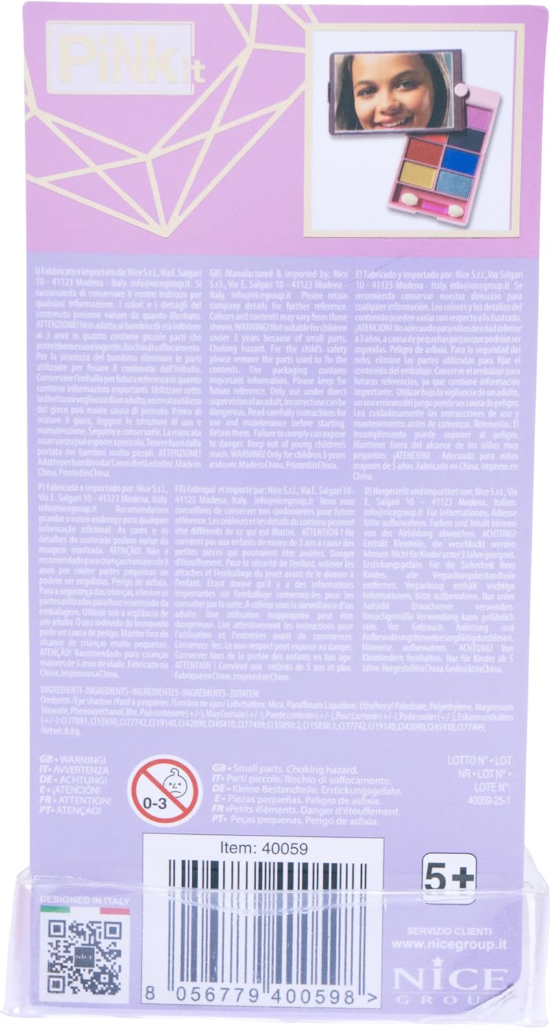 PINK IT MINI MIRROR PORTFOLIO: simpatica trousse ad astuccio a forma di smartphone con vassoio di colore rosa, specchio e kit di trucchi con ombretti per bambine. CARATTERISTICHE: il set da trucco per bambini è realizzato con materiali sicuri, testati, atossici, senza parabeni e risultano facilmente rimuovibili dalla pelle con l’uso dell’acqua e di detergente delicato. USO: il Mini Mirror Portfolio aiuta a stimolare la manualità, la coordinazione e le capacità di immaginazione di ogni bambino e bambina che vuole sentirsi da favola, senza porre limiti alla fantasia nella creazione di look alla moda adatti ad ogni occasione di festa. DIMENSIONI: L 7 cm x A 11,8 cm x P 1,5 cm. Grazie alla forma compatta, si può portare sempre con sé in borsa. Prodotto Originale PINK It by Nice Group. CONTENUTO: 8 ombretti, 1 applicatori. Età consigliata: 5+