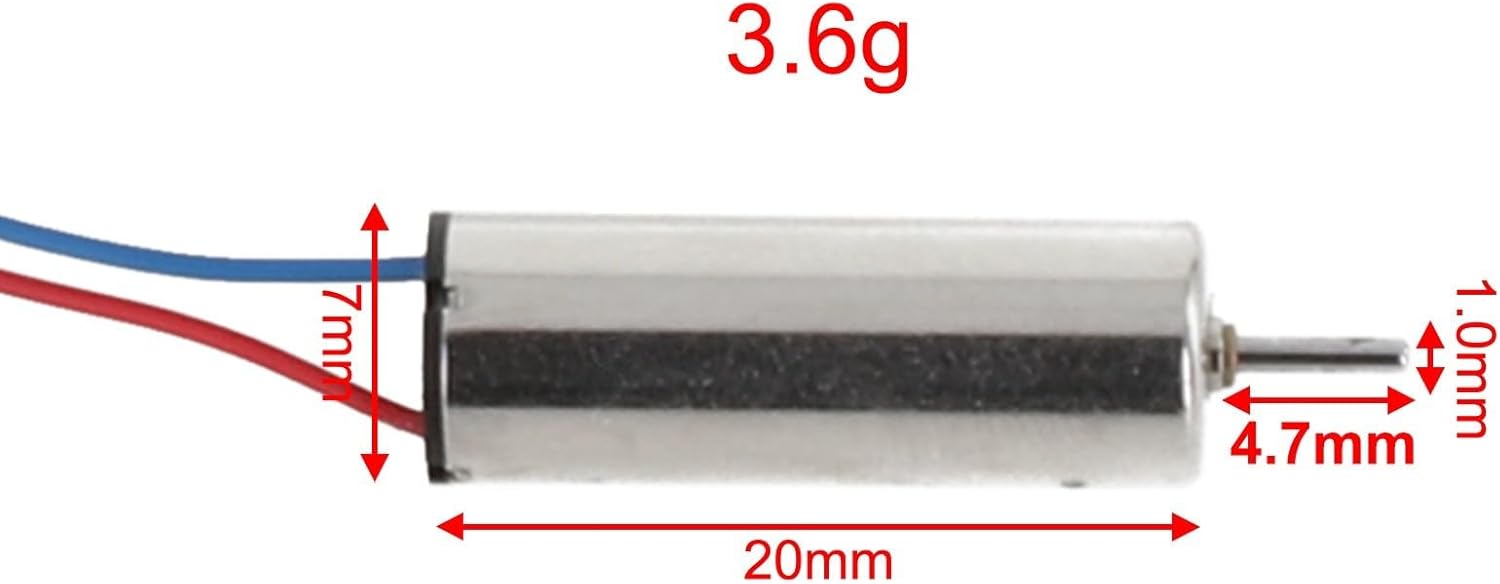 Motore ad alta velocità: il mini motore CC 12 V 24000 giri/min offre prestazioni ad alta velocità, consentendo un funzionamento efficiente e dinamico. 【Compatto e 】Realizzato con materiali robusti, questo motore è costruito per durare nel tempo. È progettato e testato secondo rigorosi standard di controllo, la sua stabilità e affidabilità. Design senza core: dotato di una struttura senza anima da 7 mm x 20 mm, questo motore fornisce un movimento fluido e preciso, rendendolo adatto a vari modelli di giocattoli per hobby e progetti fai da te. Ampia applicazione: per elettrodomestici e strumenti, questo motore può essere utilizzato in una vasta gamma di applicazioni. La sua versatilità e le dimensioni compatte lo rendono un'ottima scelta per hobbisti e appassionati di fai da te. 【】Con una lunghezza del cavo motore di circa 50 mm, questo motore è integrato nei tuoi progetti. Il suo design leggero, pesa solo 6 G, aggiunge comodità durante l'uso.