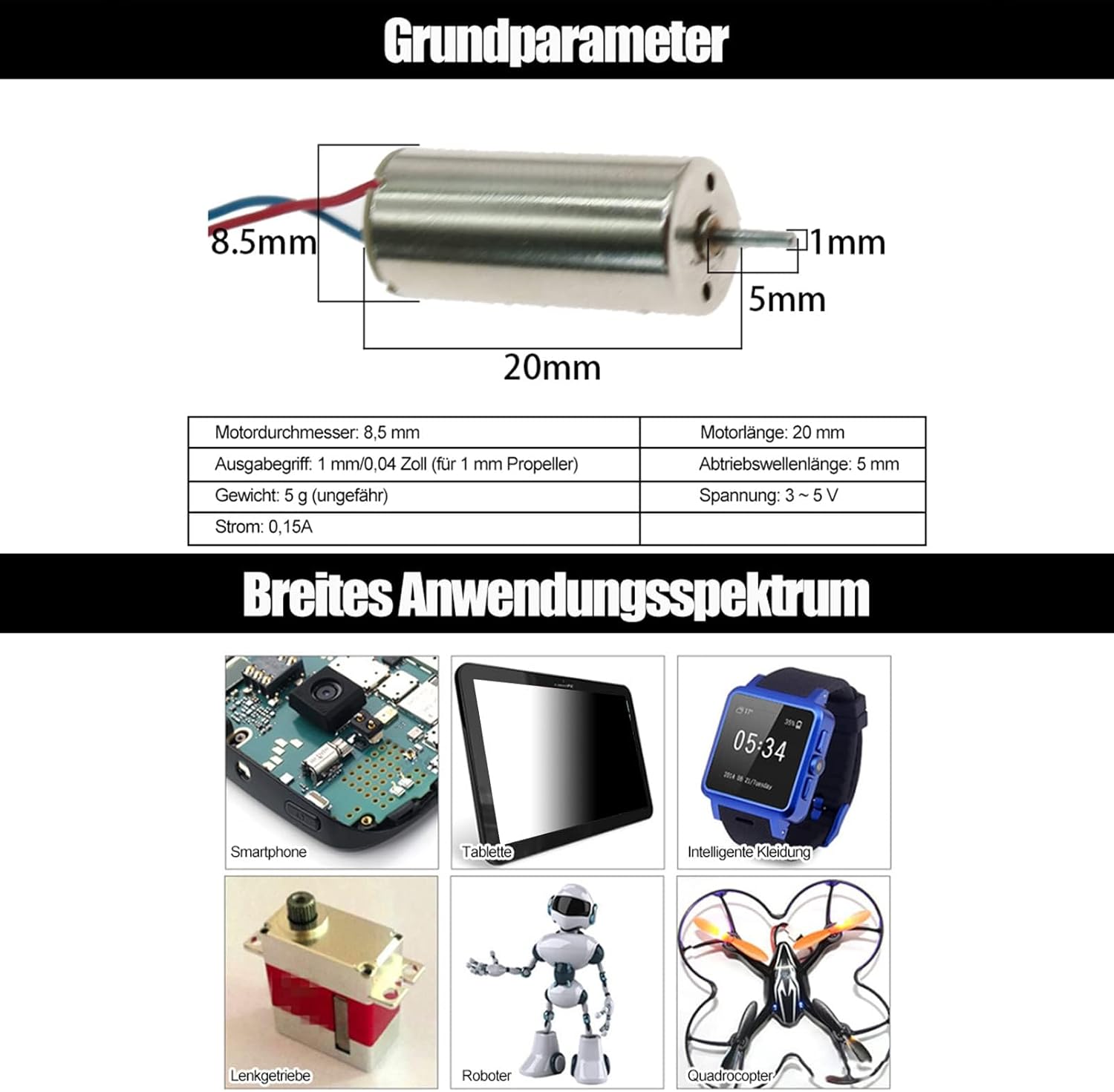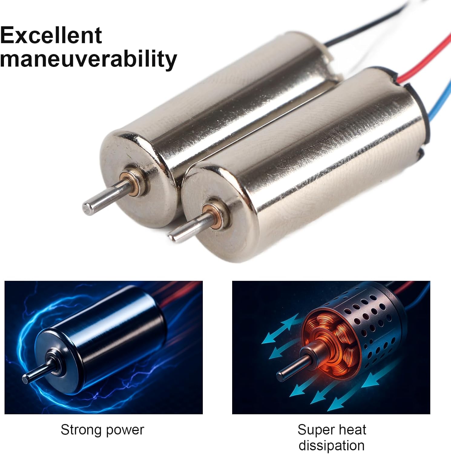 【Alta efficienza】Il motore 8520 utilizza un motore CC brushless che è più efficiente e ha una velocità maggiore rispetto ai tradizionali motori a spazzola. Il motore Hollow Cup Drone conferisce al drone prestazioni eccellenti e prestazioni di volo. 【Piccolo】 il motore quadricottero è realizzato con materiali leggeri. I motori di ricambio per microdroni sono leggeri e pesano solo 5 grammi ciascuno, il che non aggiunge troppo peso al tuo drone 【Controllo ad alta precisione】il mini motore elettrico è dotato di un regolatore elettronico di velocità e un sistema di controllo ad alta precisione, che può consentire un'uscita di potenza stabile e precisa. Il motore rc consente ai droni di svolgere compiti complessi come la fotografia ad alta quota e il movimento preciso. 【Efficienza energetica】Grazie all'elevata efficienza e al peso ridotto del motore a drone a guscio cavo, questo può raggiungere una maggiore velocità di volo e portata con un minor consumo energetico durante il volo. Motore senza fili Fori di dissipazione del calore integrati per una migliore dissipazione del calore. 【Prestazioni eccellenti】il motore mini DC ha una forte potenza e migliora la manovrabilità del tuo drone. I micromotori min possono funzionare da 3 a 5 V per consentire diverse velocità. L'anello posteriore del motore 8520 Brushed Motors è lungo 12 cm e la maniglia di uscita del motore è lunga 5 mm.