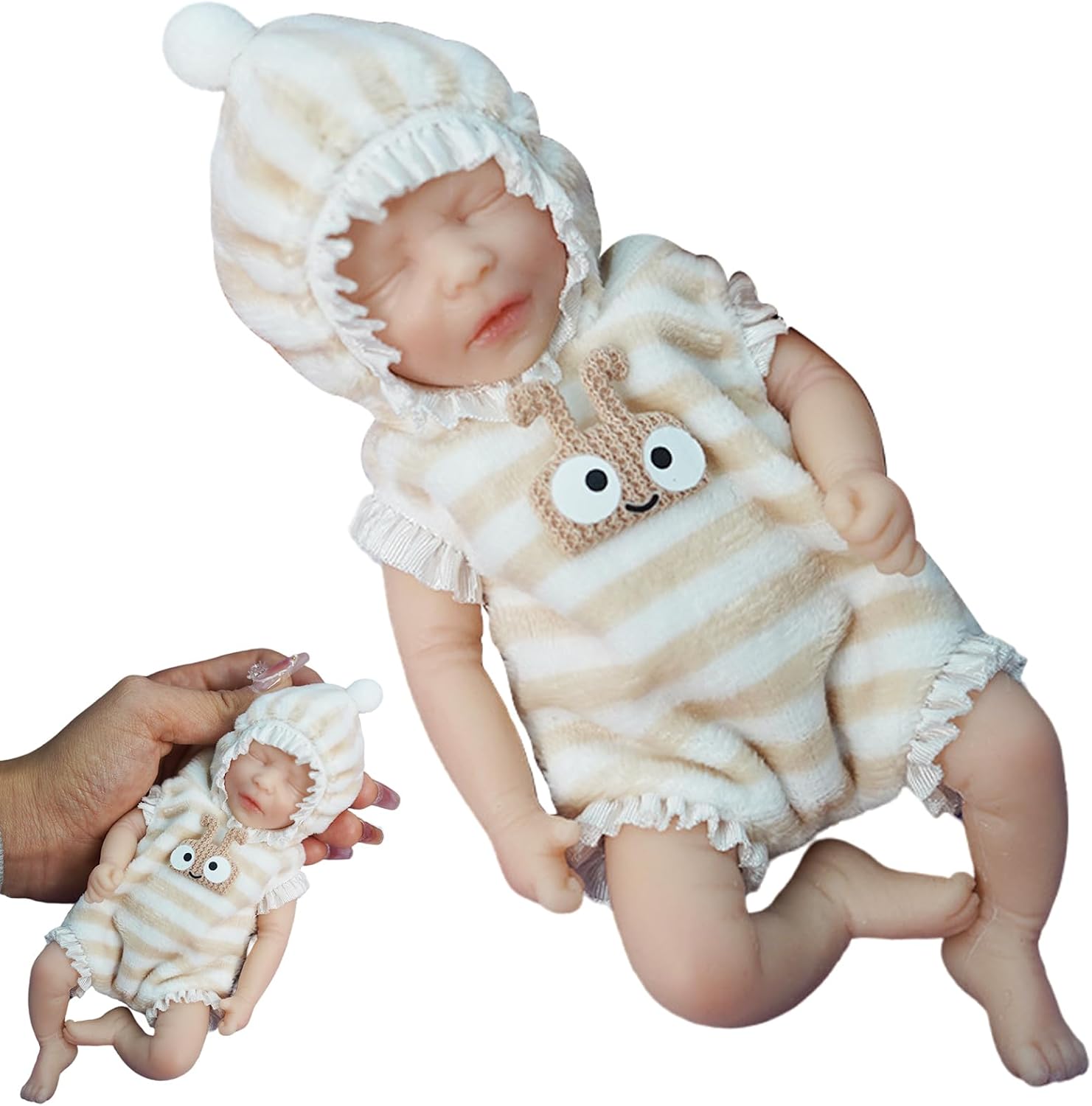 Dimensioni portatili e pronte per i regali: le dimensioni compatte da 6 pollici rendono questa bambola ideale per i viaggi, per riporla facilmente e per le piccole mani da tenere..Un pensiero premuroso, affascinante per compleanni, vacanze o feste a tema bambino. Accessori adorabili completi: ogni bambola viene fornita con un ciuccio magnetico, un biberon in miniatura e graziosi vestiti rimovibili, che migliorano il gioco di finzione e creano esperienze commoventi e educative per i bambini. Silicone morbido e flessibile: realizzata in silicone flessibile, questa mini bambola è morbida e sicura da maneggiare, coccolare e mettere in posa, perfetta per le mani dei più piccoli. Incoraggia il gioco fantasioso: progettato per promuovere la narrazione fantasiosa, lo sviluppo emotivo e le abitudini educative nei bambini piccoli, servendo anche come dolce ricordo per gli amanti e i collezionisti di bambole. Mini bambola ultra realistica: questa bambola in morbido silicone da 6 pollici è realizzata con dettagli realistici, dai delicati lineamenti del viso alle piccole dita delle mani e dei piedi, offrendo un'esperienza di gioco realistica sia per i bambini che per i collezionisti.