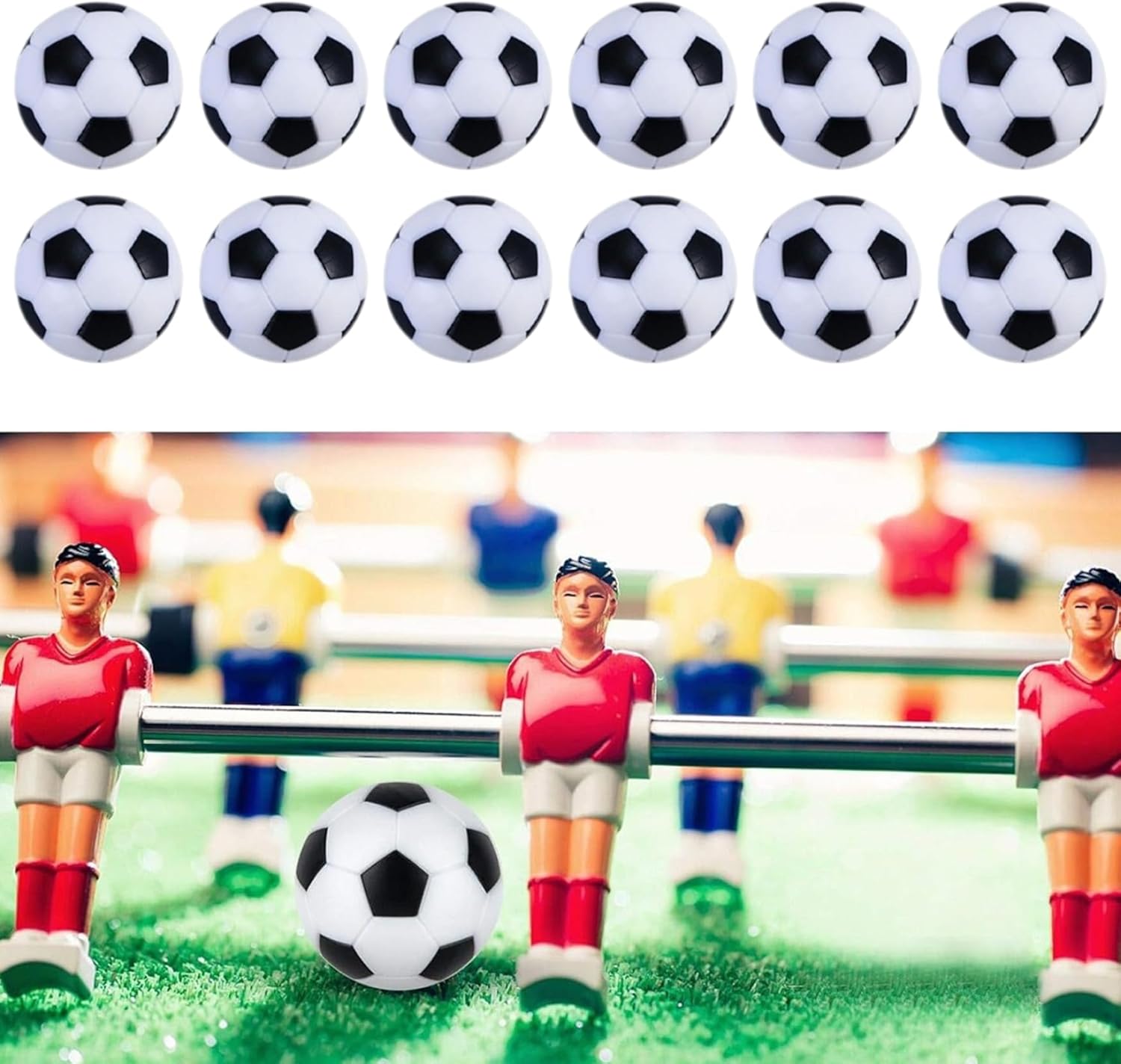 Facile da pulire e ampia compatibilità: semplice da pulire e resistente all'umidità e all'usura. Si adatta alla maggior parte dei tavoli da biliardino standard e ai modelli di tavoli da biliardo Foose per uno scambio perfetto e senza sforzo per famiglie, pub, scuole e pratiche competitive. Superficie di gioco liscia: la finitura lucida riduce l'attrito e l'aderenza, migliorando il controllo della palla e la precisione dei passaggi, quindi ogni tiro è reattivo; Ideale per i giocatori che cercano prestazioni costanti durante la partita di calcio balilla e le sessioni di allenamento. Dimensioni ed equilibrio ottimizzati: mini palline da biliardino precise da 1,3 pollici con peso e rotondità costanti per lancio, rimbalzo e controllo prevedibili; Progettato come sostituto diretto dei biliardini sulla maggior parte dei tavoli da biliardino per ripristinare la precisione del gioco. Valore sostitutivo a 12 colpi: include 12 palloni sostitutivi per tenere a portata di mano palloni da calcio extra per feste, campionati e serate in famiglia, partite interrotte, supporta configurazioni multiple e offre valore intelligente per giocatori e operatori frequenti. Costruzione ABS: realizzata in plastica ABS di alta qualità per resistenza agli urti e utilizzo affidabili; Resiste a scheggiature e crepe durante le partite veloci, così i tuoi palloni da calcio e le palle da calcio rimangono pronti per il gioco a casa, al bar o in un torneo senza frequenti sostituzioni.