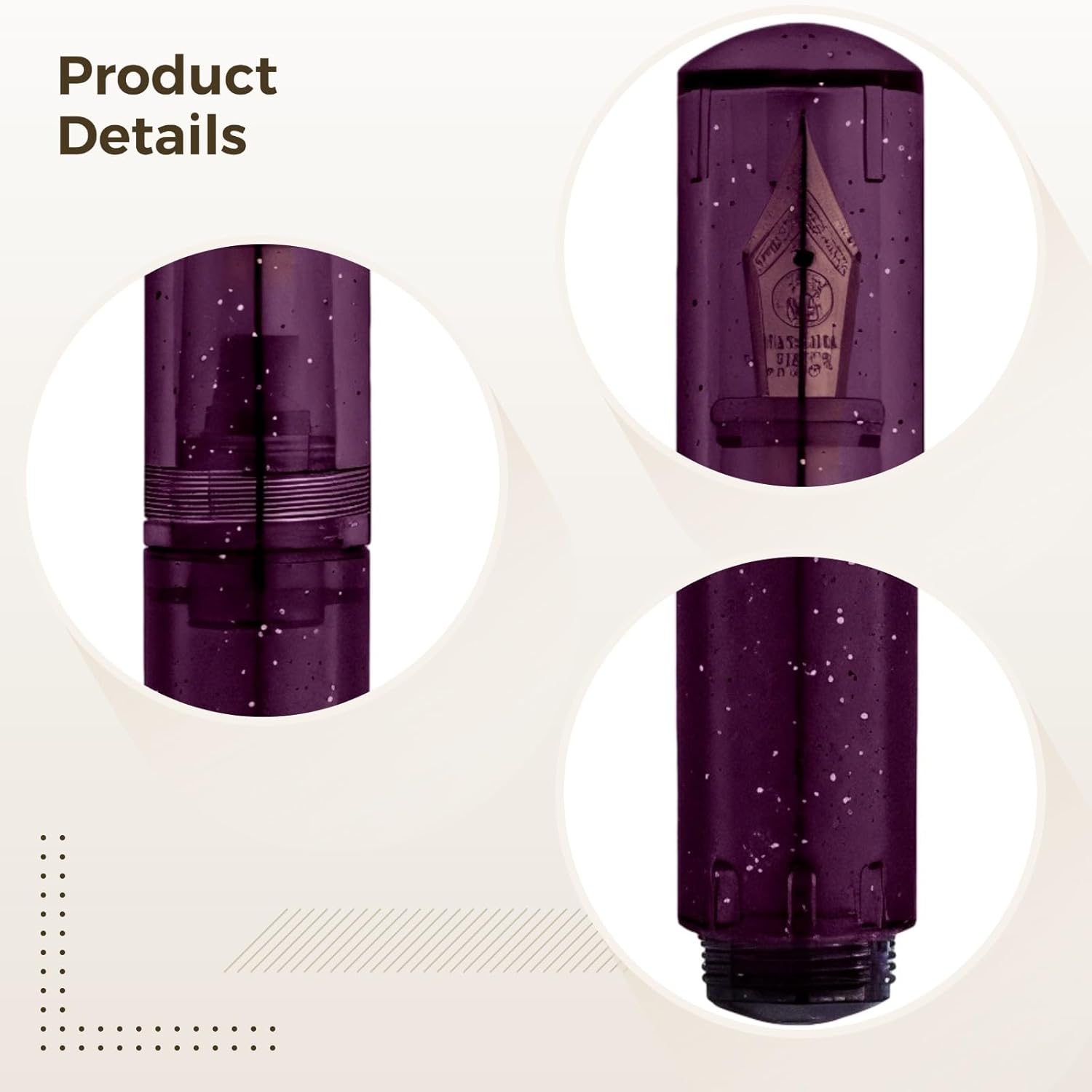 Design portatile: misura il cappuccio da 12,2 cm e 8,9 cm; una penna compatta da portare in tasca o in piccole borse Scrittura senza sforzo: la punta fine e il corpo leggero creano un'esperienza di scrittura senza interruzioni; riduce l'affaticamento durante lunghe sessioni di scrittura Due opzioni di riempimento dell'inchiostro: scegli tra pipetta e mini convertitore per una capacità di inchiostro di 2 ml; assicura un flusso di inchiostro regolare Elegante Cielo Stellato: corpo acrilico trasparente con finitura stellata per un aspetto professionale ma artistico Compatto e pratico: si adatta facilmente alla borsa o all'astuccio; ideale per studenti, professionisti o in viaggio