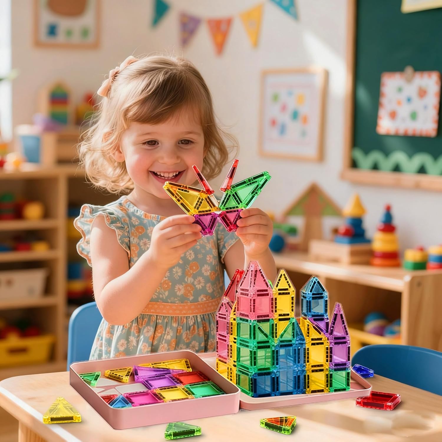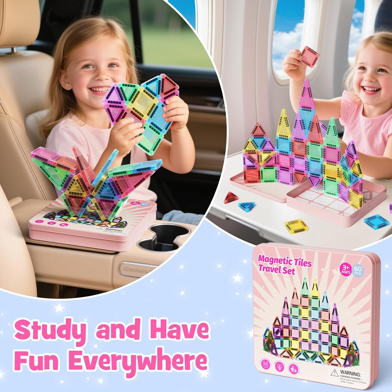 Mini gioco da viaggio con tessere magnetiche: i bambini adorano le tessere magnetiche! Questo set da 60 pezzi è contenuto in una robusta scatola metallica ed è perfetto per i viaggi in auto, in aereo e per giocare in viaggio. È compatto ma perfettamente funzionante e garantisce che tutti i pezzi siano conservati in modo ordinato e chiaro, ideale per i viaggi e l'uso a casa. Forme versatili per un divertimento senza fine: include quadrati, triangoli e pezzi unici per combinazioni di costruzione illimitate. Le dimensioni mini sono adatte alle mani dei più piccoli, ma consentono comunque di realizzare grandi costruzioni creative, perfette per giocare da soli o in gruppo. La scatola di ferro portatile è stata appositamente progettata per giocare in viaggio e si infila facilmente in una borsa o in uno zaino. Giocattolo creativo senza schermo: le attività di costruzione possono distogliere efficacemente l'attenzione dei bambini dagli schermi elettronici. I bambini possono costruire tutte le forme, i modelli e le strutture possibili, il che è ideale per intrattenerli e incoraggiare il gioco creativo senza schermo. Abbiamo incluso delle brevi istruzioni di costruzione per consentire loro di iniziare subito a giocare Design sicuro per i bambini e resistente: le nostre mini tessere magnetiche sono realizzate in materiale di alta qualità con bordi arrotondati e levigati per motivi di sicurezza, mentre i magneti integrati di alta qualità con design anti-allentamento intrattengono i bambini più a lungo Il regalo perfetto per bambini e genitori: l'elegante scatola di metallo lo rende un ottimo regalo per compleanni, festività o viaggi. Amato da genitori e insegnanti per il suo valore educativo, la sua portabilità e la sua facilità di pulizia: pronto a entusiasmare ogni bambino.