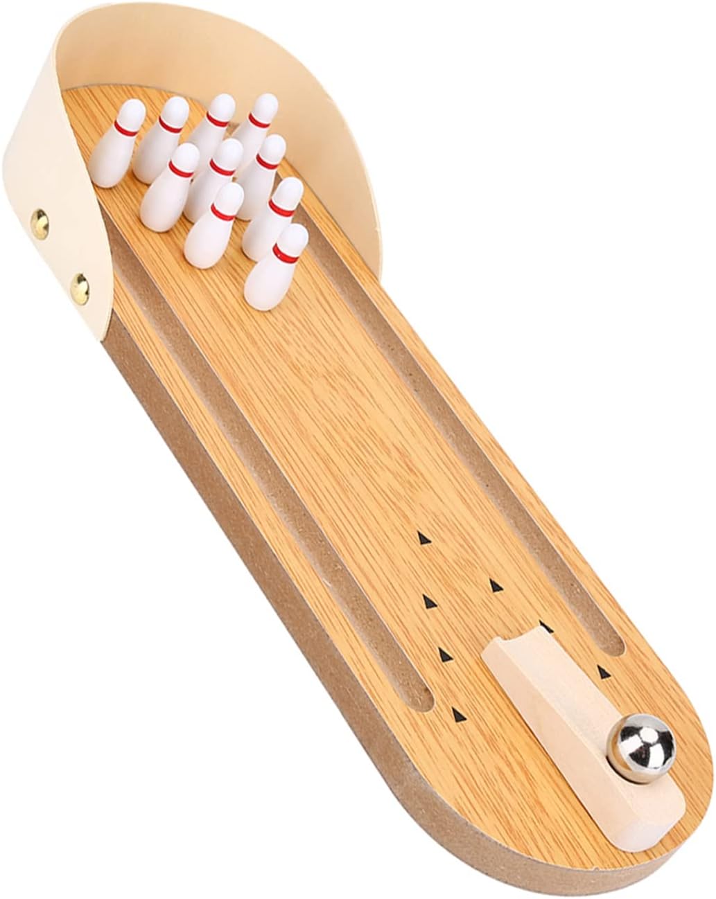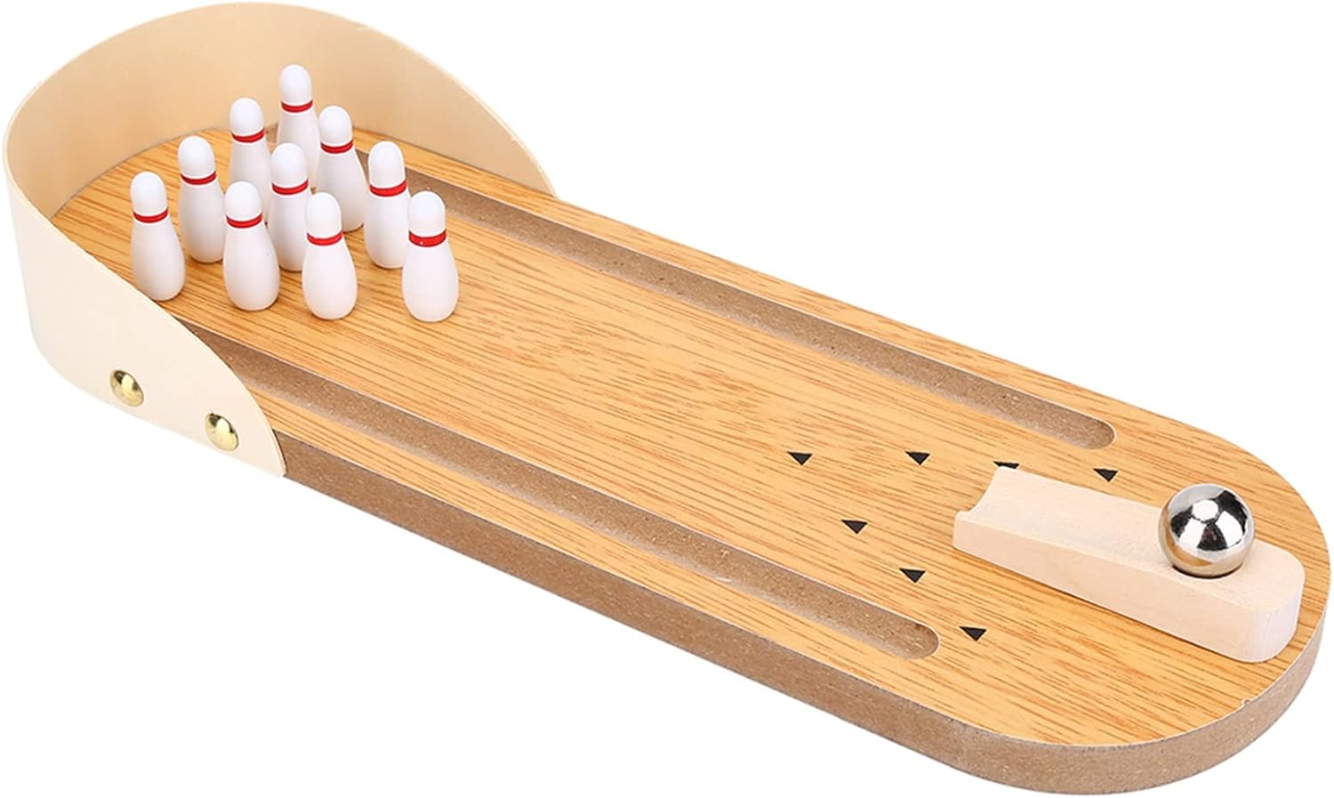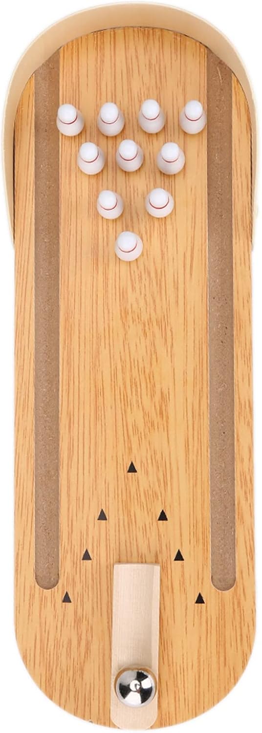 [Divertimento portatile] Goditi l'intrattenimento con questo mini set da bowling compatto e facile da trasportare. per diverse occasioni e ambientazioni. [Giocattolo impegnato] Adatto per alleviare lo stress in ufficio o intrattenere i bambini durante il tempo libero. Ottimo per tutte le età. [Uso versatile] Utilizzare come divertente giocattolo da scrivania per l'intrattenimento o come affascinante pezzo decorativo. Ideale per alleviare lo stress in ufficio o nel tempo libero. Versatile e pratico. [Materiali di alta qualità] Realizzato con questo legno di prima qualità, questo mini set da bowling garantisce sicurezza e durata per un uso duraturo. Costruzione robusta per un'esperienza di gioco affidabile. [Design realistico] Assomiglia a una vera pista da bowling con grondaie e un blocco di sicurezza per impedire la fuoriuscita dei birilli. Piastra sferica in metallo regolabile per mira di precisione. Migliora l'esperienza di gioco. [Divertimento per tutte le età] Un modo interattivo ideale per rilassarsi sia per gli adulti. Aggiunge un tocco di divertimento a qualsiasi ambiente. Fornisce un'esperienza divertente e coinvolgente per tutti.