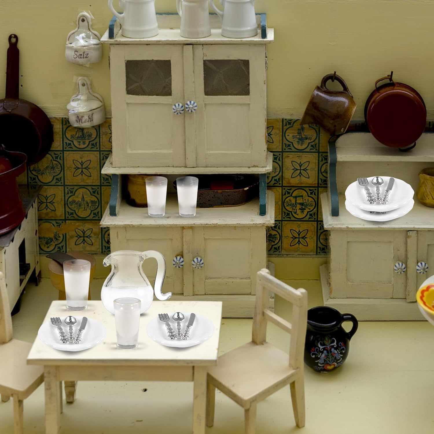 【Il set include】4 mini piatti, 4 mini coltelli, 4 mini forchette, 4 cucchiaini, 4 tazze per il latte e 1 brocca per il latte, quantità sufficiente per decorare la tua mini casa delle bambole e offrirti un divertimento senza fine . 【Materiale di alta qualità】Realizzati con materiali sicuri e affidabili come ceramica e lega, questi piccoli accessori per la casa delle bambole sono robusti e durevoli e possono portare fascino e realismo al tuo mondo in miniatura. 【Squisito e carino】I nostri accessori da cucina per la casa delle bambole sono molto piccoli e carini, con un design raffinato e una trama chiara, sembrano molto realistici, come una versione in miniatura della cosa reale, adatti per la decorazione della cucina della casa delle bambole, perfetti per migliorare la scena della tua casa delle bambole. 【Incoraggia la creatività】I nostri piccoli accessori per la casa delle bambole sono più di un semplice intrattenimento. Le attività di gioco di ruolo possono incoraggiare lo sviluppo immaginativo ed emotivo e migliorare le abilità comunicative e linguistiche. Giocare con questi accessori promuove anche la fiducia con genitori, fratelli e amici, stimolando al tempo stesso la creatività e le capacità di pensiero critico attraverso il gioco fantasioso. 【Ampi usi】Non adatti solo per decorare le case delle bambole, i nostri accessori in miniatura hanno anche una vasta gamma di usi. Possono essere utilizzati come mini oggetti da collezione, decorazioni o anche come oggetti di scena per splendide foto. Possono migliorare l'estetica generale della tua casa e far risaltare le tue foto sulle piattaforme di social media.