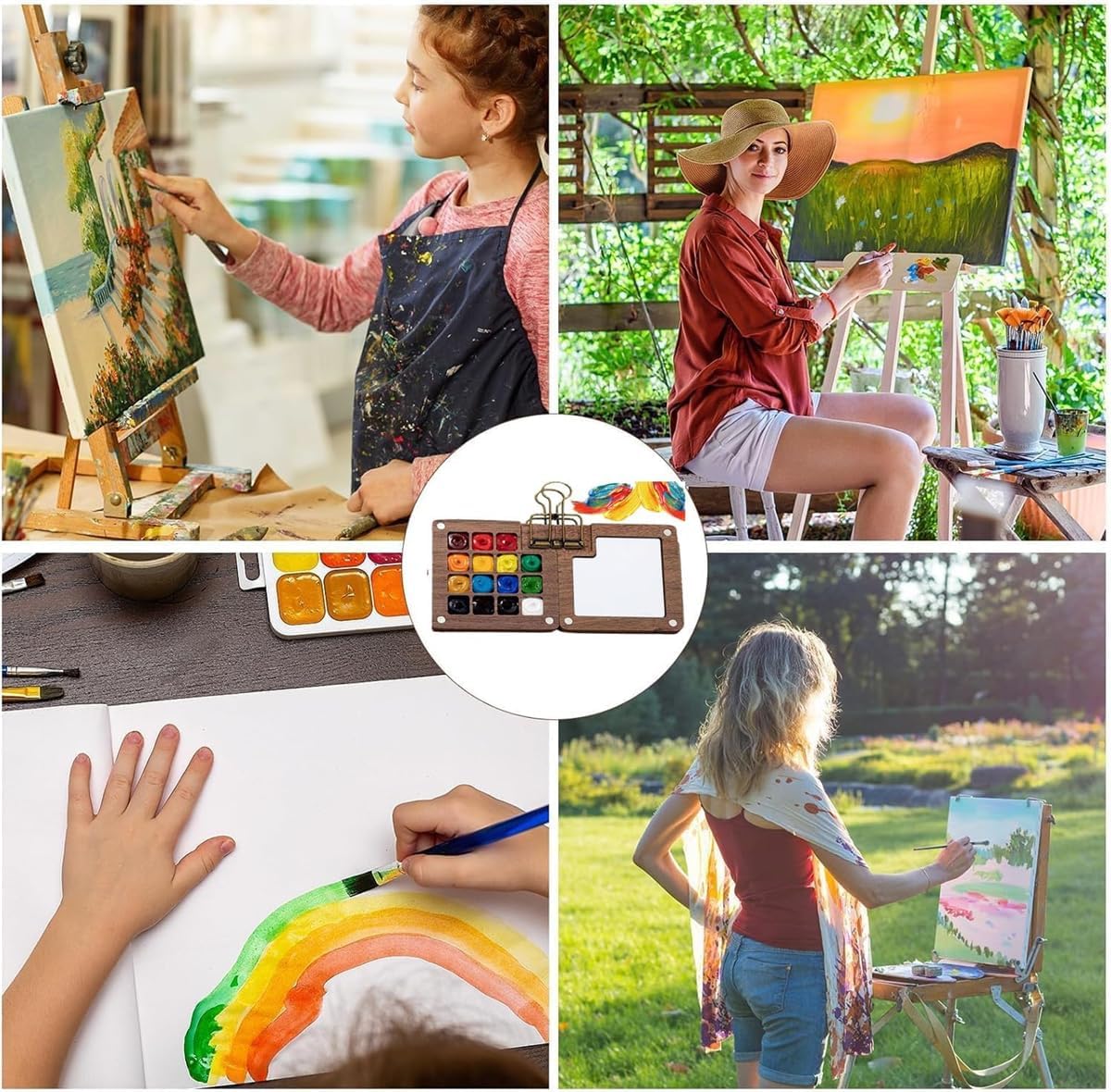 Portatile tascabile: due misure disponibili (8 colori sono circa 6 cm quadrati, 15 colori sono circa 14 × 5,8 cm), leggero e facile da trasportare, facile da viaggio, creazione all'aperto o uso domestico. Un set completo di strumenti professionali: il set contiene una tavolozza di noce, un album da disegno, una clip in metallo e pennelli di alta qualità e inizia la creazione sempre e ovunque senza preparazione aggiuntiva. Materiale di alta qualità: la tavolozza di noci è resistente ed elegante e si abbina al design dell'area di miscelazione dei colori; il pennello è liscio e fornisce pennellate delicate, adatto per principianti e pittori professionisti. Scatena il potenziale artistico: la struttura compatta contiene un sistema di pittura completo, che si tratti di viaggi, aule o documenti quotidiani, cattura istantaneamente l'ispirazione e crea un momento creativo tranquillo. Illumina l'estetica della vita: adatto per gli amanti dell'arte, studenti e viaggiatori, come regalo premuroso o auto-ricompensa, ispira la creatività e consente all'arte di essere integrata in ogni scena.
