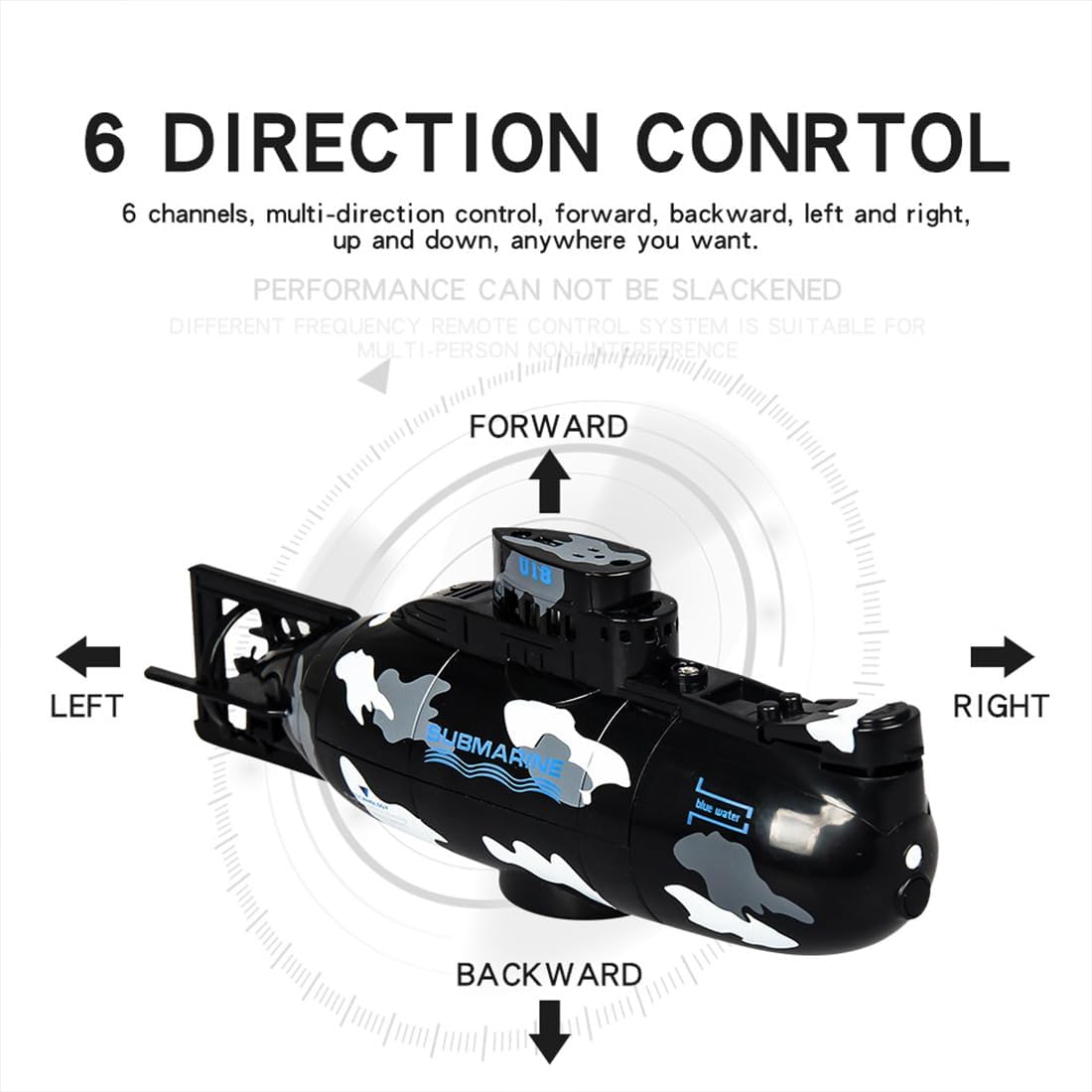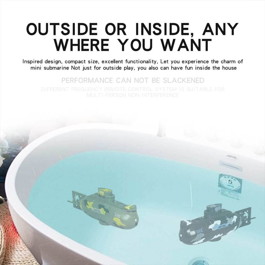 Design compatto e portatile: il mini sottomarino presenta un corpo leggero e aerodinamico, che lo rende facile da trasportare e perfetto per avventure acquatiche interne o esterne RC ad alta frequenza: dotato di un sistema remoto stabile a lungo raggio per un controllo preciso e reattivo, consentendo un funzionamento regolare su piscine, vasche da bagno o acquari Immersione con un tasto con sicurezza per il rilevamento dell'acqua: Immergiti in azione con una sola pressione. Il sistema di rilevamento dell'acqua integrato spegne automaticamente il sub quando viene sollevato dall'acqua, garantendo un uso sicuro e una maggiore durata della batteria Prestazioni potenti e struttura robusta: guidato da motori ad alta efficienza per una forte propulsione, e costruito con un robusto guscio che resiste a piccoli urti e collisioni durante il gioco Elegante e alla moda con opzioni di doppio colore: presenta un design futuristico a testa rotonda che riduce la resistenza e una vivace finitura a doppio colore. Scegli tra due fantastiche colorazioni per un'azione subacquea straordinaria