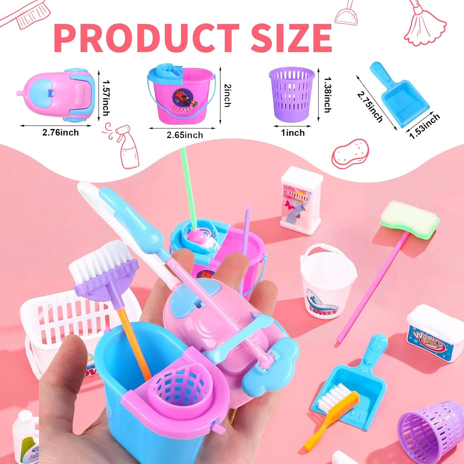 ✨ Il set contiene: riceverai 21 accessori per casa bambole (colori casuali), tra cui 1 scopa in miniatura, 1 secchio per scopa, 1 mocio mini, 1 bidone della spazzatura, 1 aspirapolvere in miniatura, 1 paletta, 1 secchio in miniatura, 1 cestino in miniatura, 1 appendiabiti in miniatura, 3 spazzole, 4 grucce miniatura, 5 detersivi. Quantità abbondante e stili ricchi, che possono decorare perfettamente la tua casa delle bambole. ❤️Design raffinato: gli miniature casa delle bambole accessori sono carini, realistici, piccoli e raffinati e sono perfetti per creare mini scene con ricchi dettagli. Puoi utilizzare i nostri decorazione casa delle bambole per creare magiche scene di pulizia per gli elfi e rendere la tua decorazione più vivida e divertente. 💎Materiali di qualità: i nostri accessori in miniatura per casa delle bambole sono realizzati in plastica di alta qualità, sicuri e durevoli, comodi al tatto, colori brillanti e uso a lungo termine. La superficie di ogni accessorio è lucidata per renderla liscia e priva di bave, permettendo ai bambini di giocare in tutta sicurezza. 💡Ampio utilizzo: i nostri set di mobili per casa delle bambole sono perfetti per Natale, decorazioni in miniatura per decorare porte degli elfi, case delle bambole o altri mondi a tema. Può anche essere abbinato ad altri ornamenti degli elfi, crea le tue scene uniche per mostrare la tua creatività e immaginazione. 🎁Regali ideali: i nostri accessori elfo di natale sono un ottimo regalo per bambini, amici e familiari in occasione di compleanni, festa dei bambini, Natale, Ringraziamento, Pasqua, per provare il divertimento di decorare il mondo in miniatura e da condividere con gli amici, giocare insieme per migliorare i sentimenti.