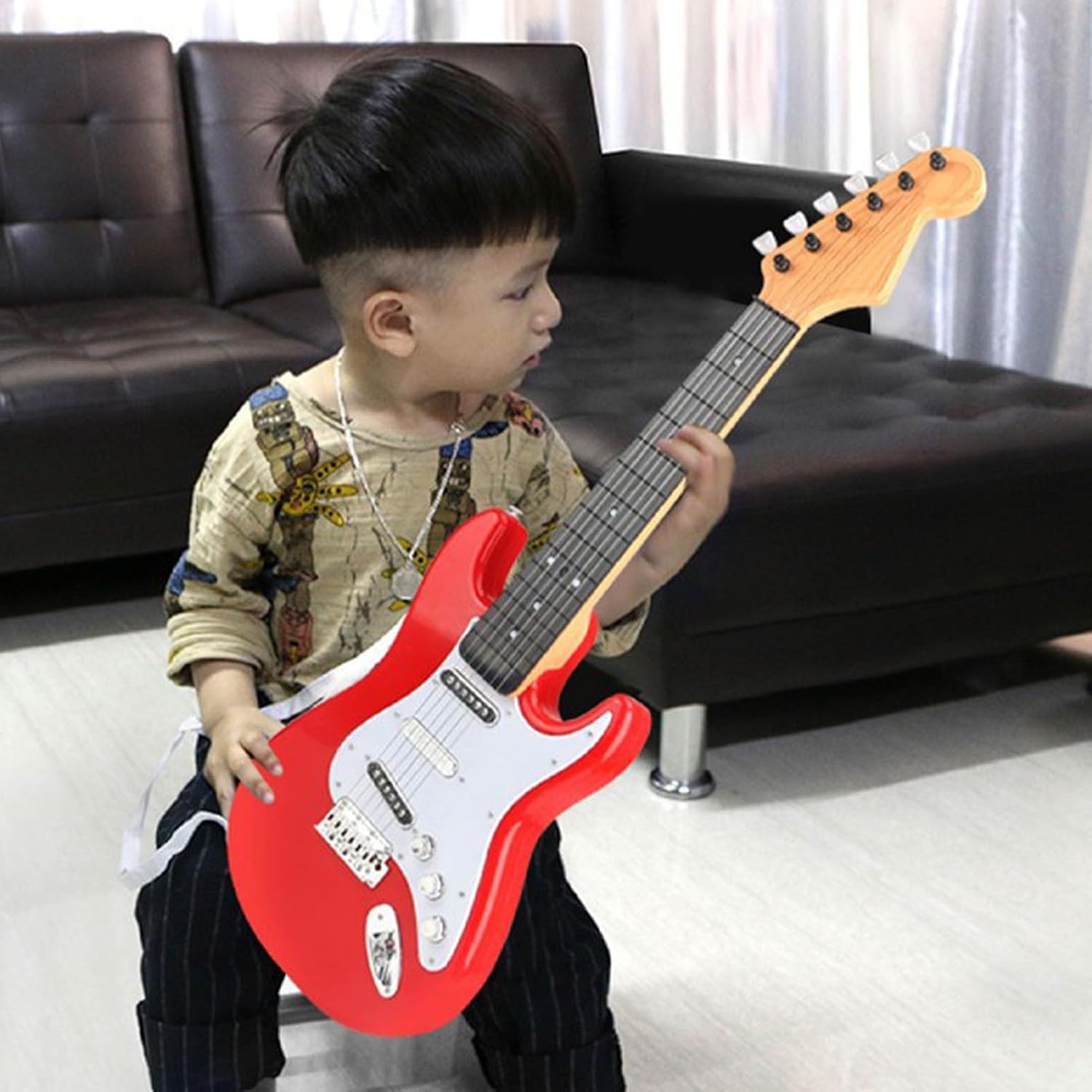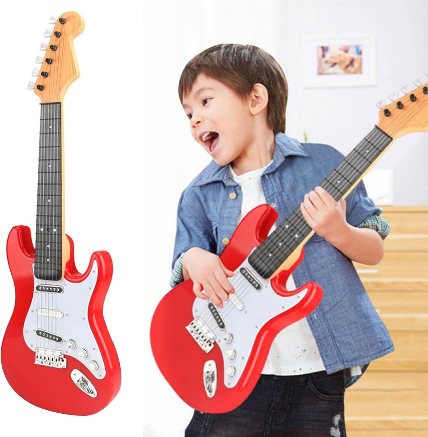[Musica di] Nourish Your Child's Love for Music grazie a questo giocattolo di chitarra elettrica per i bambini accattivanti. [Potenziale infinito] presenterà un mondo di solide possibilità di lettura musicale, modalità di accordo e funzioni di registrazione per comporre melodie originali. [Aspetto autentico della chitarra] Ottieni la vera sensazione di un chitarrista con un design realistico e accattivante di questo giocattolo elettrico. [La musica ovunque, in qualsiasi momento] sfrutta il comfort di trasportare questo strumento alla luce delle piume per suonare e dividere la musica ovunque si trovi. Questo giocattolo di chitarra [costruito fino alla fine] da materiali plastici sostenibili fornisce un gioco equilibrato e garantisce un piacere sicuro per i bambini.