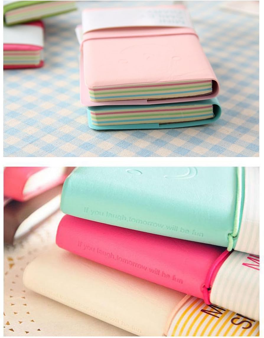 Contenuto della confezione: 5 mini blocco note con faccina, ogni blocco note include 96 pagine in totale. Perfetto per promemoria, voci di diario, scarabocchi, ecc. La custodia in similpelle in puro colore rende il tuo laptop più elegante e conciso, un bel regalo per i tuoi bambini, amici e familiari. Design unico con un elastico attorno al tuo notebook che offre maggiore comodità nella gestione dei tuoi laptop. Pagine a righe con pagine colorate bianche e gialle all'interno, il mini diario con faccine ti rende facile da portare e puoi scrivere ovunque e in qualsiasi momento. Le simpatiche immagini dei cartoni animati di Smiley ti danno il buon umore mentre scrivi / pensi e incoraggi te / i tuoi figli a studiare duramente.