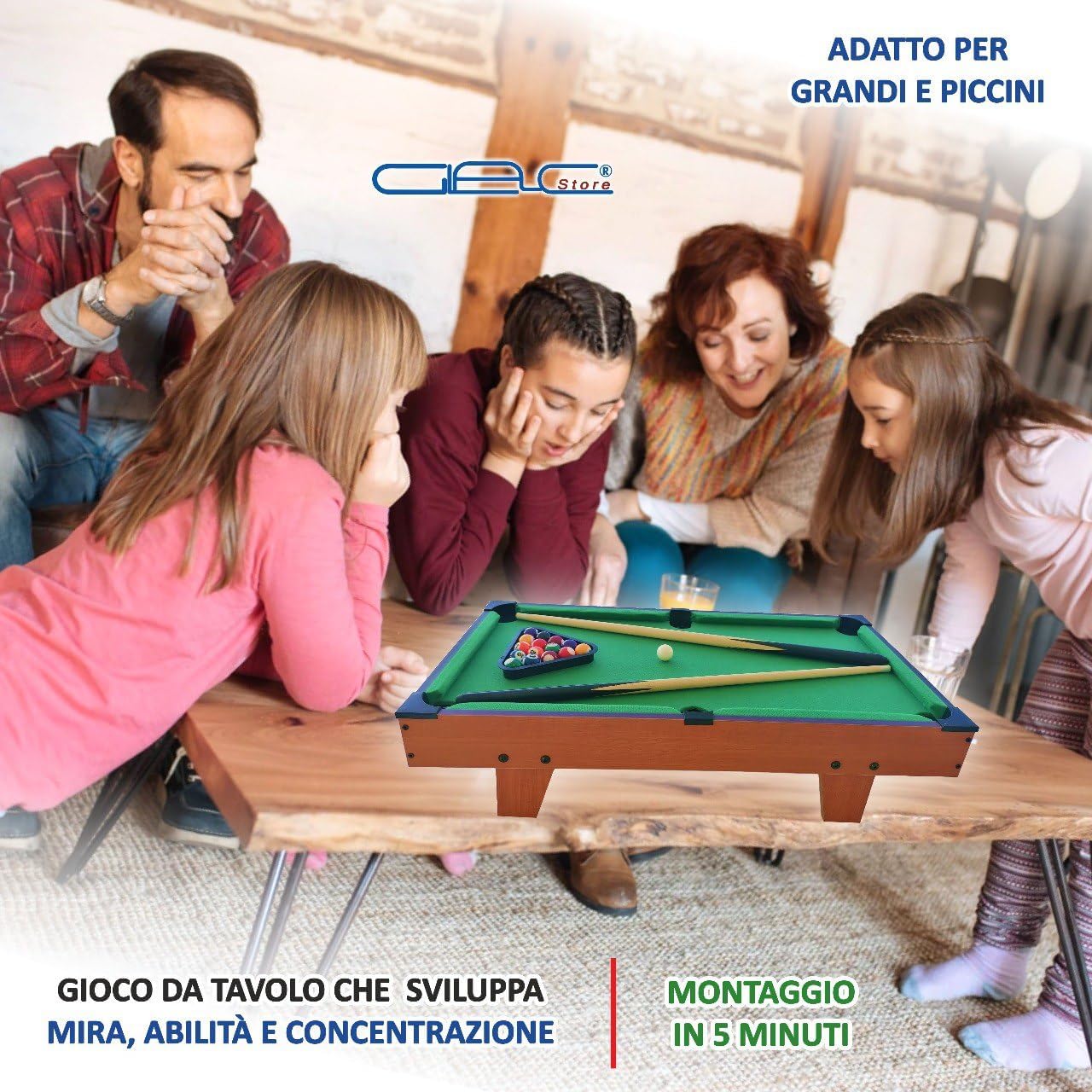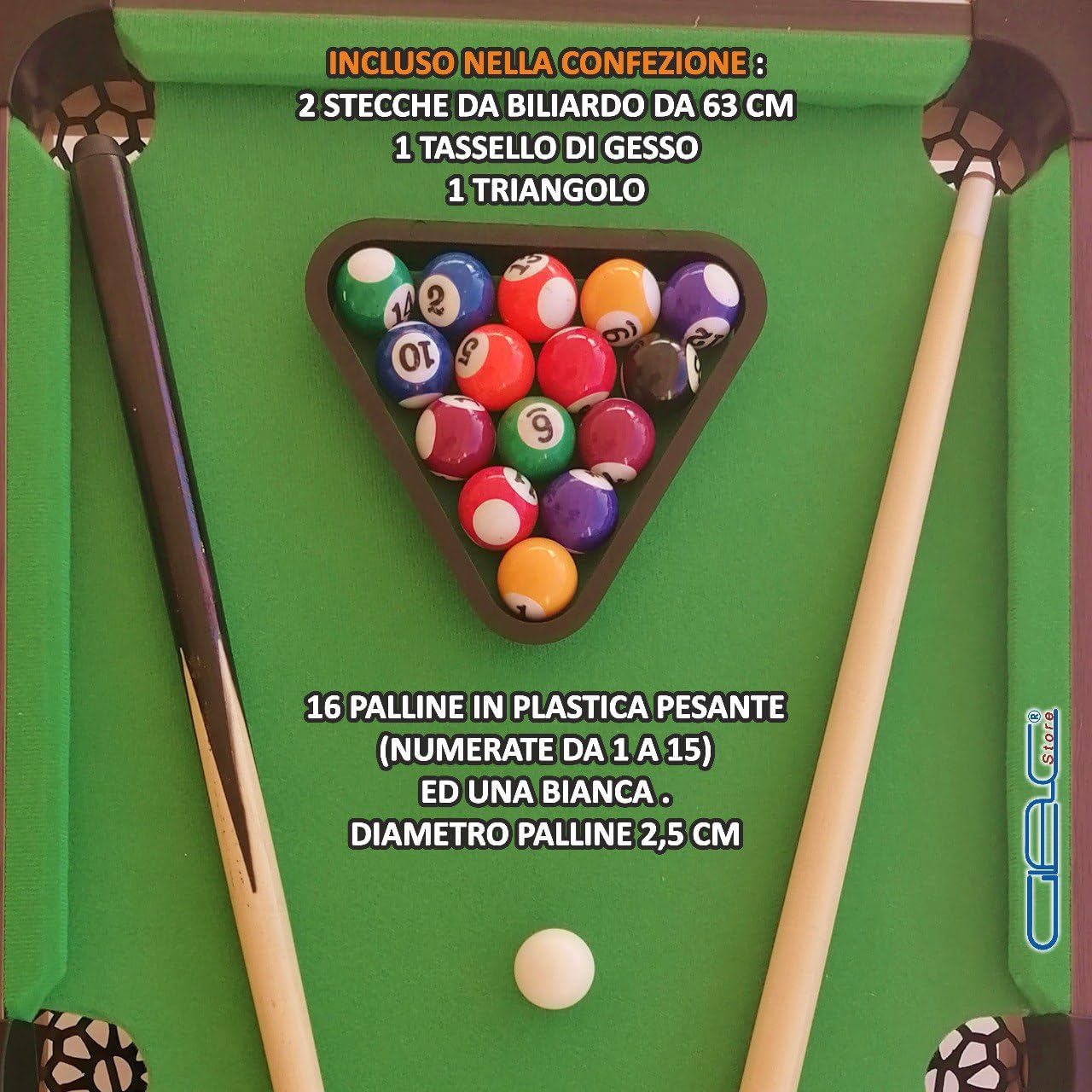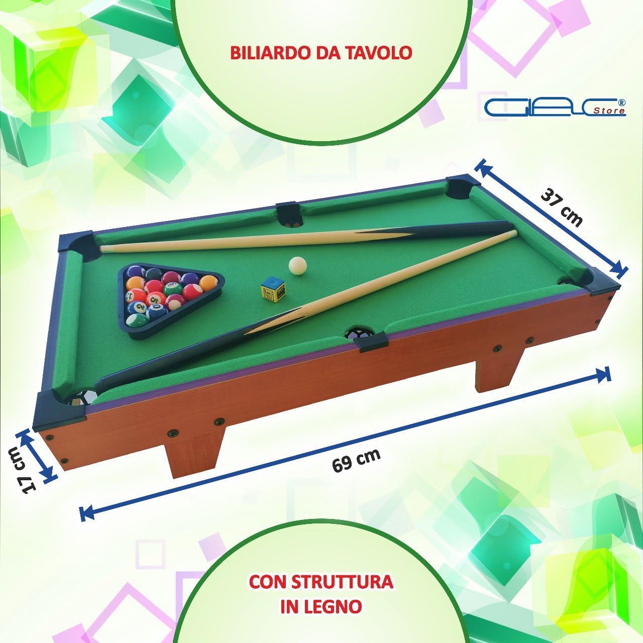 - CONVIVIALE - Porta il divertimento del biliardo carambola ovunque tu voglia! Questo mini tavolo da biliardo è perfetto per intrattenere amici e famiglia. Con tutti gli elementi di un tavolo da biliardo classico. - MOBILE - Posizionalo su qualsiasi supporto e a qualsiasi altezza desideri! Gioca in vacanza, in ufficio o a casa, sia che tu sia in piedi o seduto, con i tuoi bambini e amici. - ACCESSORI - Completo come un tavolo da biliardo tradizionale, questo mini biliardo include un set di 16 palle (compresa una bianca), 1 triangolo, 1 gesso e 2 stecche. - REALISTICO - Il tappeto di feltro verde di questo tavolo da biliardo americano garantisce un rotolamento eccellente e un gioco confortevole. Prova l'autentica esperienza del biliardo con il minimo ingombro! - CARATTERISTICHE - Materiale: MDF effetto legno | Copertura in feltro verde - Dimensioni: Lunghezza: 69 cm, Larghezza: 36 cm, Altezza: 17 cm - Garanzia di 2 anni del marchio Glac Store. Foto e video di proprietà, duplicazione vietata.