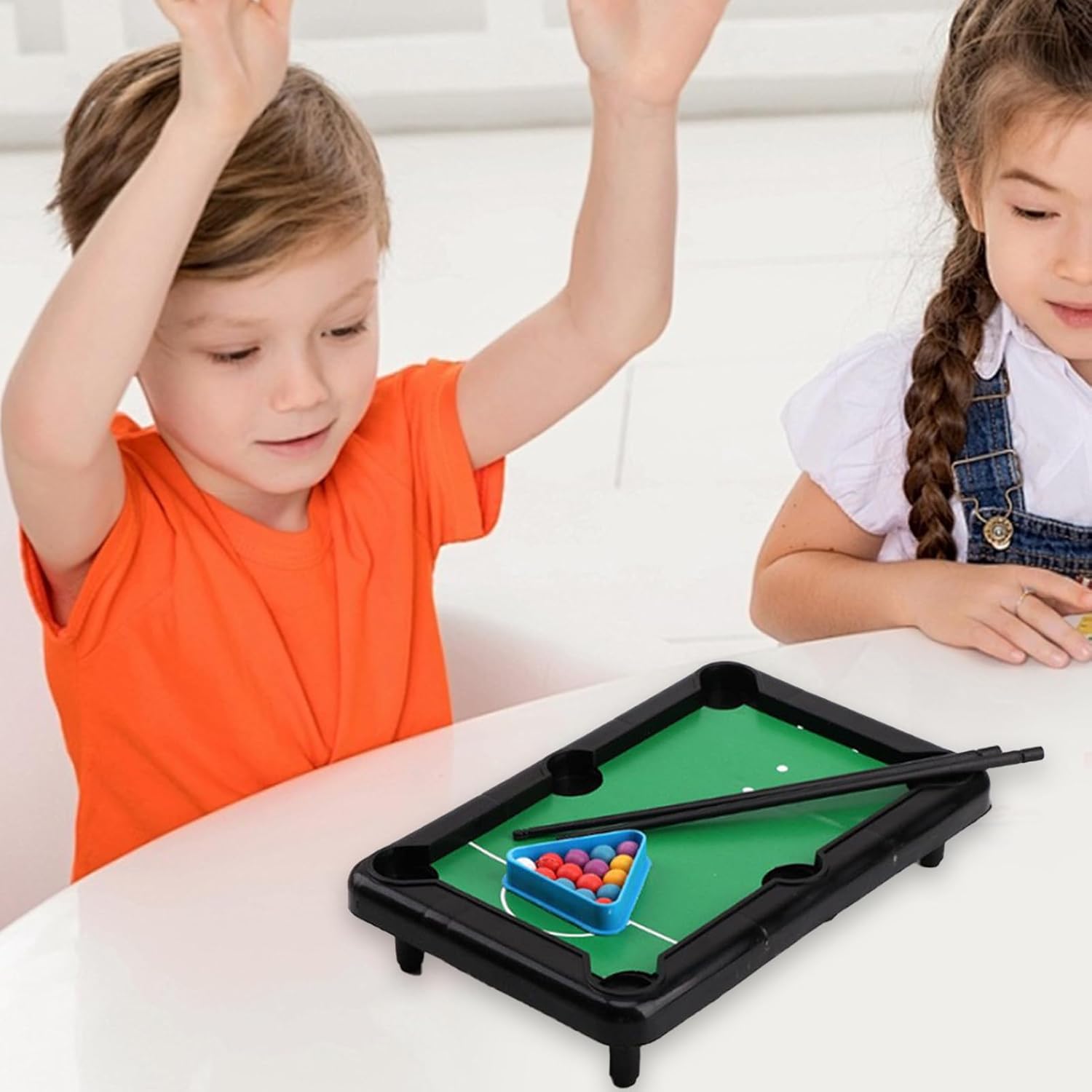 Prodotti ben fatti: il nostro mini tavolo da biliardo è progettato in modo innovativo utilizzando materiali PP di alta qualità che lo rendono resistente, robusto e resistente all'usura. L'intricata lavorazione e i dettagli intelligenti completano il tuo stile e portano divertimento a casa tua, offrendo più intrattenimento per amici e familiari. Conveniente per essere trasportato: goditi un mini gioco da tavolo da biliardo con la tua famiglia e i tuoi amici, ovunque tu sia. Questo mini tavolo da biliardo ha un aspetto squisito e un design per il risparmio spaziale, che lo rende facile da trasportare e conservare. È una migliore attività di intrattenimento per feste, campeggio o giorni di pioggia. Billiadi realistici: indulgere in una esperienza di biliardo con questo mini tavolo da biliardo che presenta dettagli intricati e imita il vero gameplay. Sperimenta il brivido del gioco senza dover scendere a compromessi sullo spazio o sull'autenticità. Usi multifunzionali: questo mini gioco da tavolo da biliardo ti consente di divertirti con la tua famiglia o i tuoi amici, sviluppare il pensiero strategico e il coordinamento degli occhi della mano, approfondendo l'interazione e le relazioni genitore-figlio. Educazione divertente: questo mini tavolo da biliardo non è solo una migliore fonte di intrattenimento, ma anche un modo per acquisire conoscenze e abilità. Puoi goderti un gioco da tavolo divertente con i tuoi amici o familiari, migliorando al contempo le tue capacità di battuta e imparando le regole di base dei biliardi.