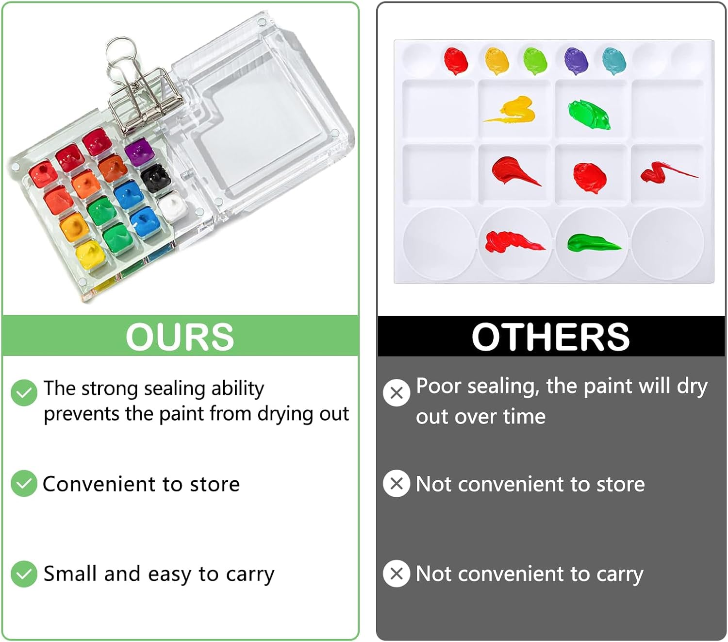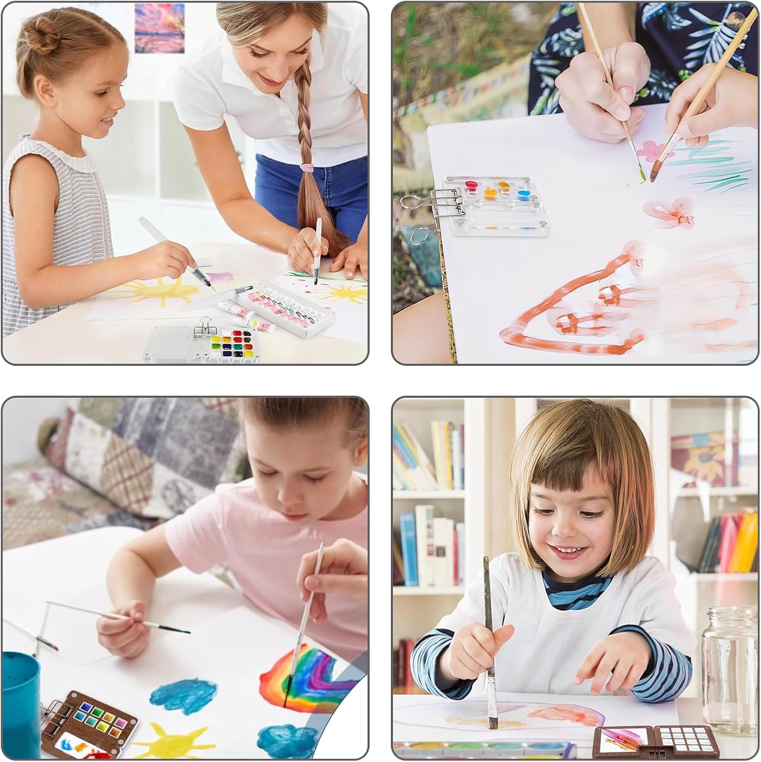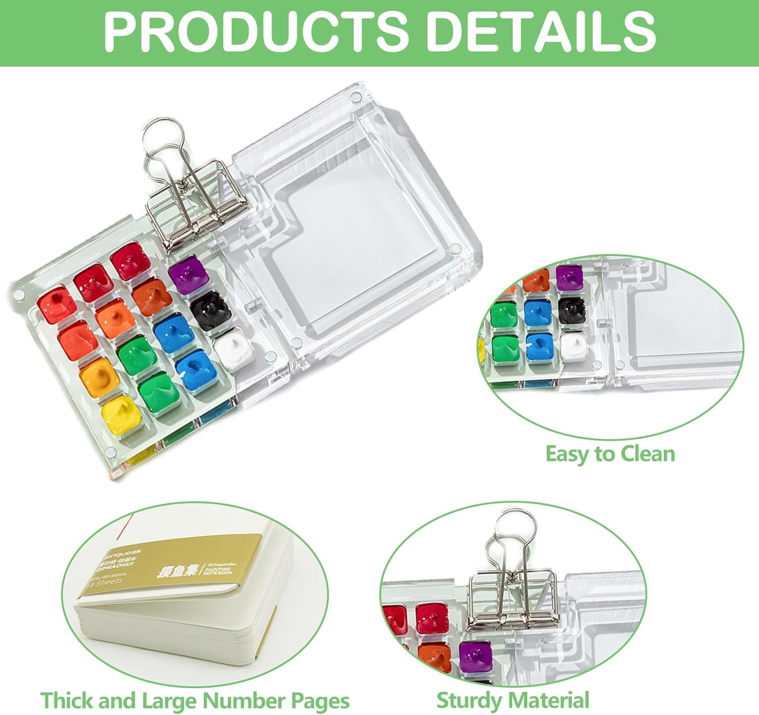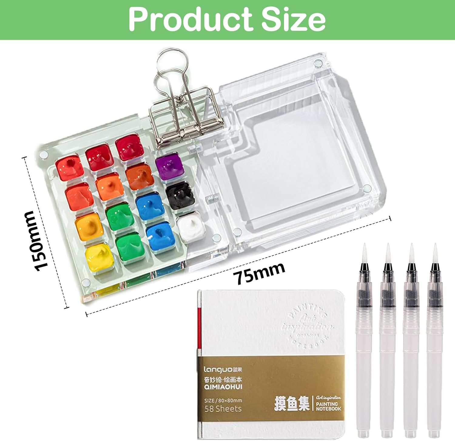 Design compatto: il nostro set di acquerelli da viaggio è una versione miniaturizzata di un kit di tavolozze di acquerelli standard. Dispone di 15 zone di posizionamento del colore e una zona di miscelazione per la vernice, oltre a quattro penne ad acqua e un libro da disegno portatile. Questo design compatto ti assicura di essere sempre pronto a creare, indipendentemente da dove ti porta l'ispirazione. Materiale durevole: il nostro kit di pittura in miniatura include una tavolozza con 15 griglie, un libro da disegno portatile e 4 penne ad acqua. La tavolozza è realizzata in robusto acrilico per garantire che non si danneggi o sbiadisca facilmente. Nel frattempo, le penne ad acqua sono dotate di una comoda punta a pennello che non danneggia la carta. L'intero kit di pittura Nano Palette è leggero, portatile e facile da inserire in qualsiasi bagaglio a mano. 【Facile da usare】 La nostra tavolozza di acquerelli da viaggio offre un set completo degli strumenti di pittura più essenziali. Basta riempire le aree di posizionamento della vernice sulla tavolozza a 15 griglie con i colori di vernice necessari e utilizzare le penne ad acqua per mescolarli nell'area di miscelazione. Quindi puoi dipingere gli splendidi paesaggi e le viste sull'album da disegno portatile. Non importa dove ti trovi, puoi creare la tua opera d'arte con facilità. Uso versatile: questo set di acquerelli tascabile è perfetto per il campeggio all'aperto, i viaggi in famiglia, gli schizzi di viaggio personali, gli schizzi e i graffiti. È uno strumento di pittura portatile adatto non solo agli artisti professionisti, ma anche agli studenti ordinari e agli appassionati d'arte. Con questo kit portatile per acquerelli, puoi far volare la tua creatività sulla punta della penna e conservare per sempre tutti i momenti più belli nell'album da disegno. Cosa ottieni: con questo kit di pittura con nano-tavolozza, riceverai una tavolozza in miniatura con 15 griglie, 4 penne ad acqua e un quaderno da disegno portatile per tutte le tue esigenze artistiche.