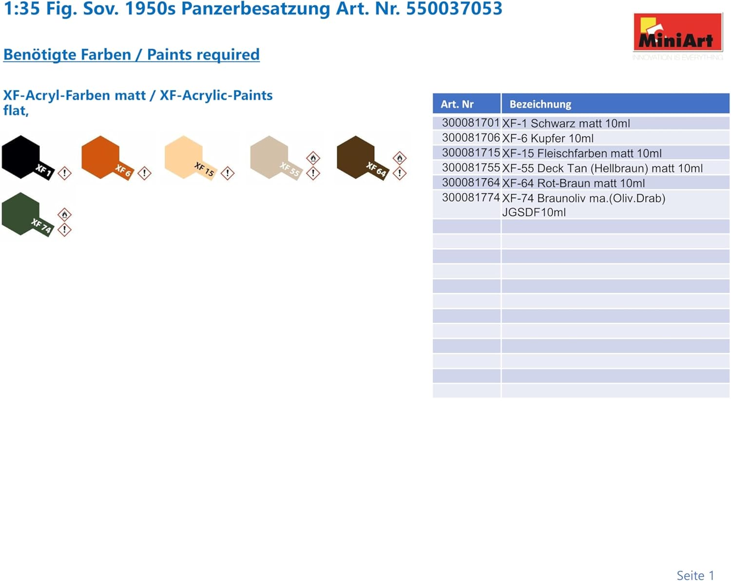 Kit modello dettagliato di Mini Art in scala 1:35. Il kit dettagliato e di alta qualità di Mini Art deve essere assemblato da solo. Il montaggio indipendente è accompagnato da istruzioni di montaggio passo passo o illustrate. Le istruzioni di montaggio sono ovviamente incluse nella fornitura. Le singole parti che si adattano perfettamente devono essere assemblate in base alle istruzioni di montaggio. Le parti possono essere verniciate secondo le proprie idee. Attrezzi, colla e vernici non sono compresi nel kit in plastica. Questi devono essere acquistati facoltativamente.