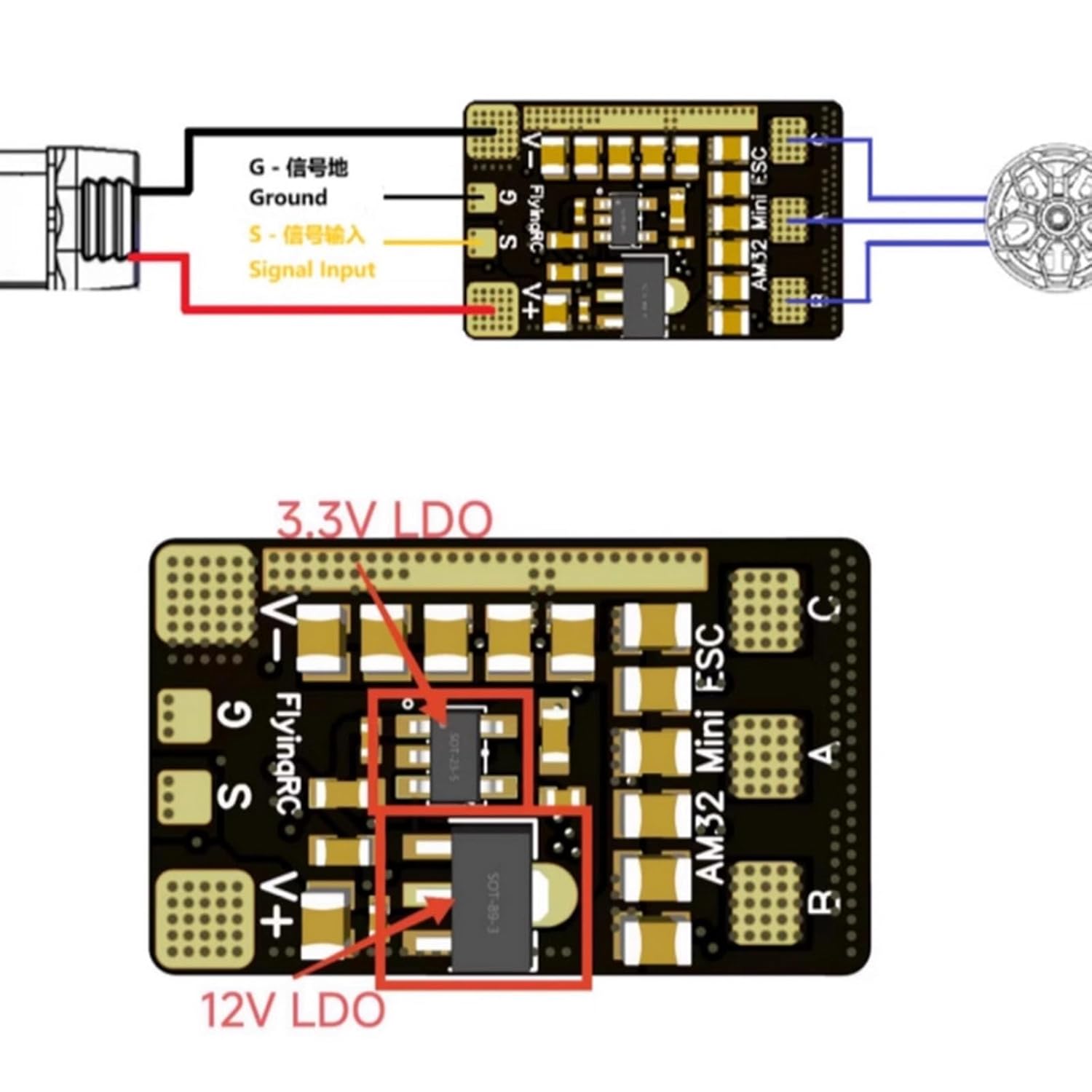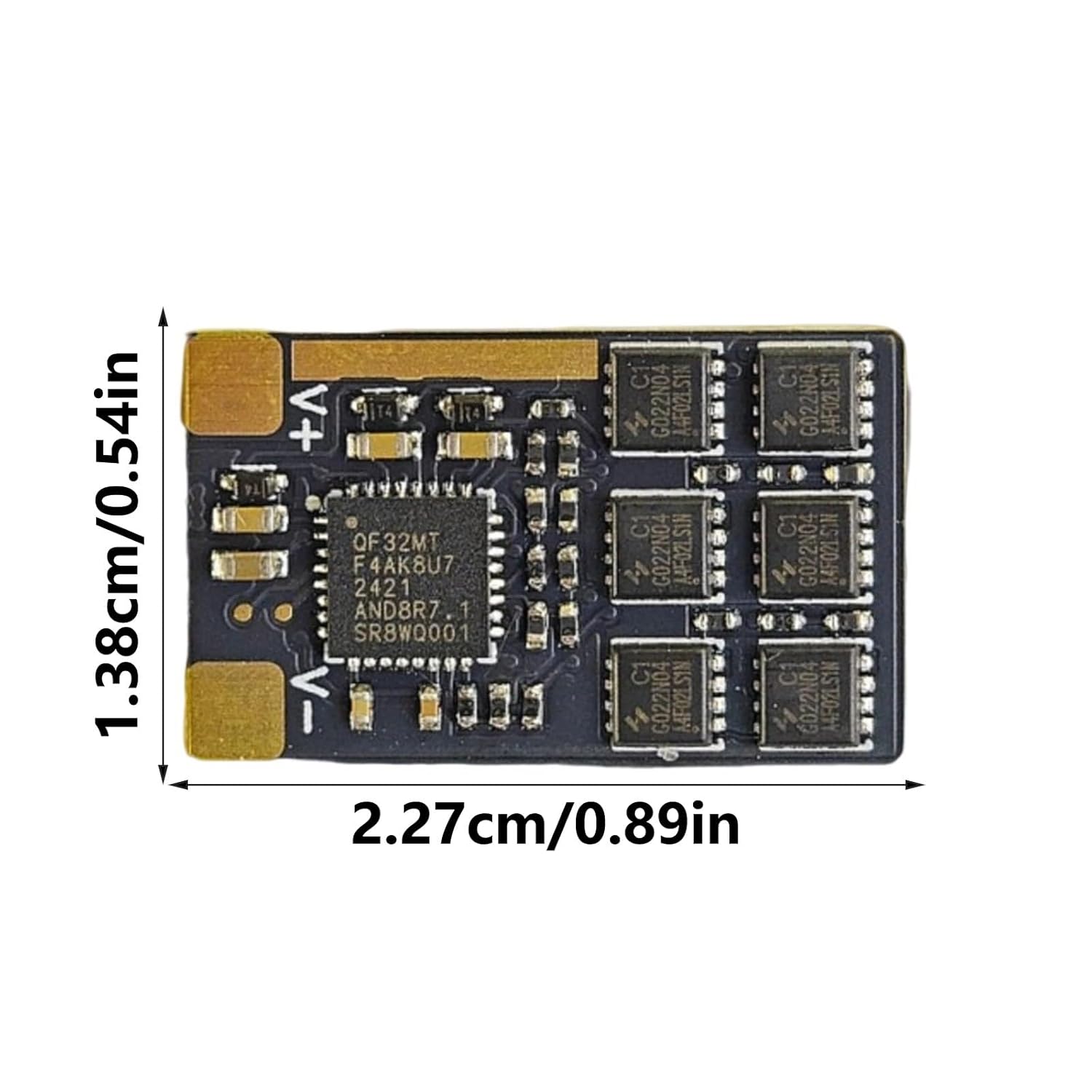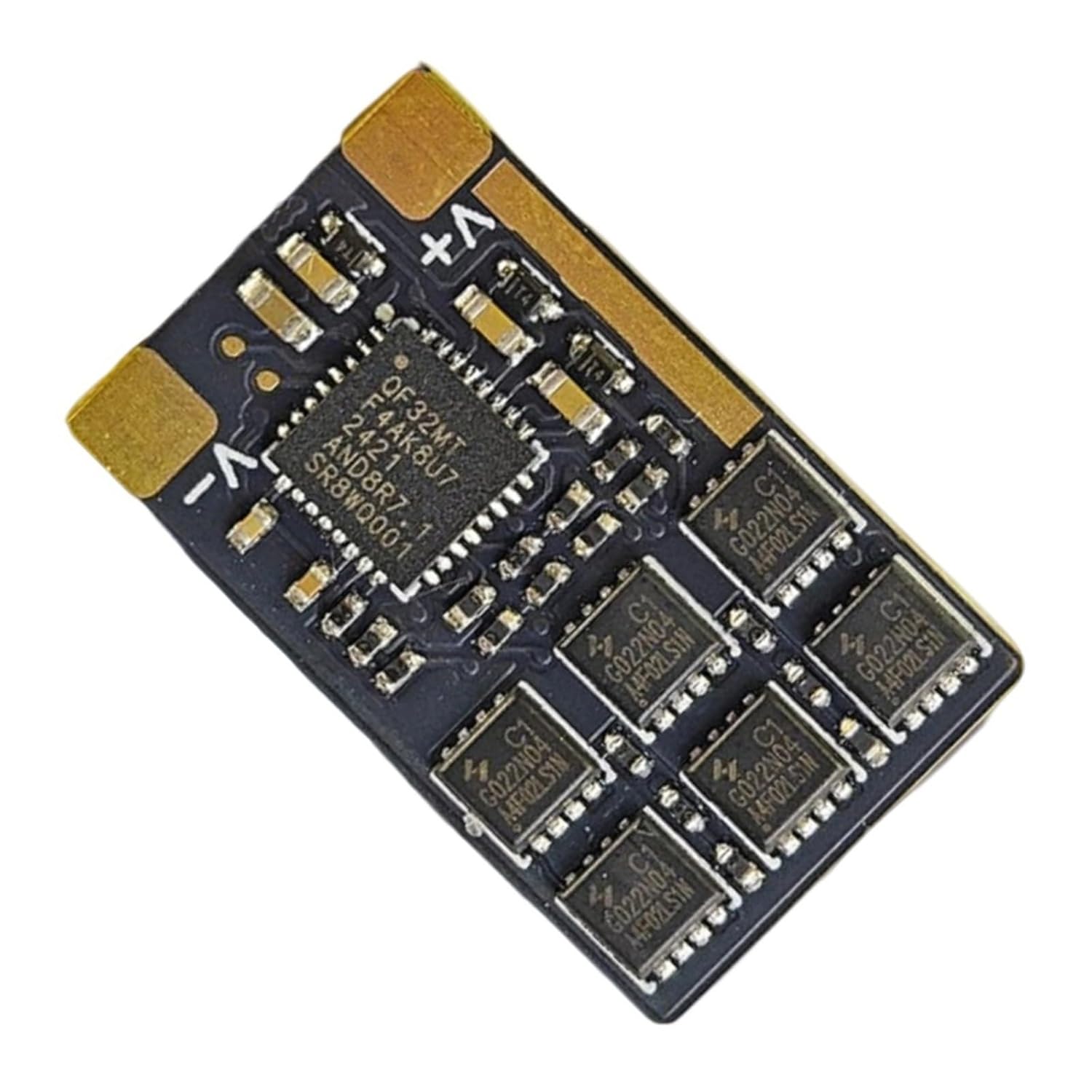 Controllo principale ESC: controllo+chip integrato drive, QF32F4A = AT32F421 + ID6288 per modello, modello di auto. Controllo principale a 32 bit, avvio SineWaves, firmware AM32 lampeggiato in fabbrica, velivoli ad ala fissa e corsa possono essere utilizzati direttamente. ESC può anche lampeggiare BL32 firmware o HF32 (Si prega di noi se avete bisogno MOSs transistor modello: HYG022N04LS1C1, On-resistenza di 2.0mΩ (rispetto ad altri prodotti simili che utilizzano la resistenza interna MOSs di circa 3mΩ), resiste alle tensioni di 40V, 6S Lipoes operazioni stabili Onboards 12pcs 0805 condensatori, ciascuno con capacità di 2.2uF, per un totale di 26.4uF, superando di gran lunga altri prodotti simili, fornendo un filtraggio stabile di potenza Non a bordo BECs, può essere utilizzato per zanzare auto, modelli di auto richiedono BECs esterni per l'uso