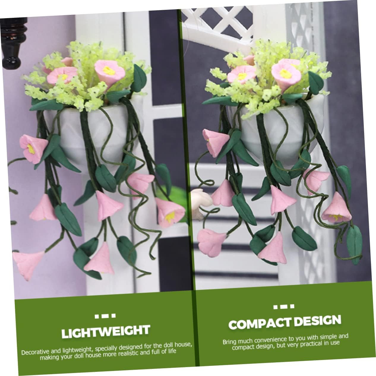 Miniature di case delle bambole: adatte per mettere su scrivanie, davanzali, librerie, armadietti come decorazioni per interni, forniture in miniatura Accessori in miniatura: la decorazione multifunzionale può essere utilizzata per mini case delle bambole fai da te e oggetti di scena fotografici, mini piante da giardino Pianta artificiale in miniatura: questa pianta sospesa può rimanere e anno dopo anno, senza bisogno di mantenerla o prendersene cura, mobili in miniatura Mini pianta: l'aspetto chic, realistico e compatto lo rende attraente per le persone, adatto come mini piante adorabili e calde Accessori per la casa delle bambole: decorativi e leggeri, appositamente progettati per la casa delle bambole, rendendo la tua casa delle bambole più realistica e piante in vaso