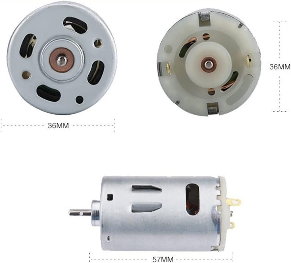 Voltage: 12V-24V, current: 0.14A-0.15A, speed: 5370RPM-10900RPM Motor size: 50MM*35.5mm exquisite workmanship: Exquisite workmanship, smooth metal surface without obvious scratches. Weight: 156G Miniature DC motor is small in size and light in weight.