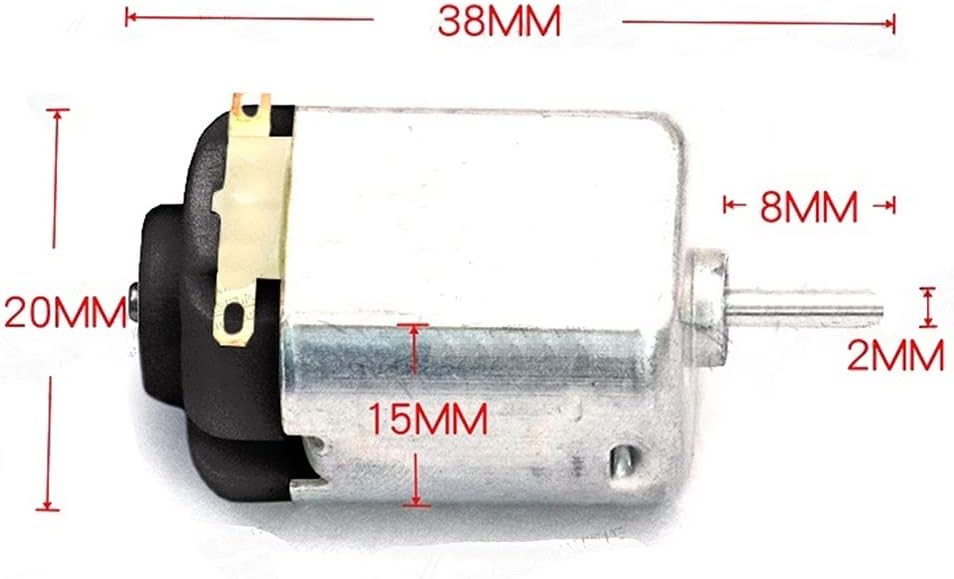 Rated Voltage:DC 1V-6V Size: Motor Diameter: 20mm Motor Height: 25mm. Shaft diameter: 2mm, shaft length: 8mm This is a DC Small Motor 3v speed: 17000-18000r/min ±5% Miniature DC motor is small in size and light in weight.